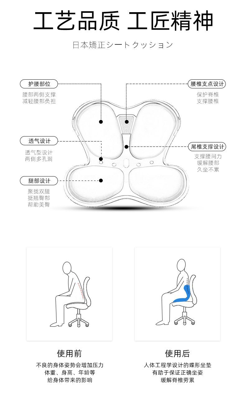 蝶の形のクッション、お尻クッション、仕事用椅子、花びらシートクッション、座りがちなオフィス、座り姿勢の矯正、美尻、腰クッション
