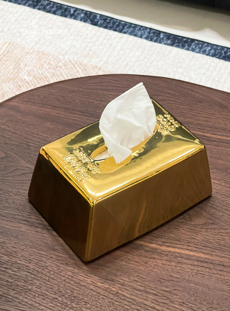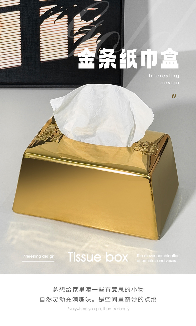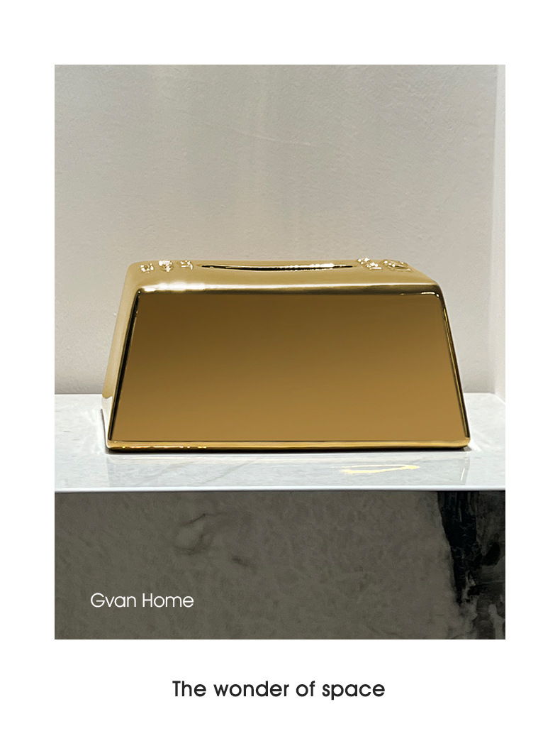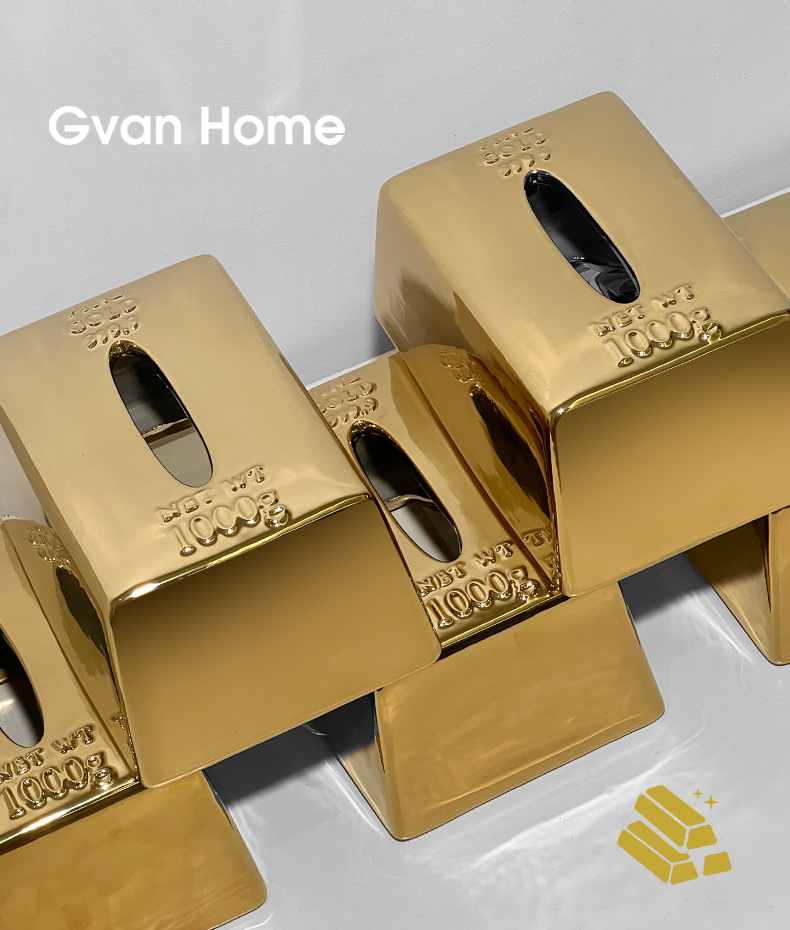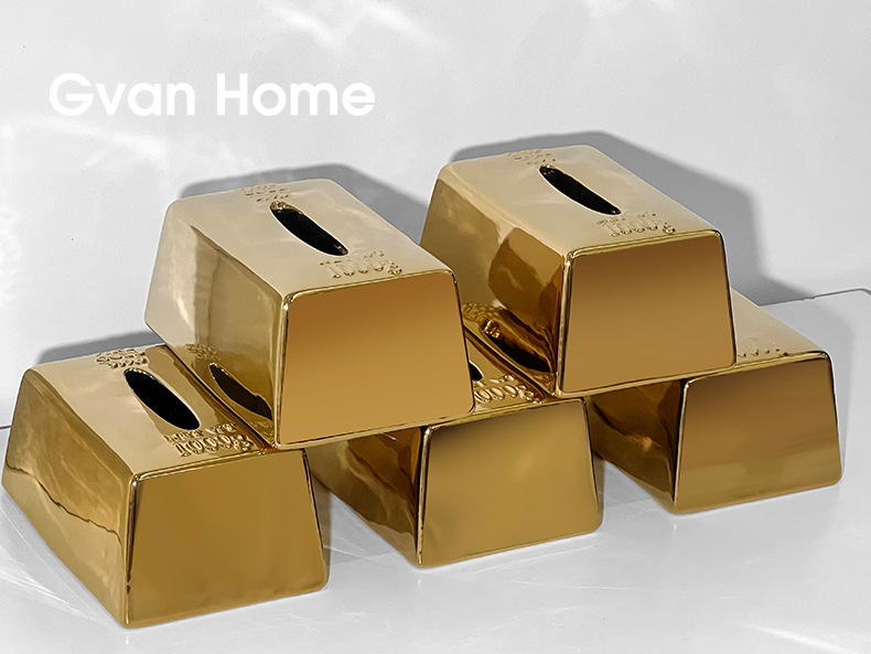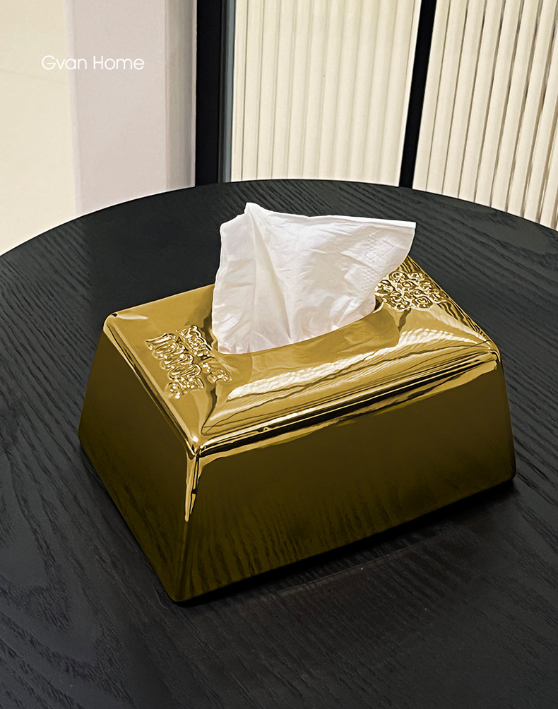 クリエイティブシミュレーションゴールドバーゴールドバーティッシュボックスセラミックティッシュボックスホームライト高級レストランテーブルティッシュボックス装飾
