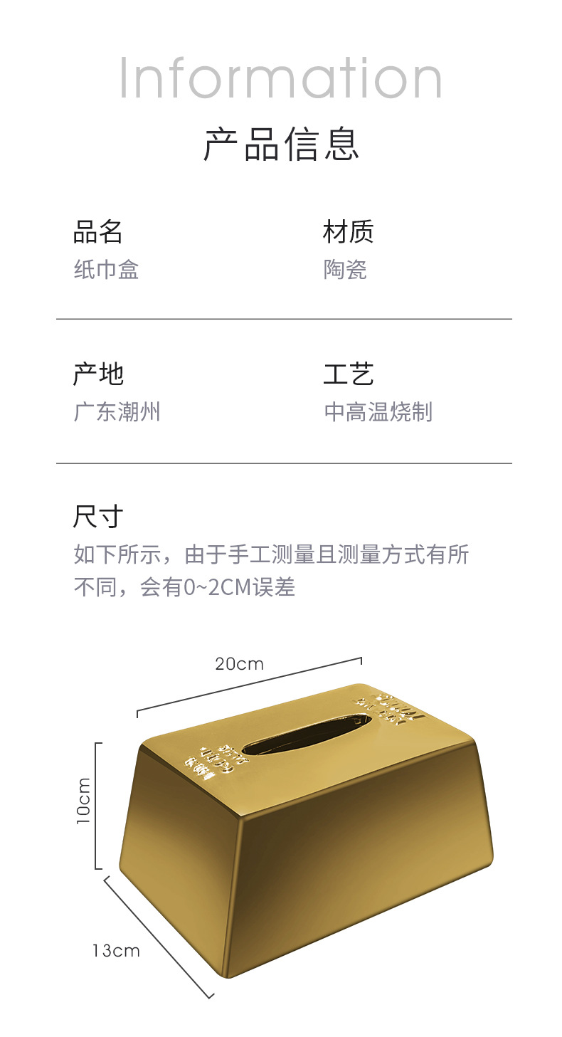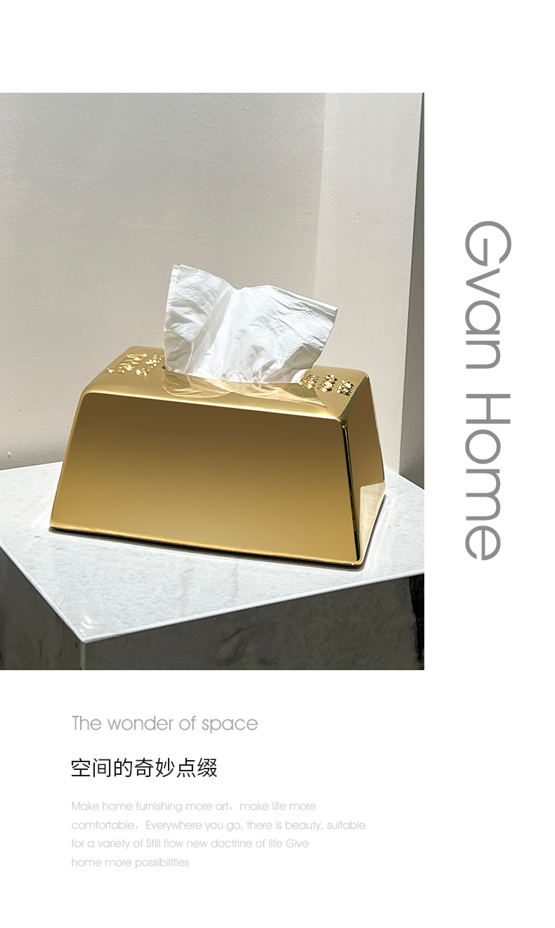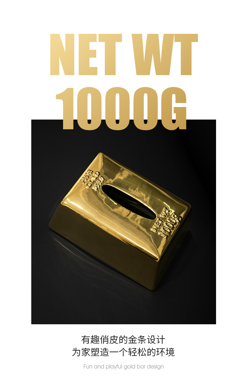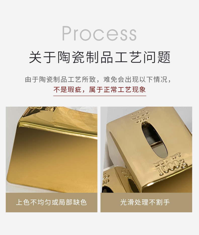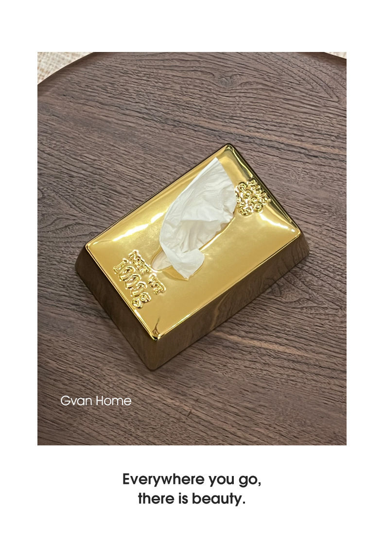 クリエイティブシミュレーションゴールドバーゴールドバーティッシュボックスセラミックティッシュボックスホームライト高級レストランテーブルティッシュボックス装飾