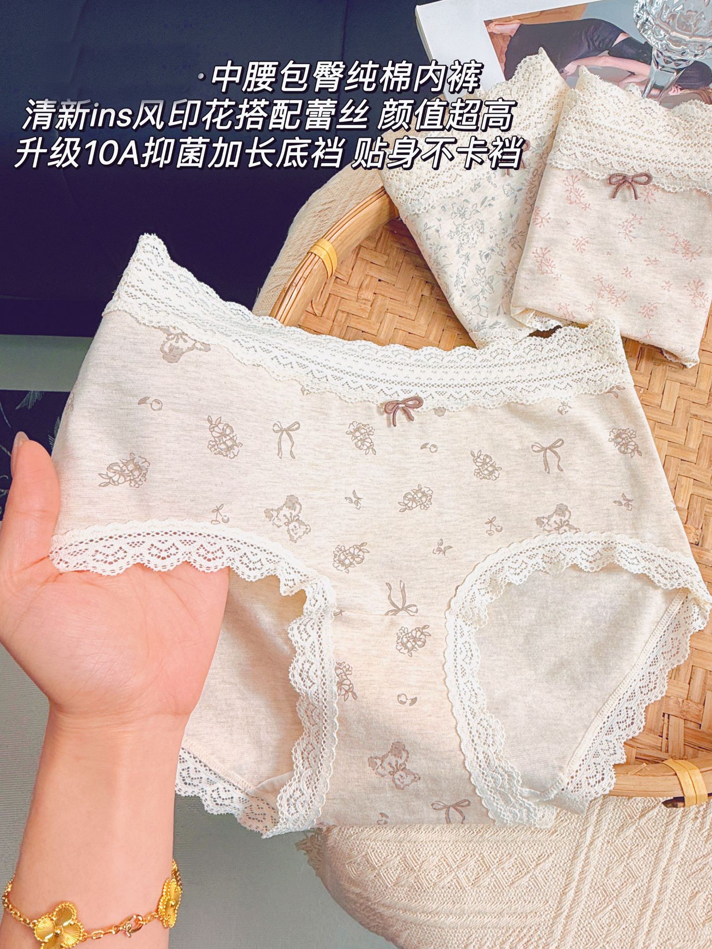 清新な田園ins風A類綿下着女性の柔らかいモチとした快適なレースの縁に痕跡がない10A抗菌延長綿股