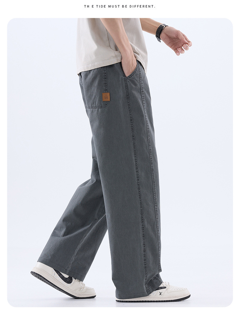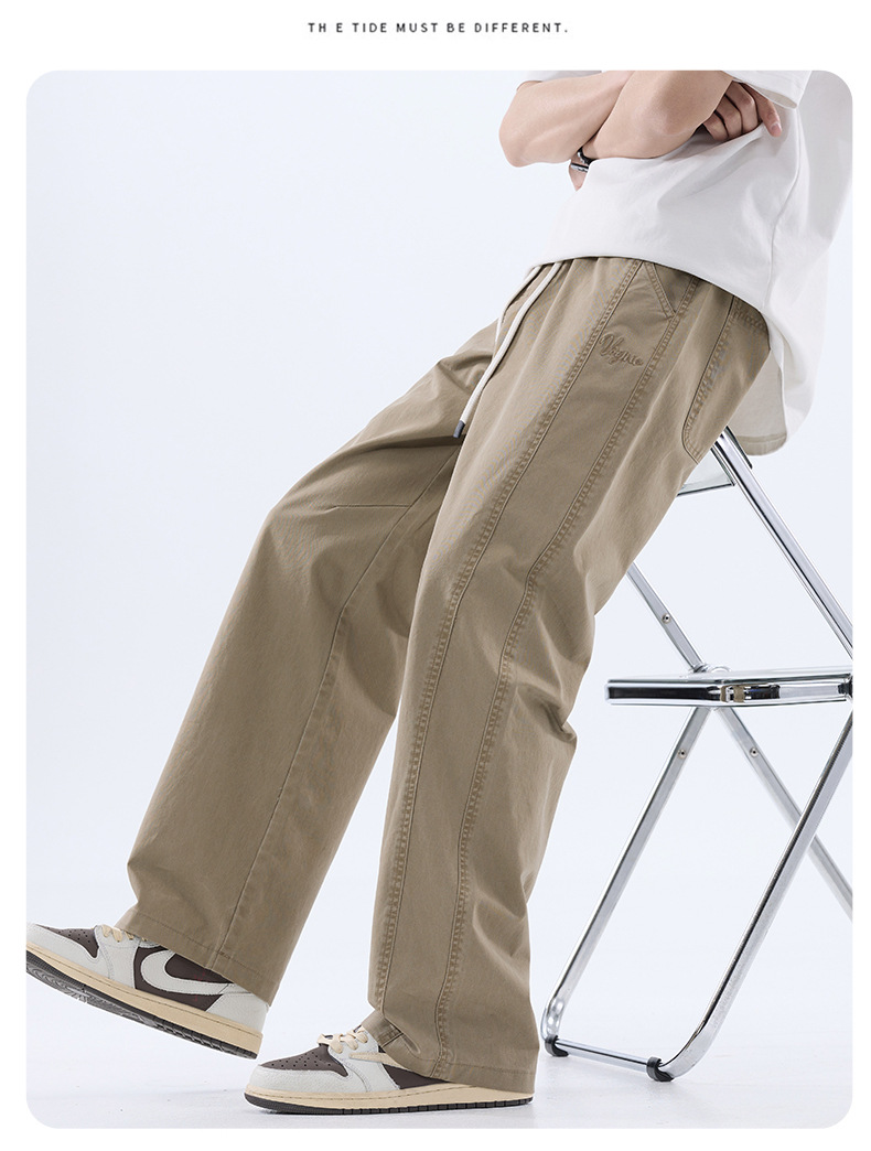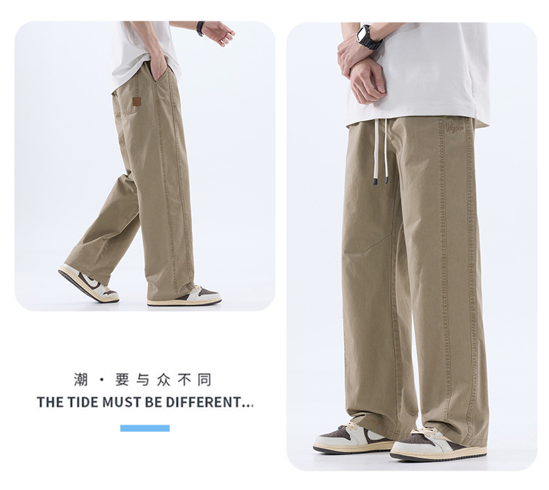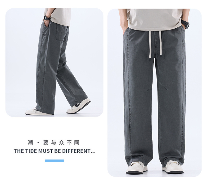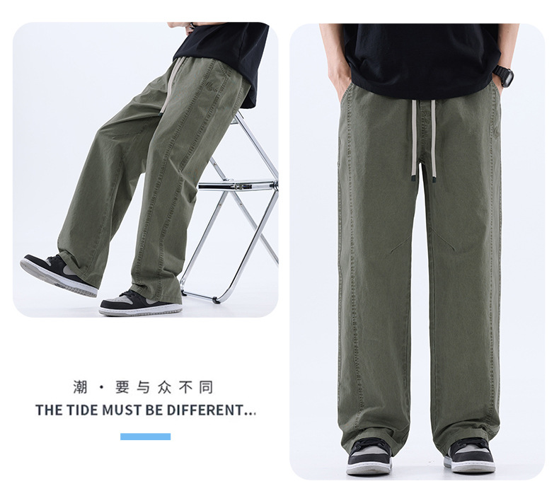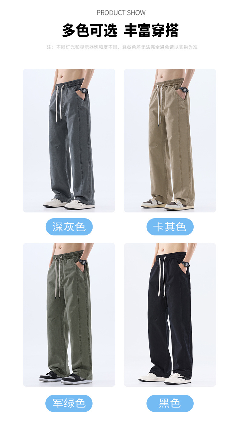 綿のカジュアルなズボンの男性のストレートのゆったりしているズボン2025夏の薄いタイプのファッションの防風傘兵の広い足のズボンの男性