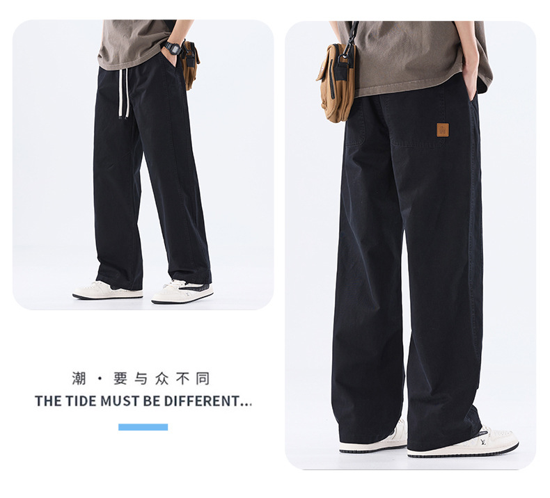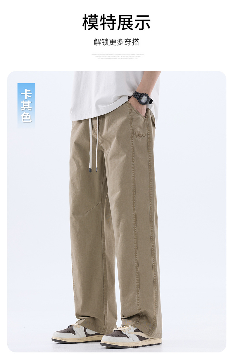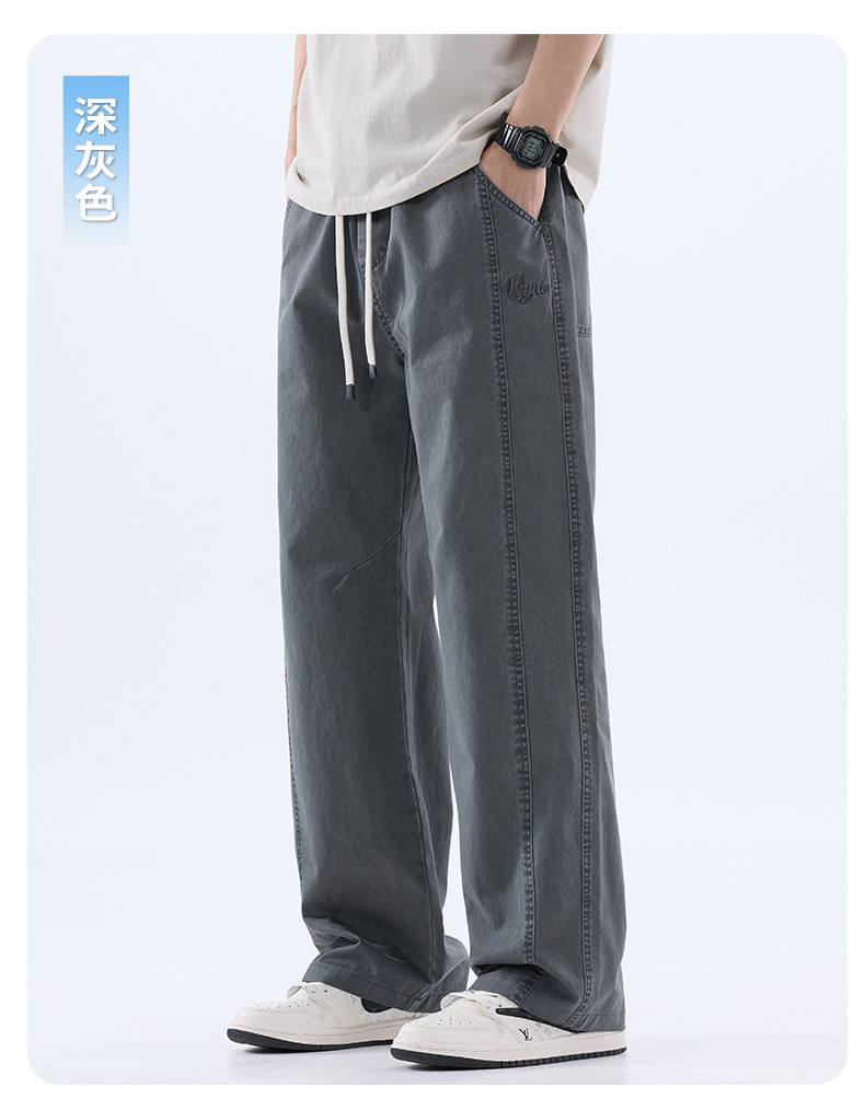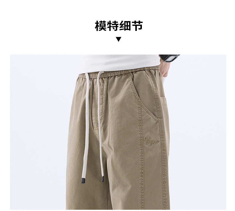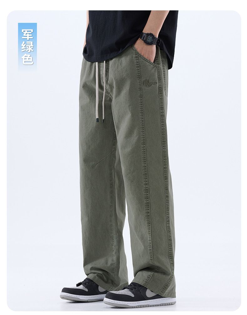 綿のカジュアルなズボンの男性のストレートのゆったりしているズボン2025夏の薄いタイプのファッションの防風傘兵の広い足のズボンの男性