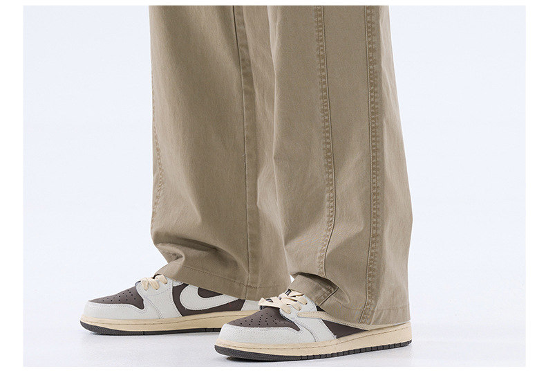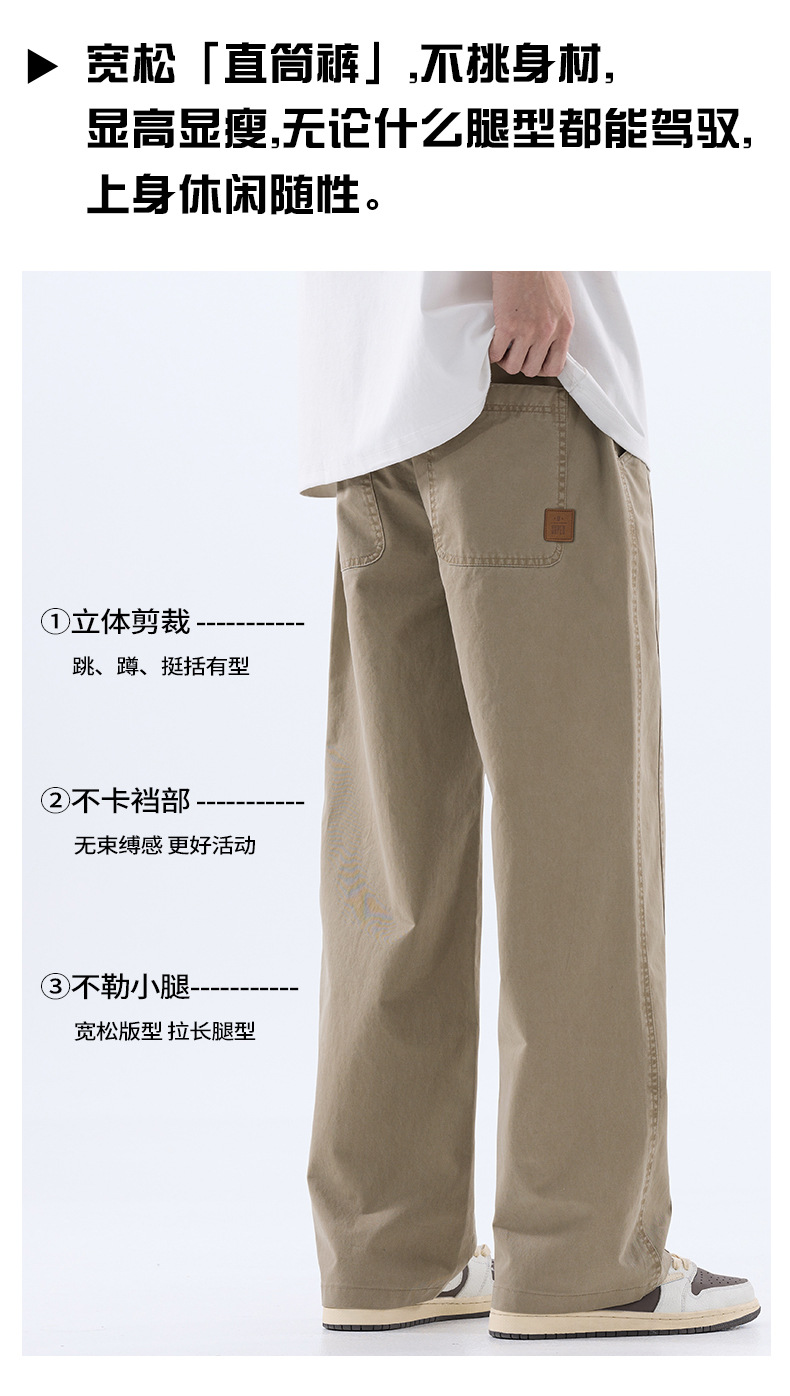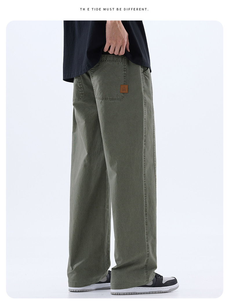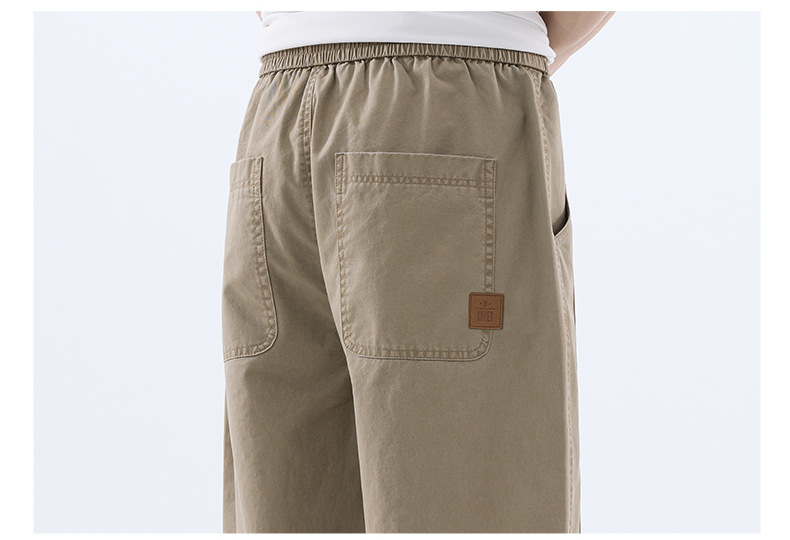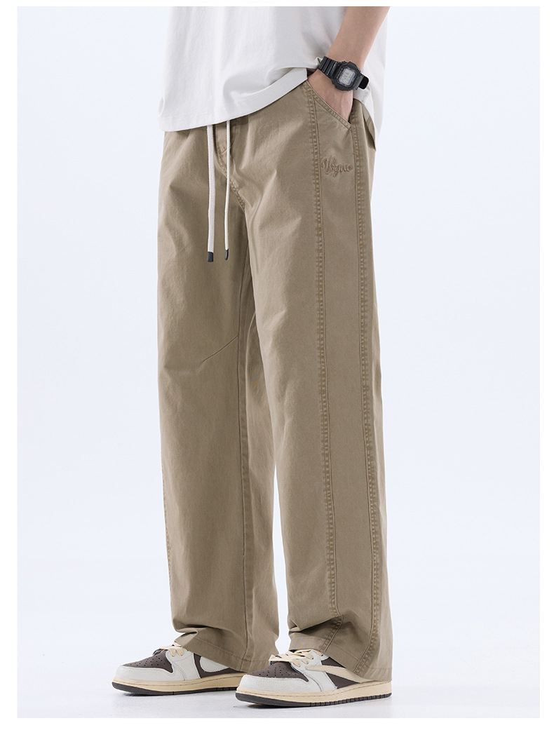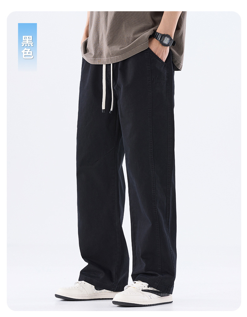 綿のカジュアルなズボンの男性のストレートのゆったりしているズボン2025夏の薄いタイプのファッションの防風傘兵の広い足のズボンの男性