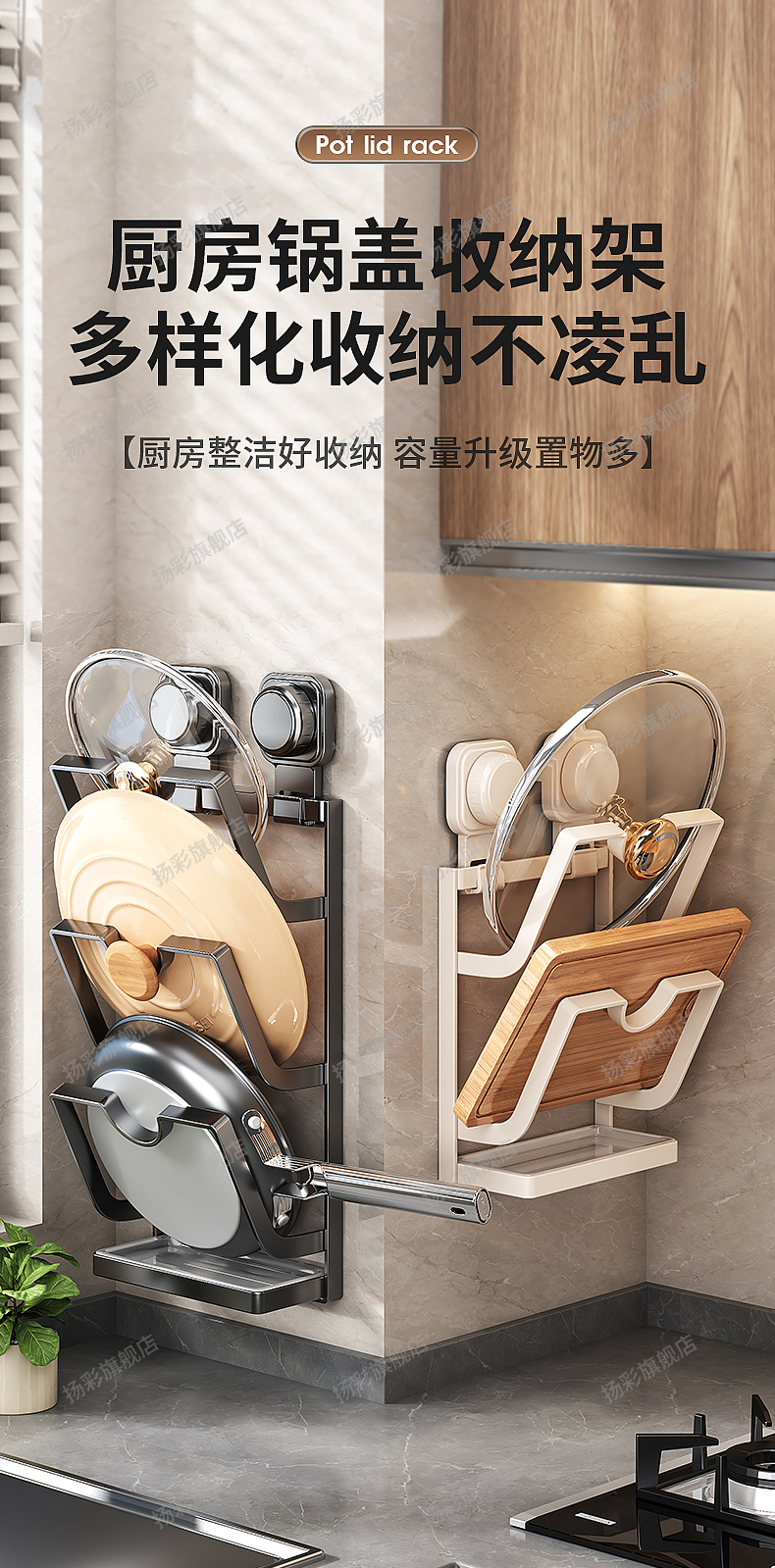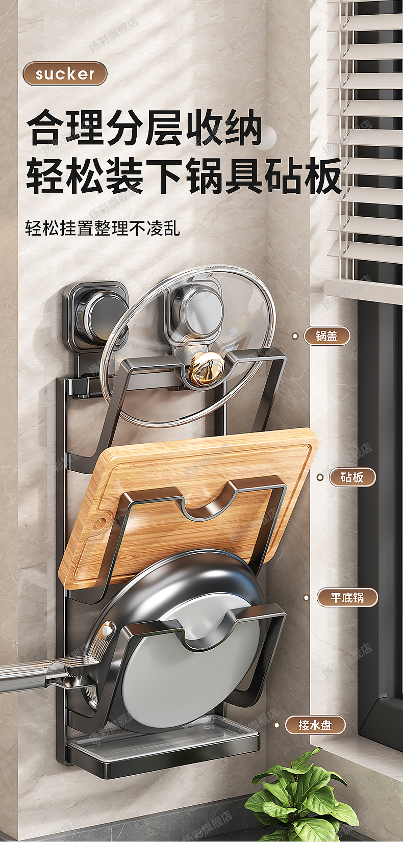 工場直販パンチフリー壁掛けキッチン収納ラック多機能まな板多層収納ラック吸盤鍋蓋