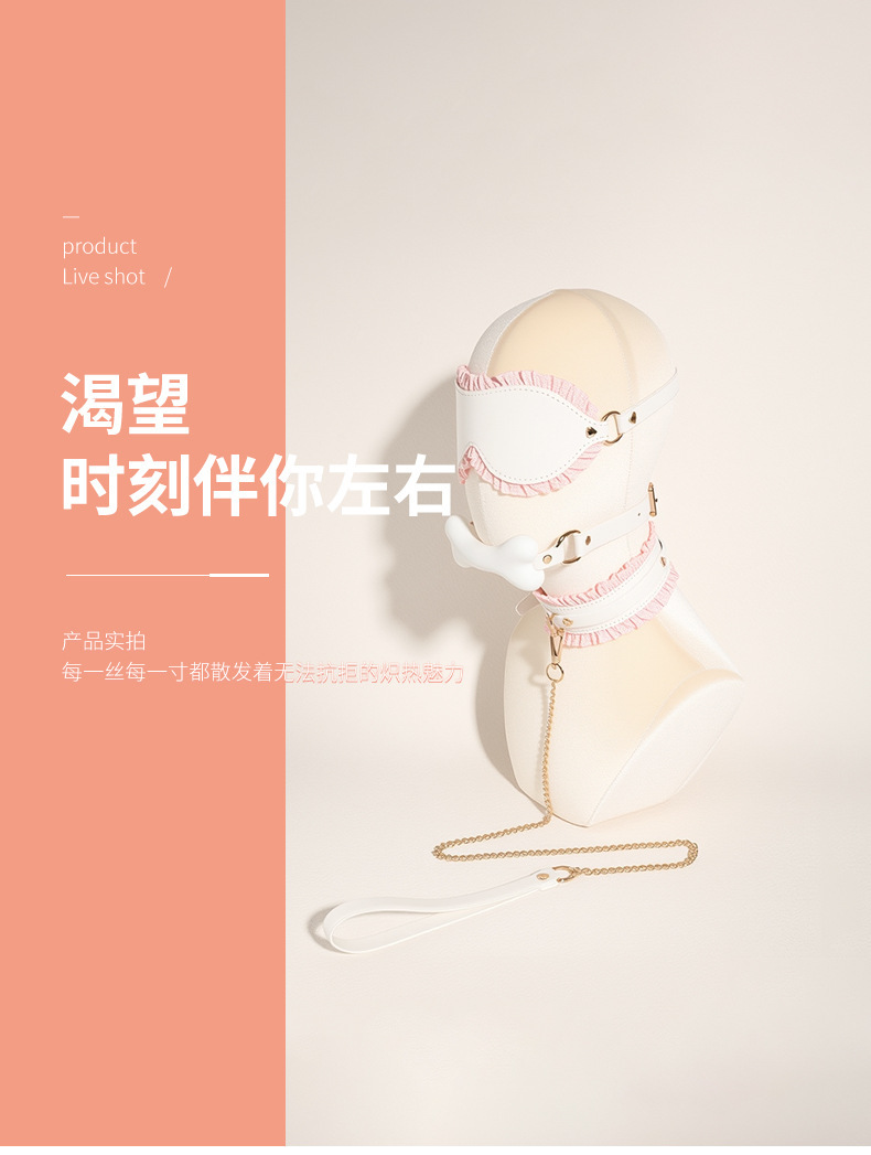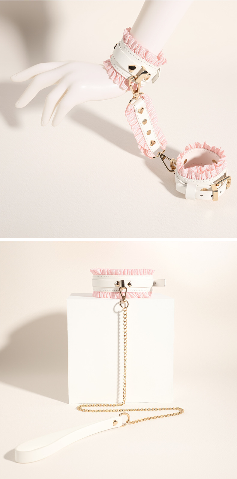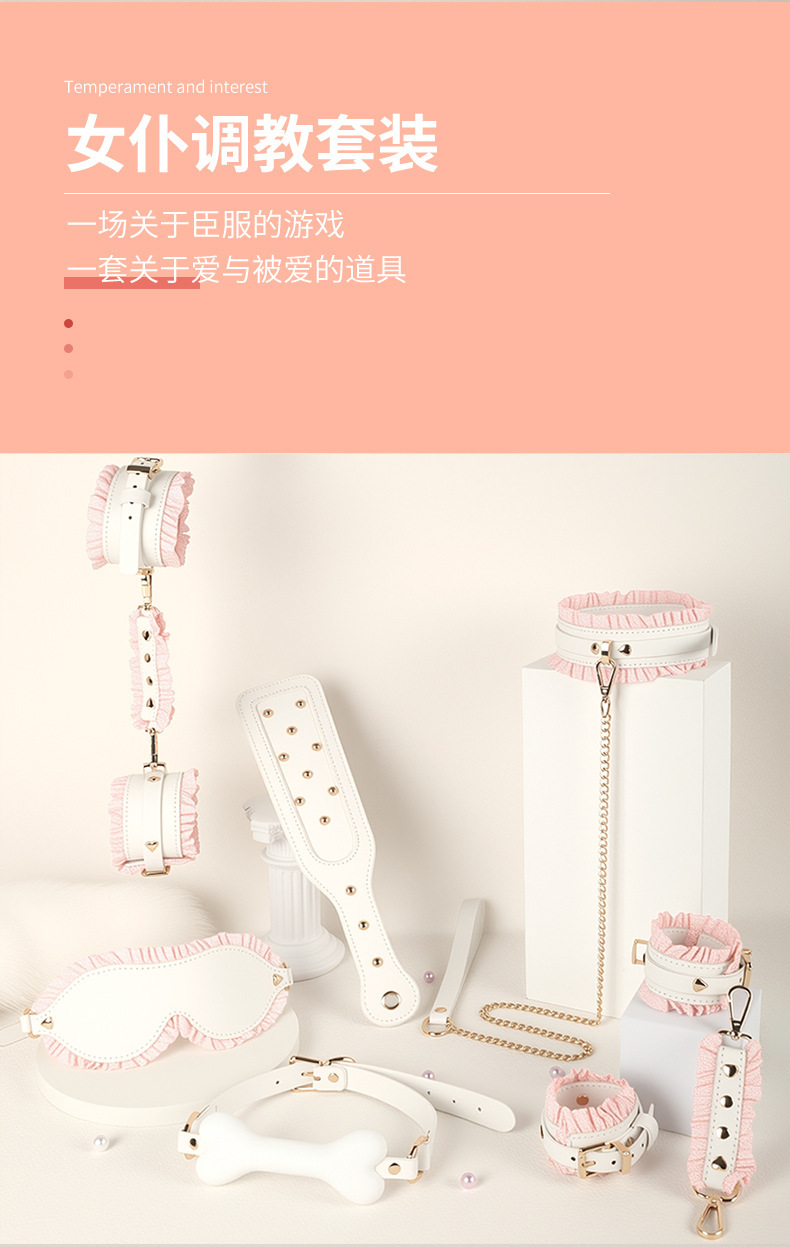 メイドギャグ,メイド手錠,メイドの足かせ,メイド首輪+リード,メイドアイマスク,メイドハンドショット,メイド6点セット,収納バッグ6点セット,黒とピンクのメイド6点セット