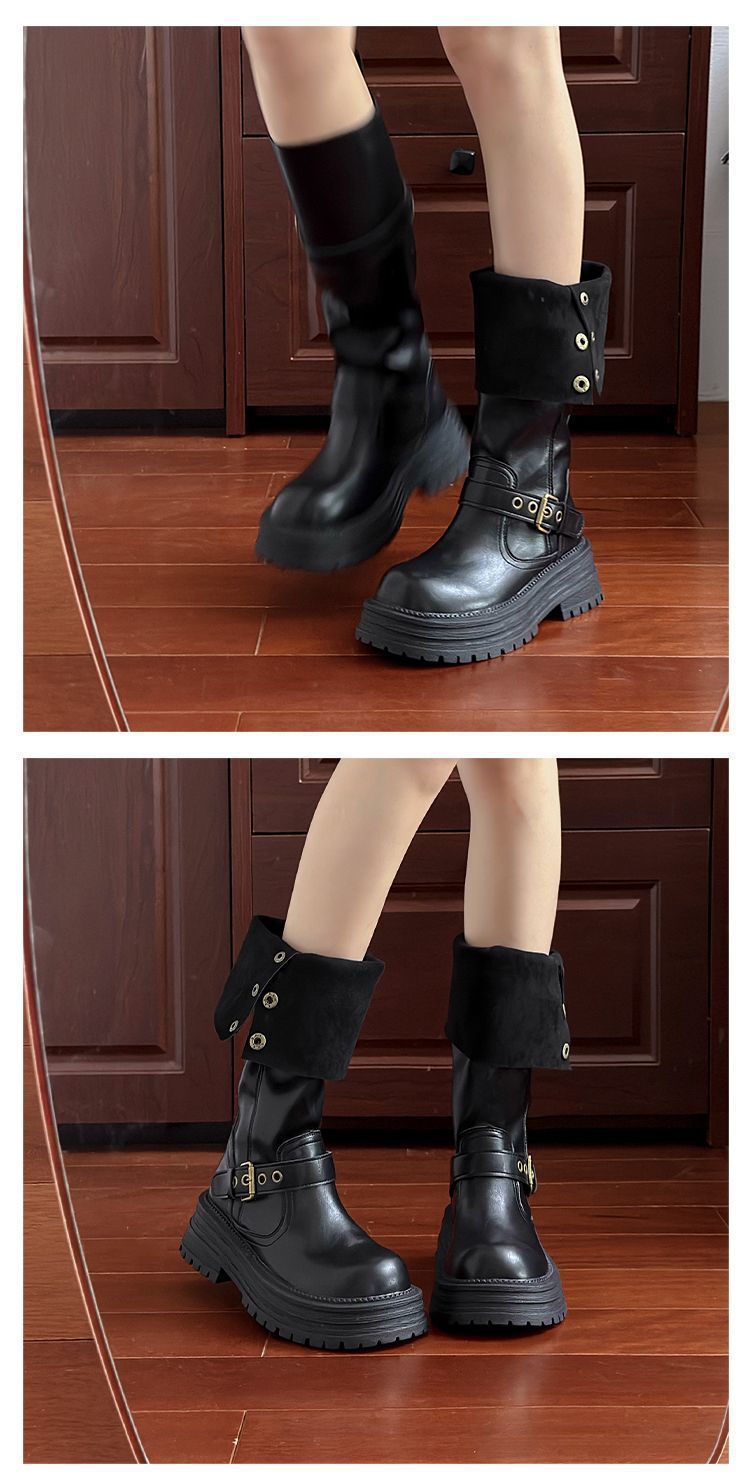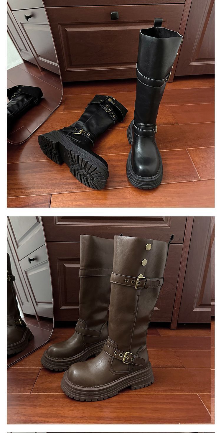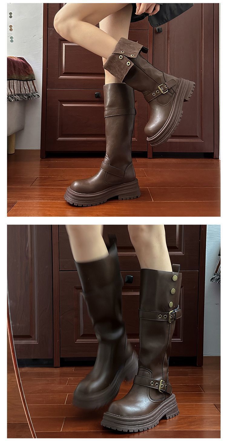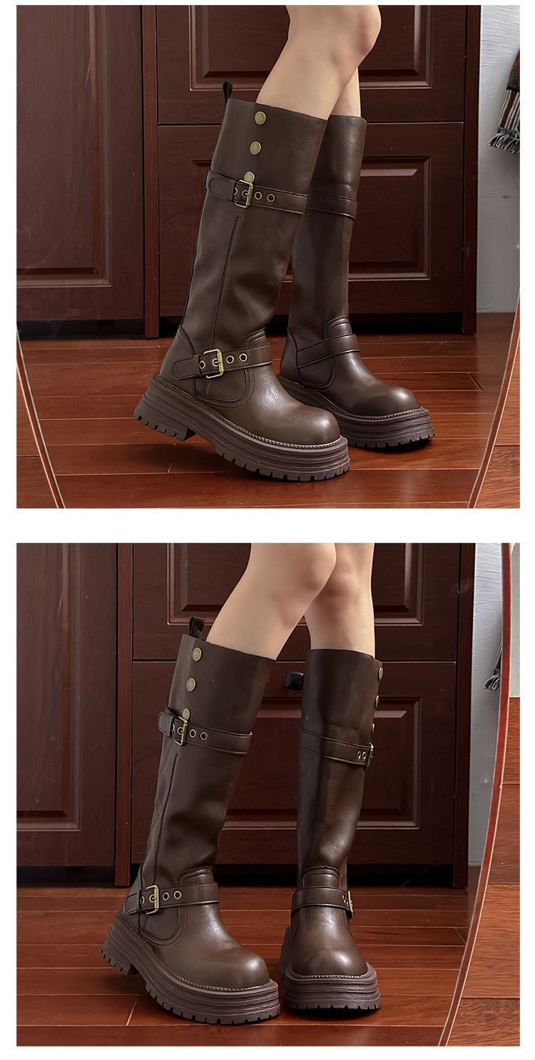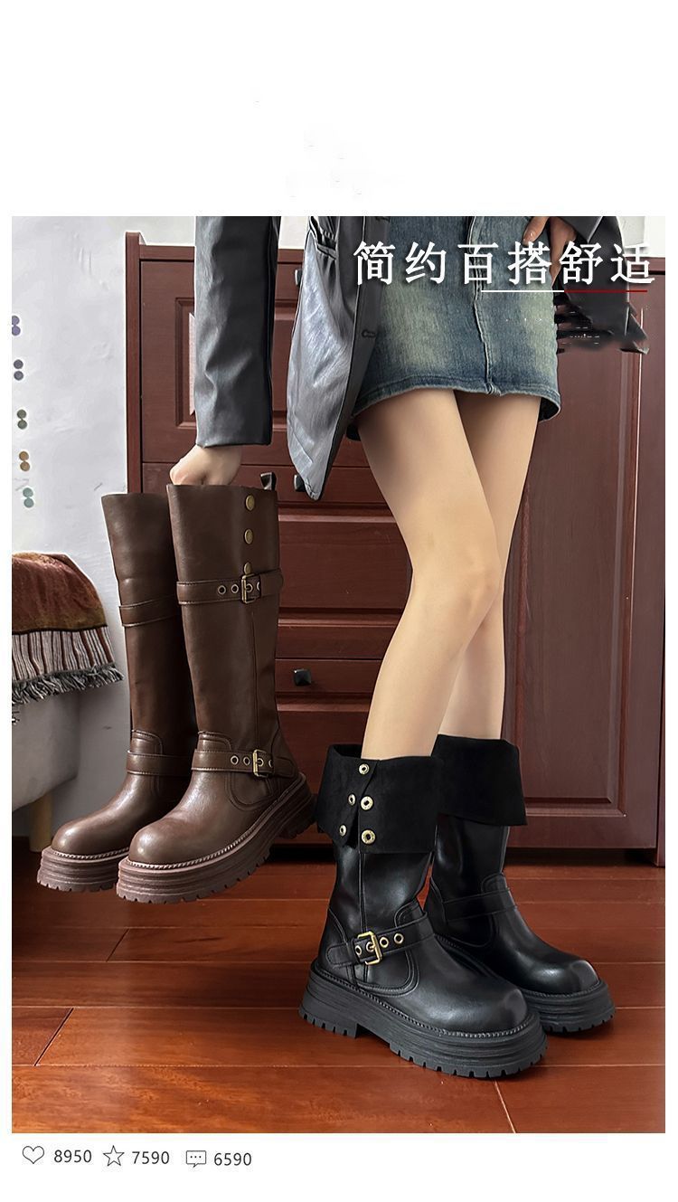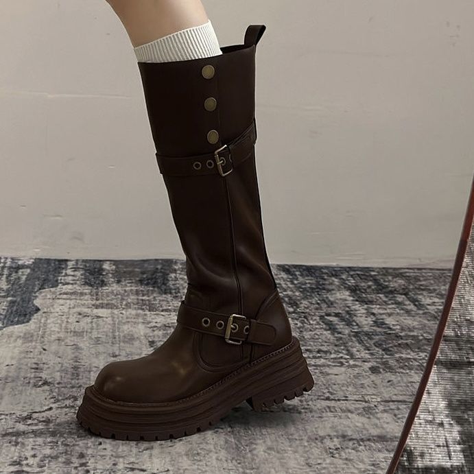 レトロブラウン英国厚底ブーツマーティンレディース2025秋冬新作ウエスタンデニム高さ増加ナイトブーツ