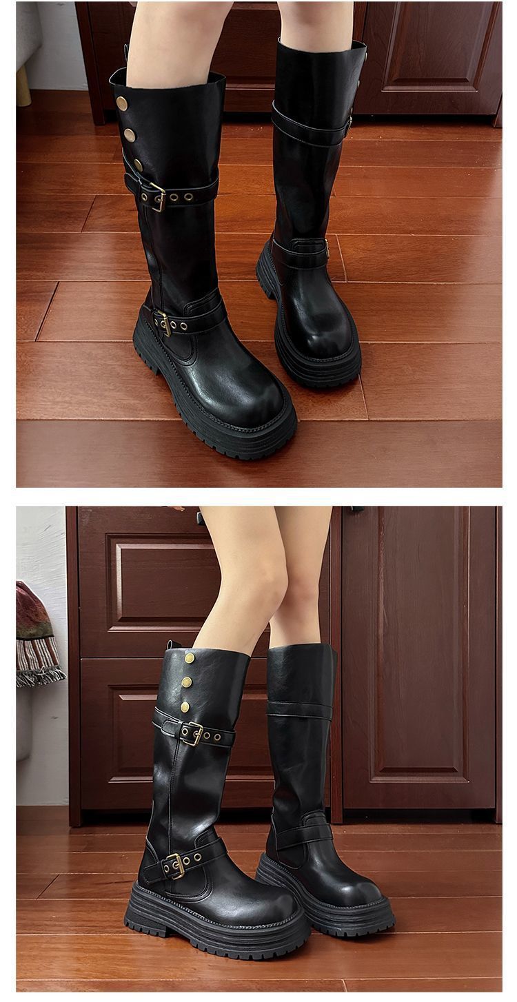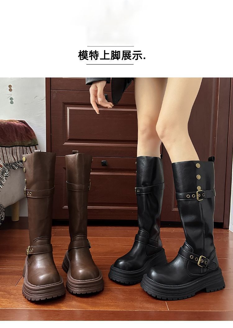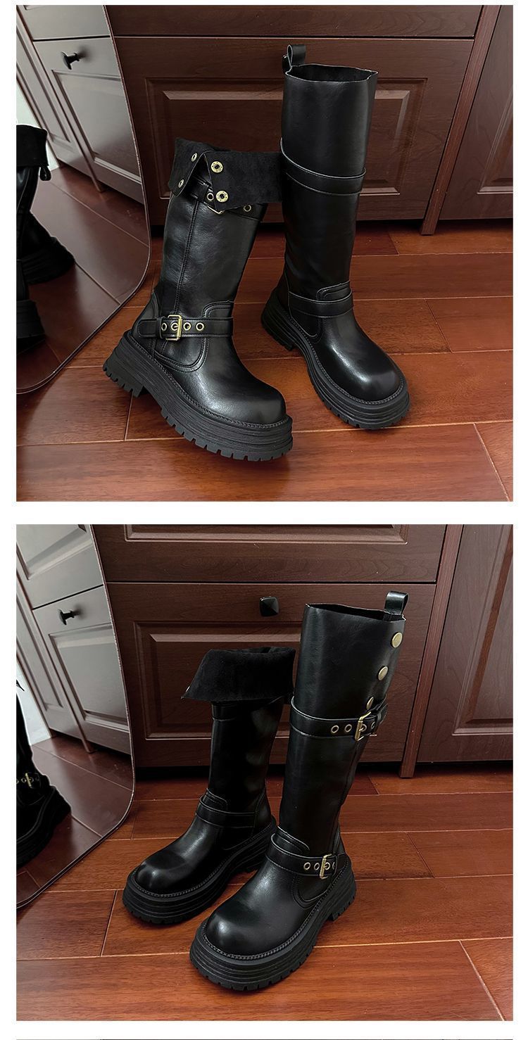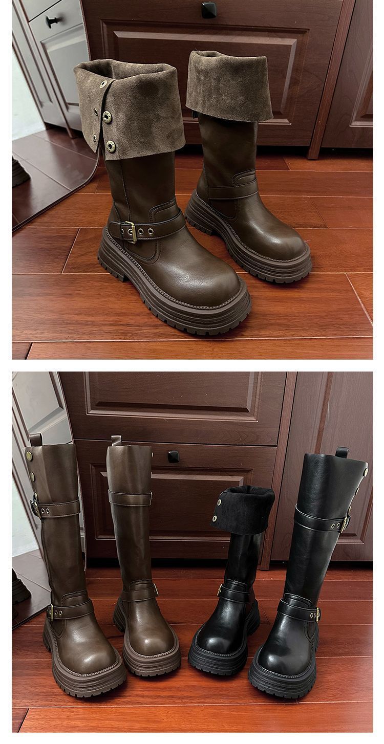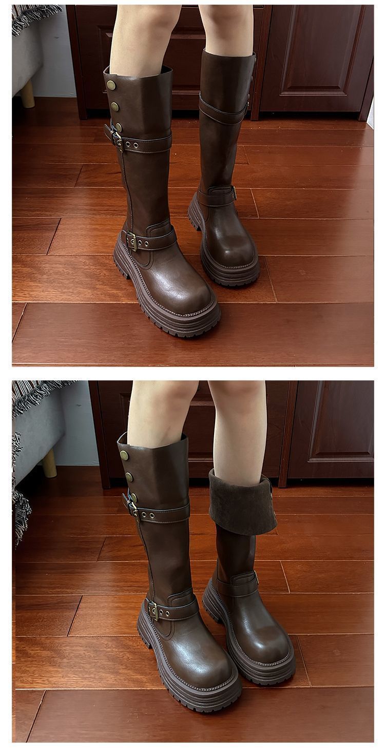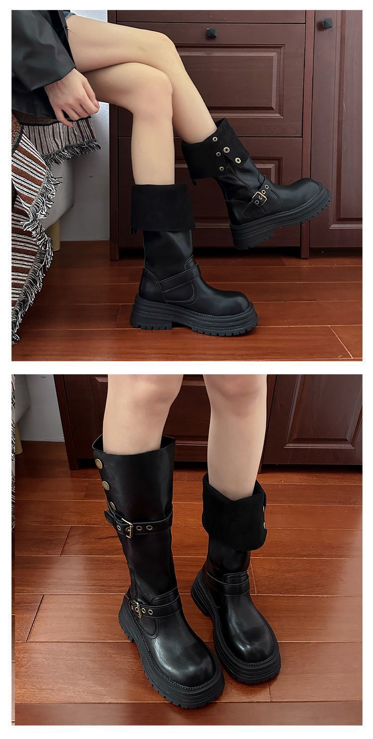 レトロブラウン英国厚底ブーツマーティンレディース2025秋冬新作ウエスタンデニム高さ増加ナイトブーツ