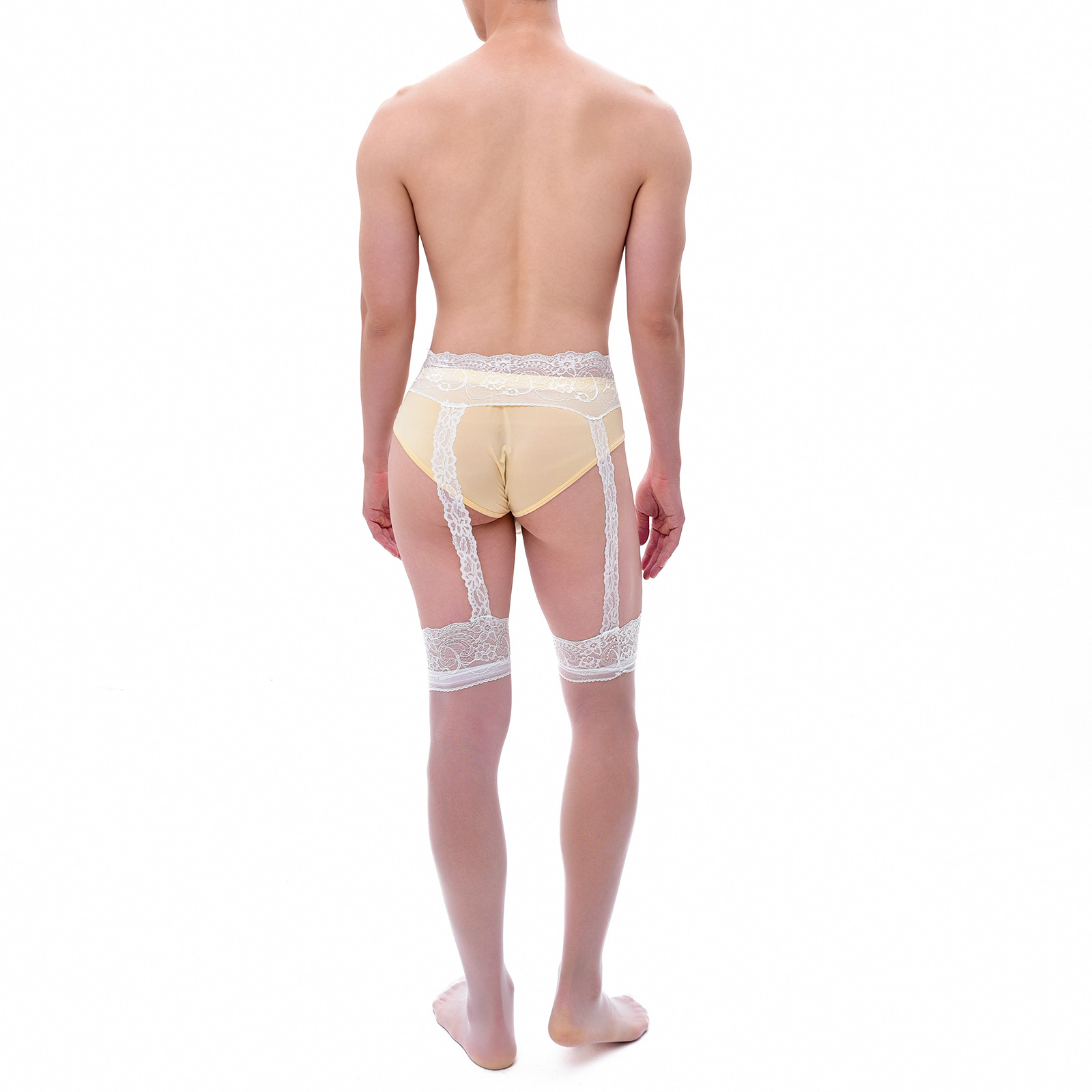 CLEVER-MENMODE メンズセクシーロングストッキングレースメッシュスプライシングストッキングフェイクガーターパンスト