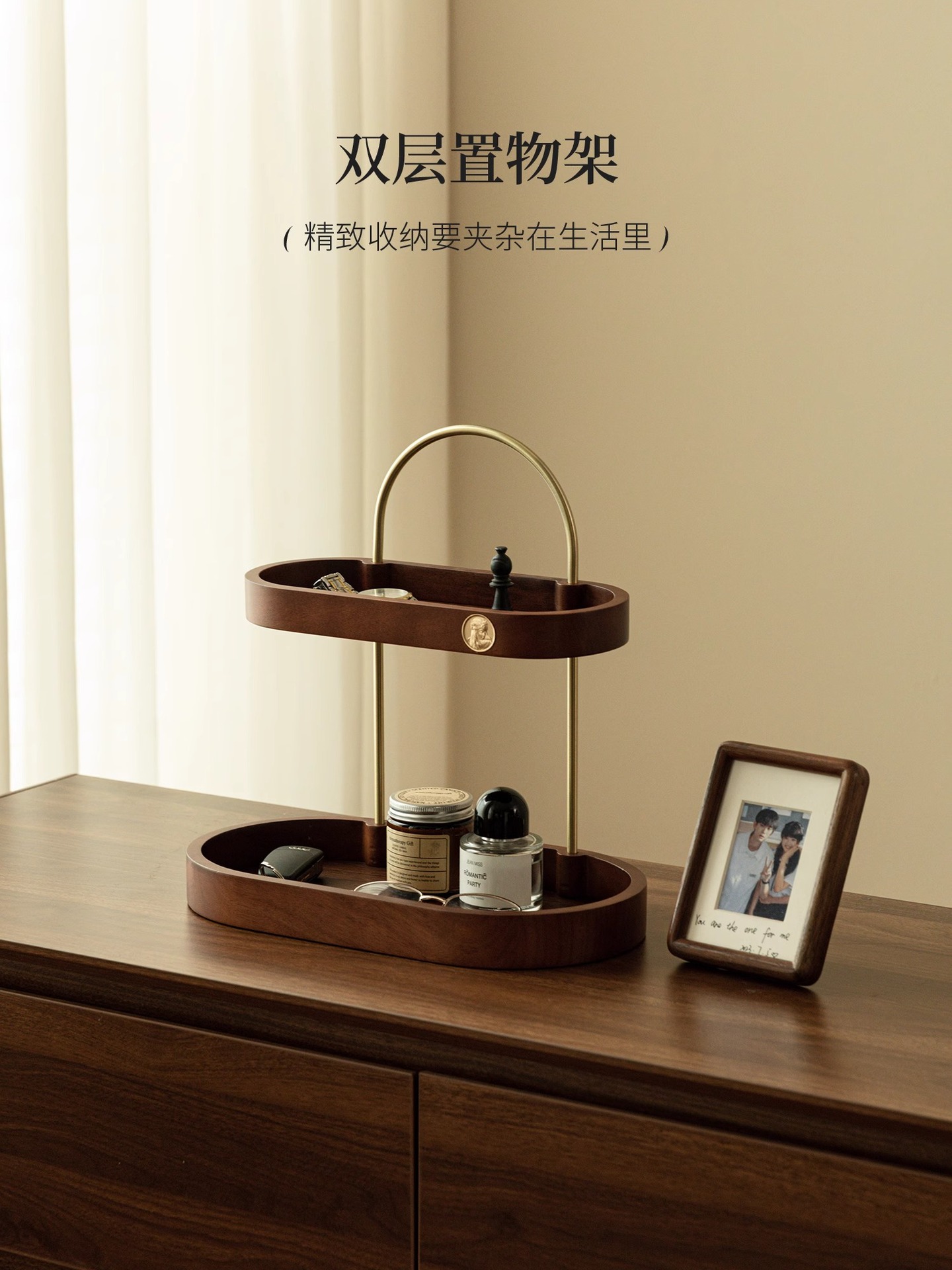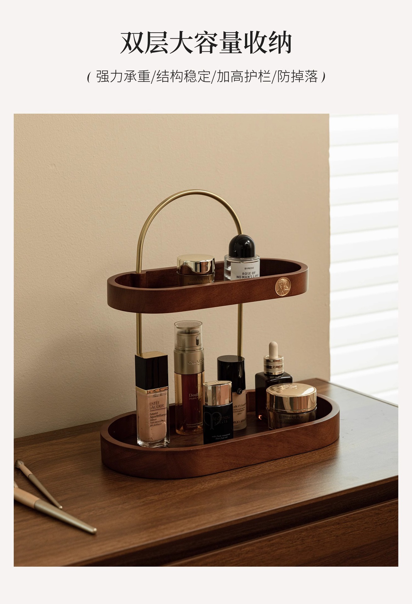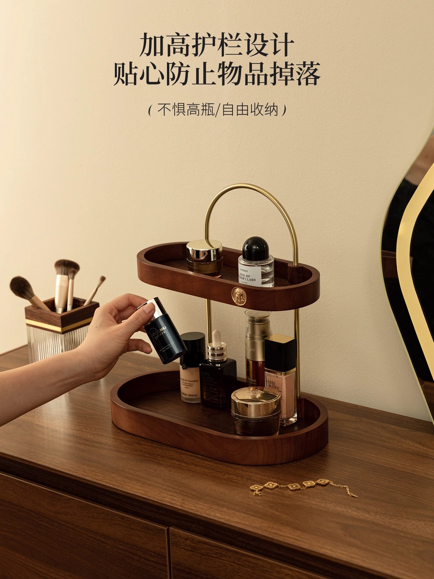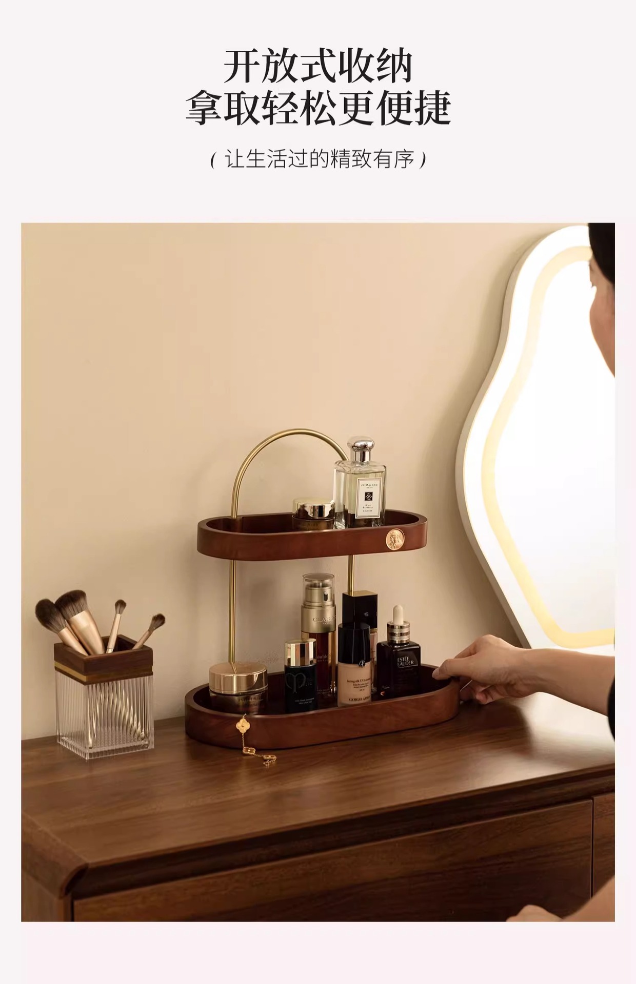 化粧品スキンケア収納香水棚二重黒胡桃木質実木高級感新中国式物置棚