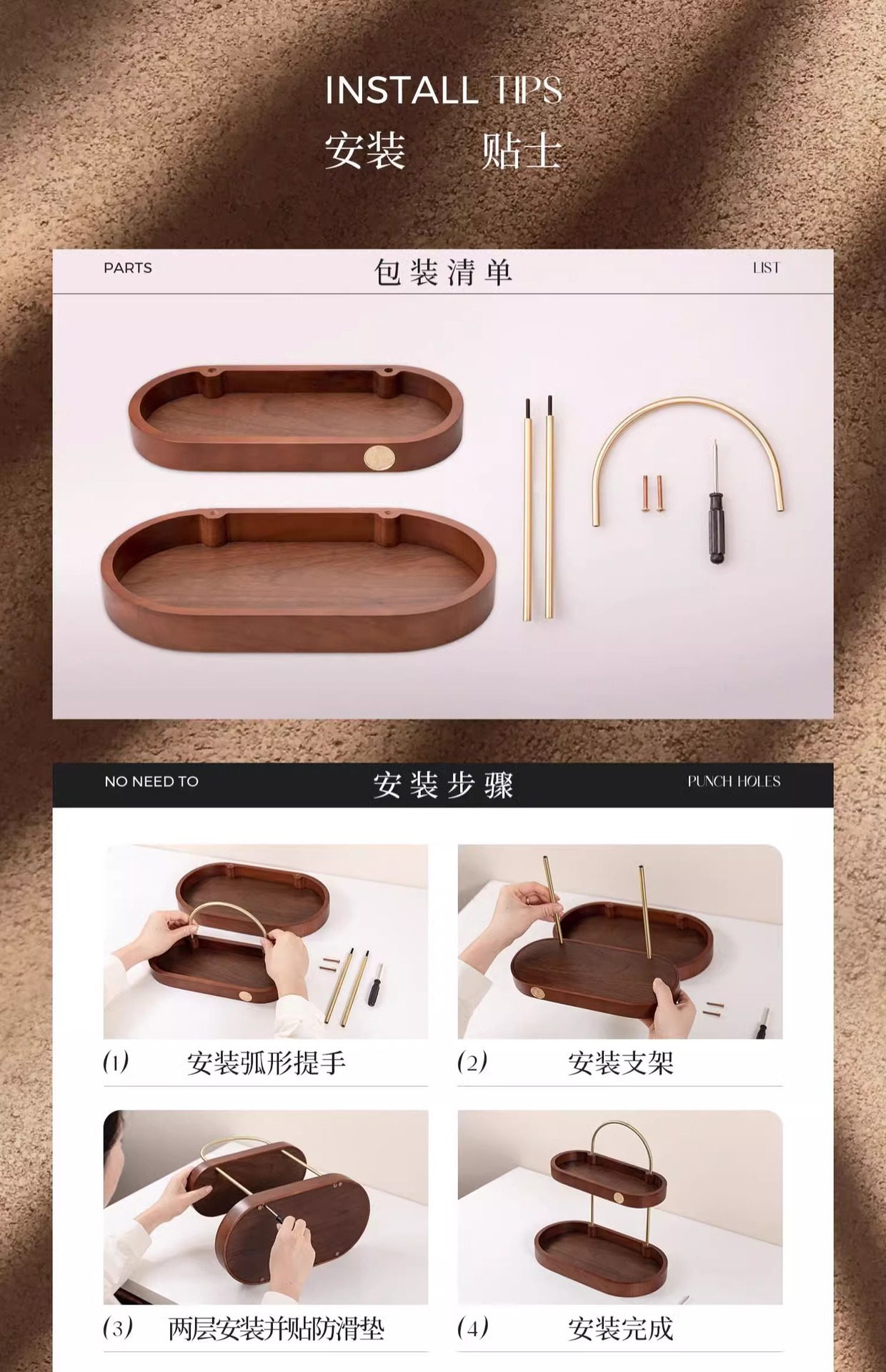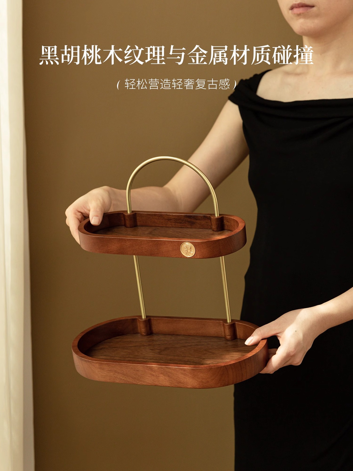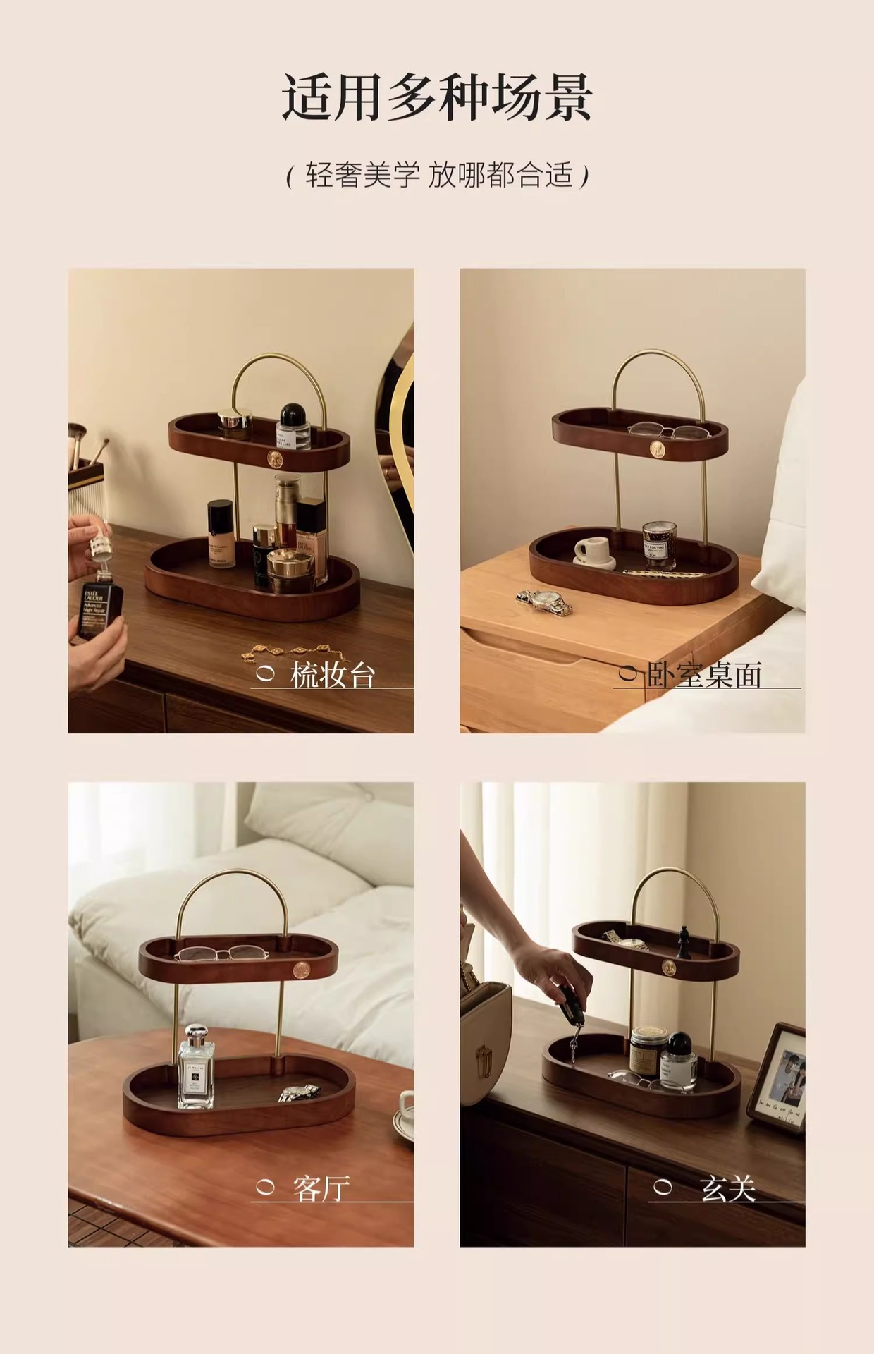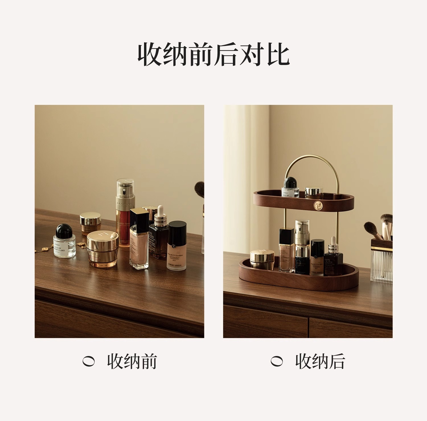 化粧品スキンケア収納香水棚二重黒胡桃木質実木高級感新中国式物置棚