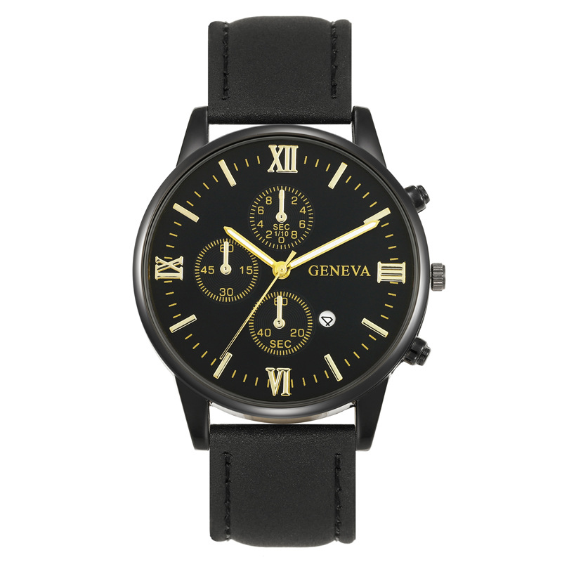 工厂现货男士手表商务简约时尚带日历石英表皮带手表男高级感批发