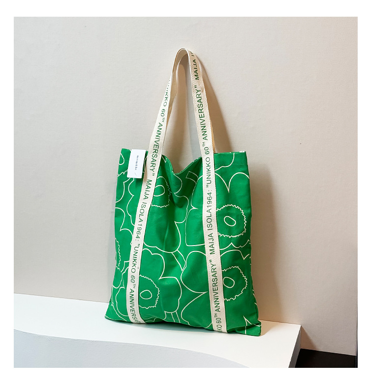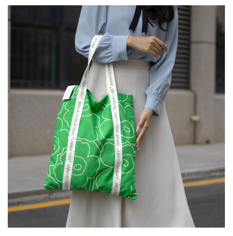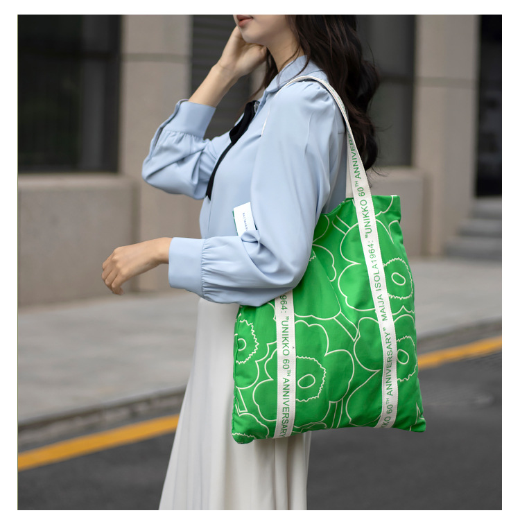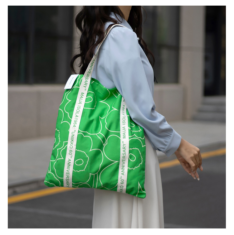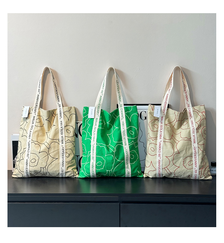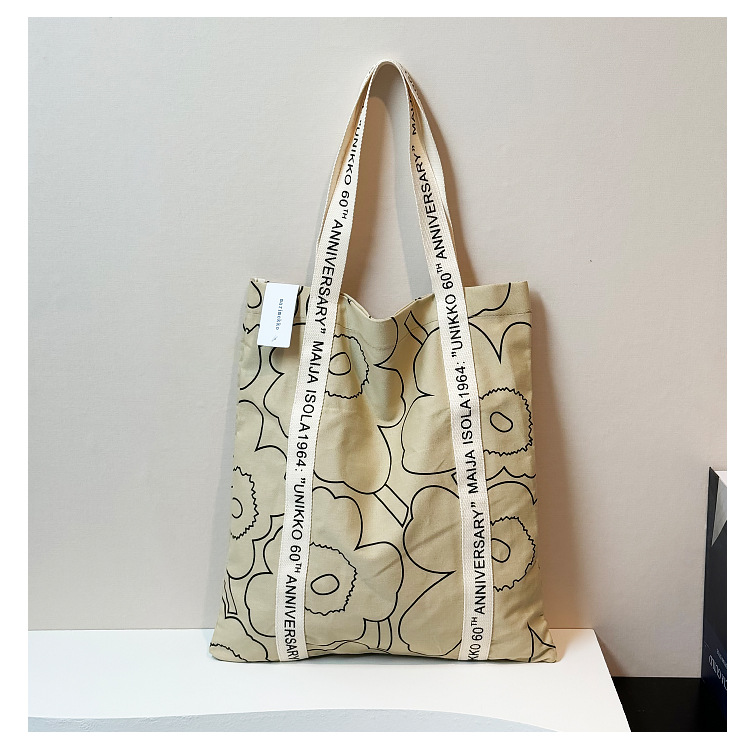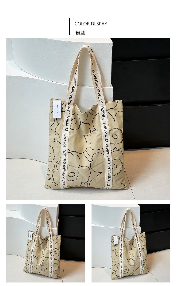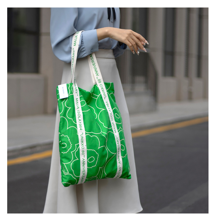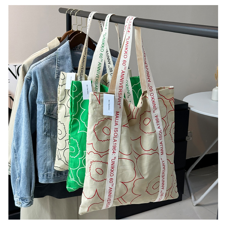 キャンバスバッグ北欧フィンランドフラワーレタープリントトートバッグファッションカジュアル大容量環境に優しいポータブルショッピングバッグ