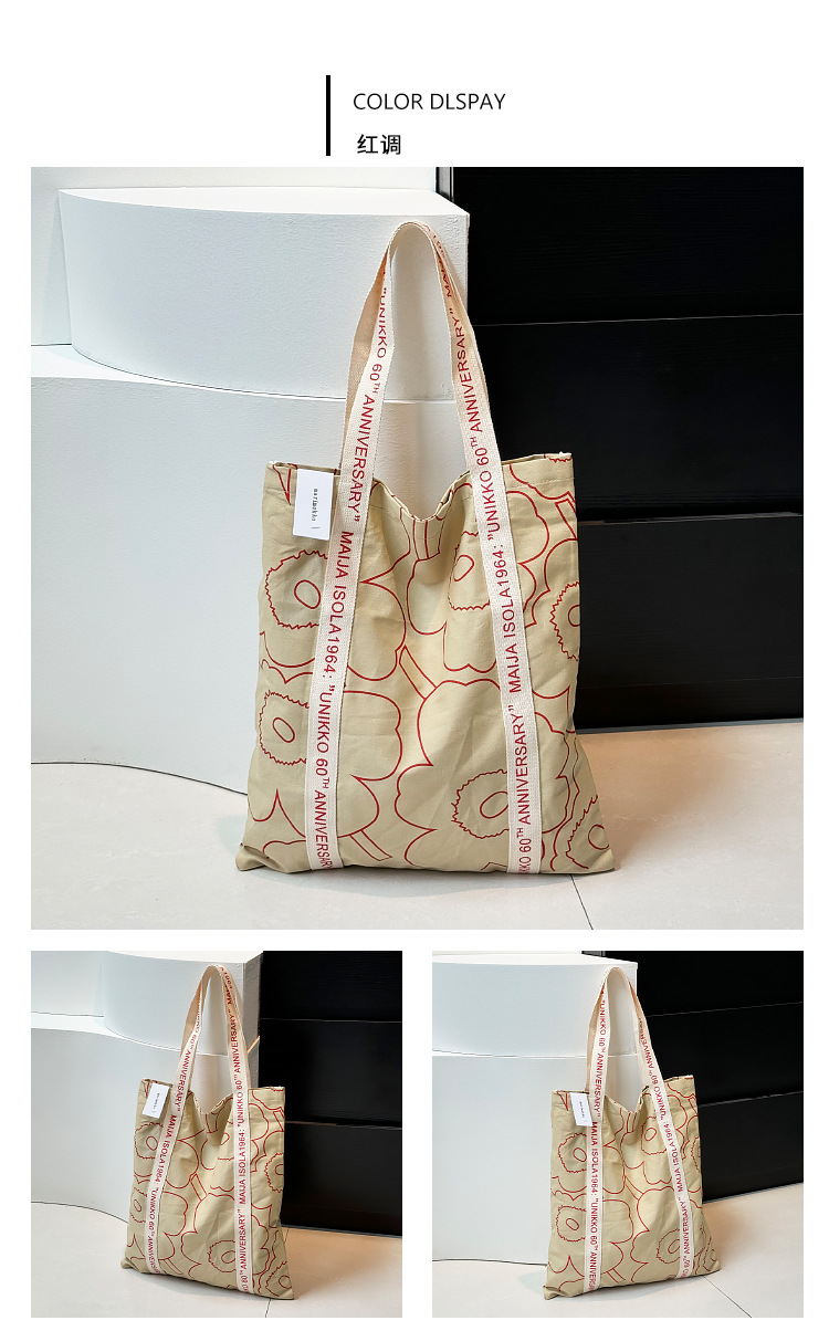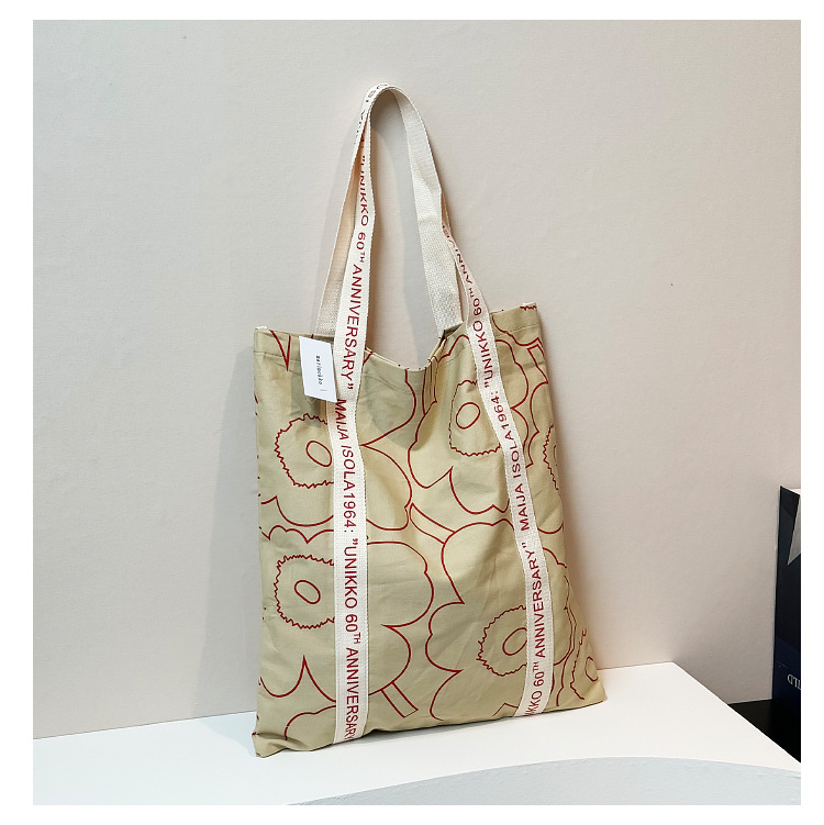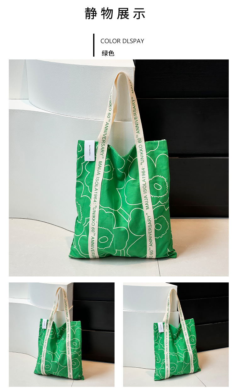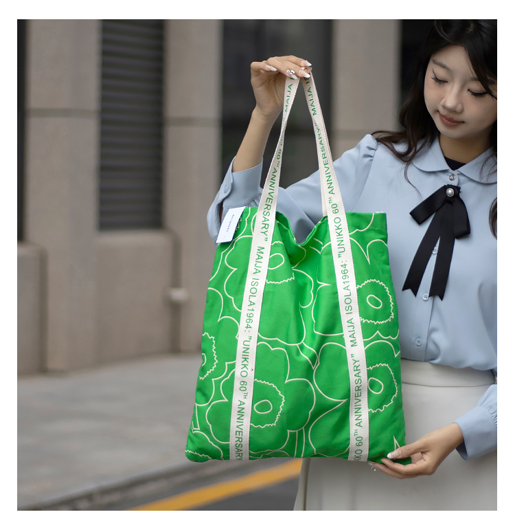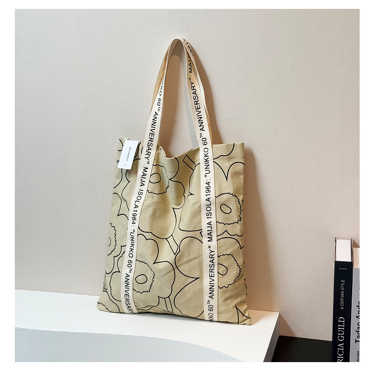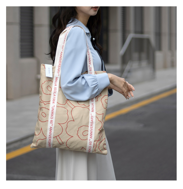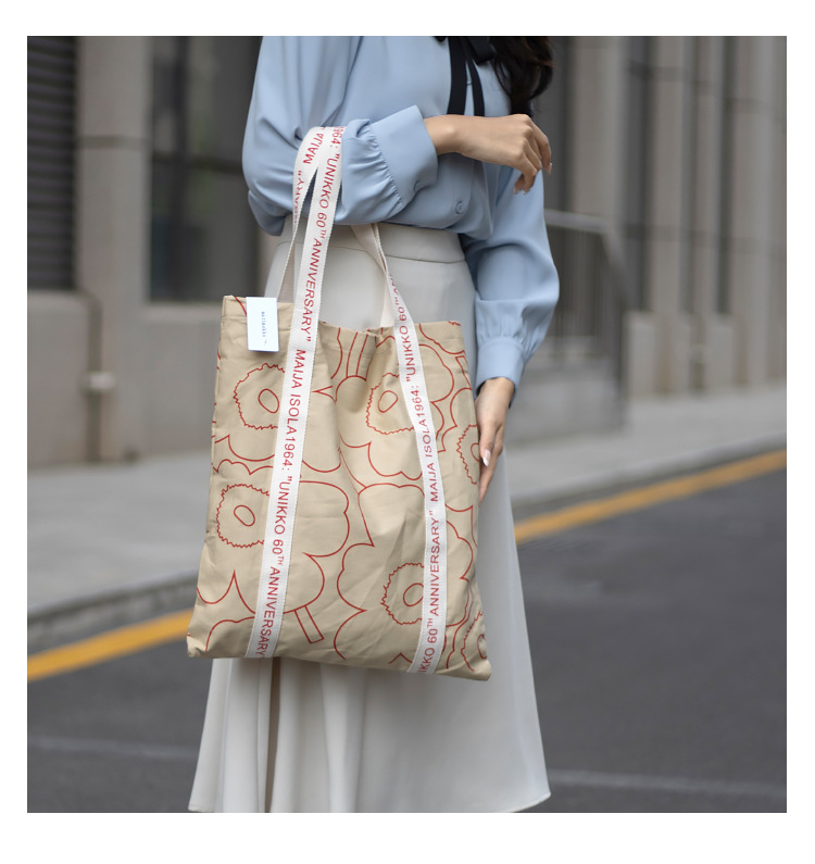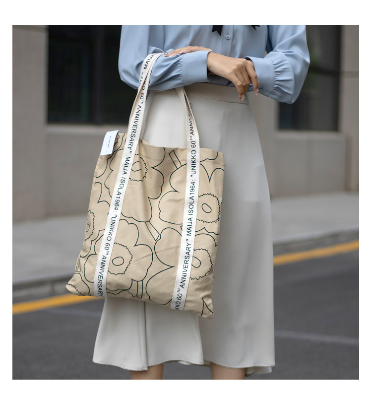 キャンバスバッグ北欧フィンランドフラワーレタープリントトートバッグファッションカジュアル大容量環境に優しいポータブルショッピングバッグ