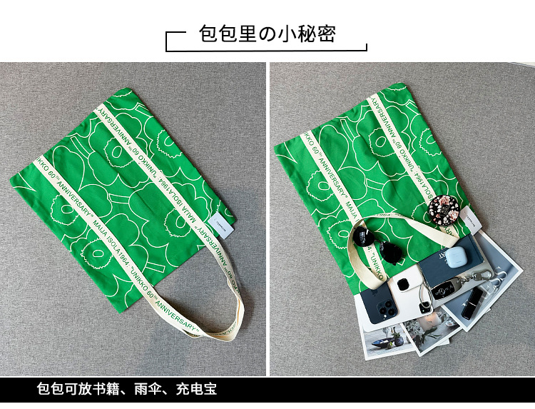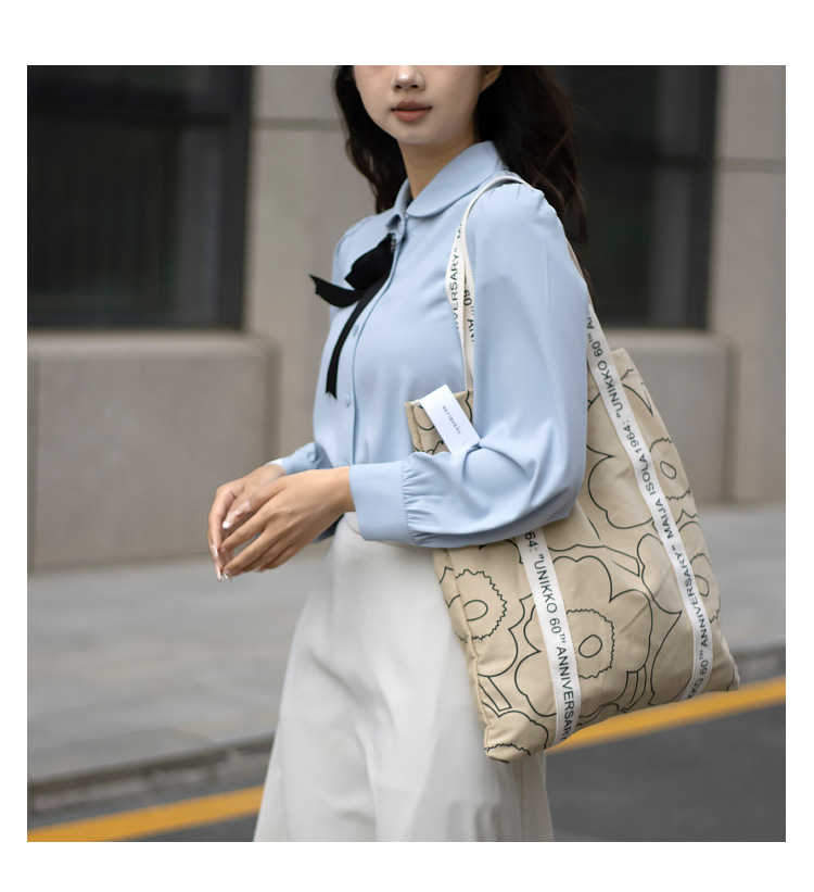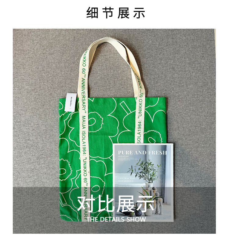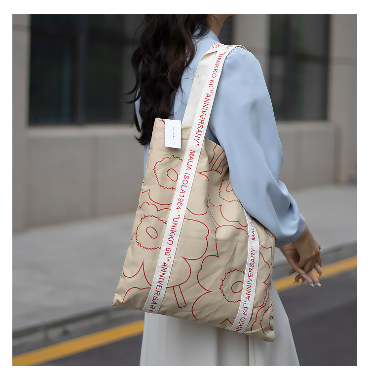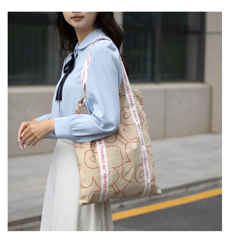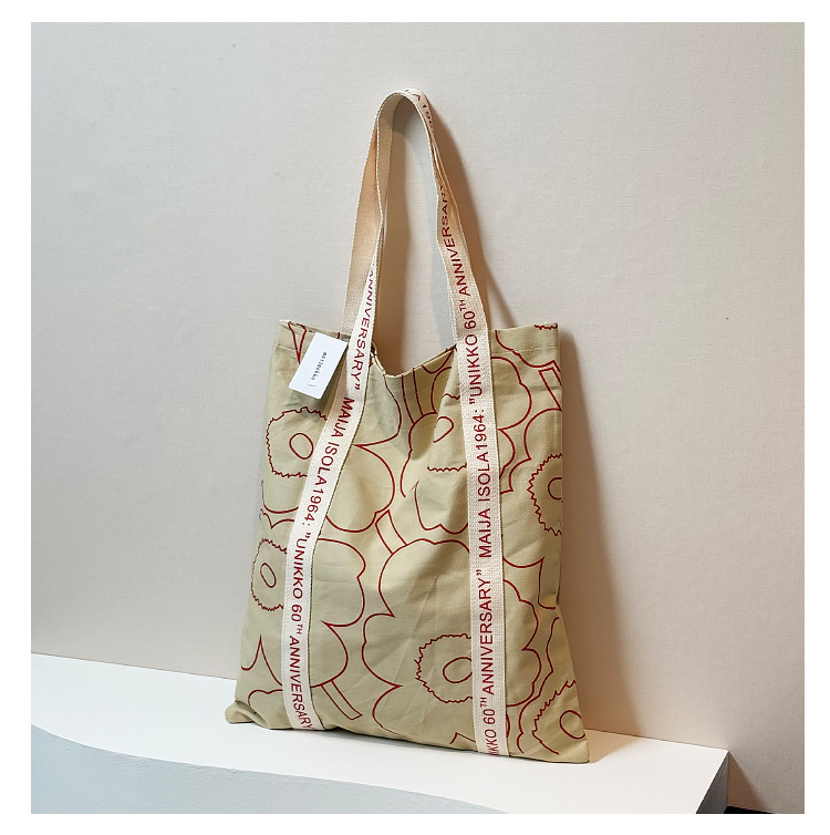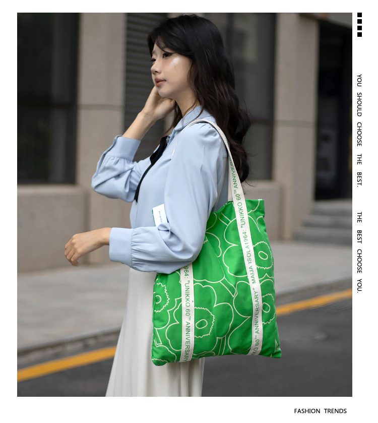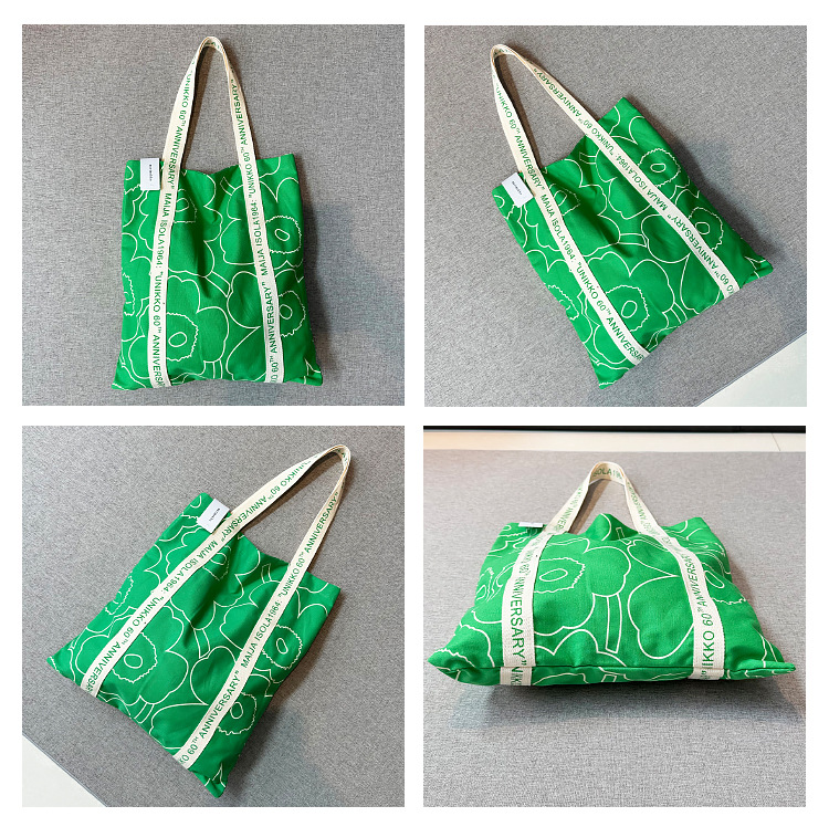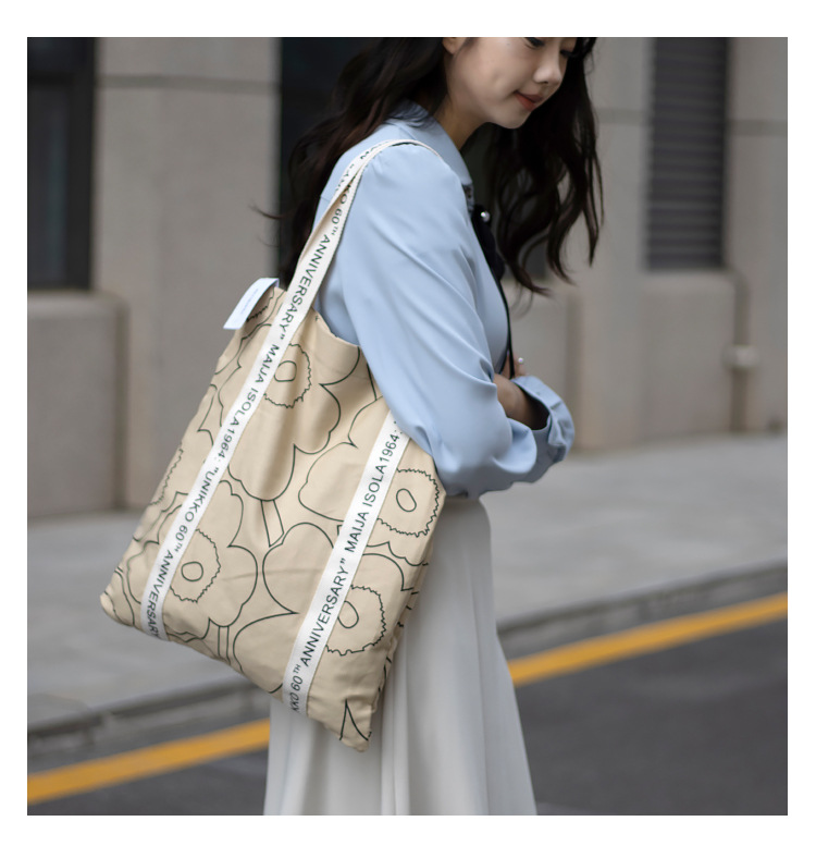 キャンバスバッグ北欧フィンランドフラワーレタープリントトートバッグファッションカジュアル大容量環境に優しいポータブルショッピングバッグ
