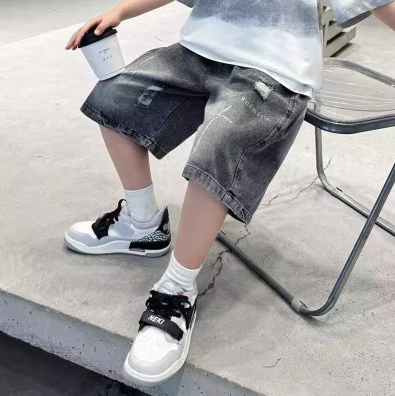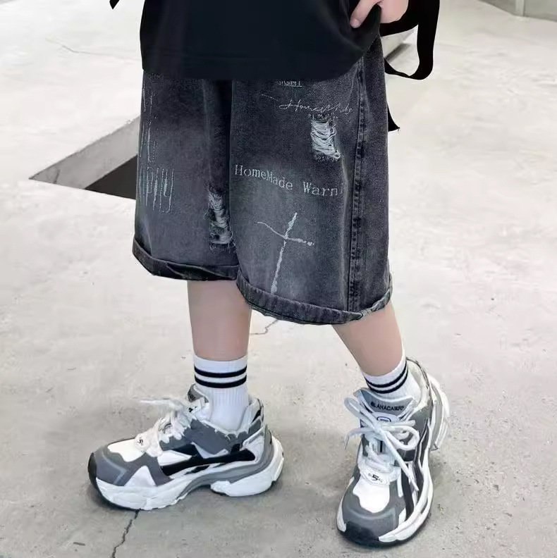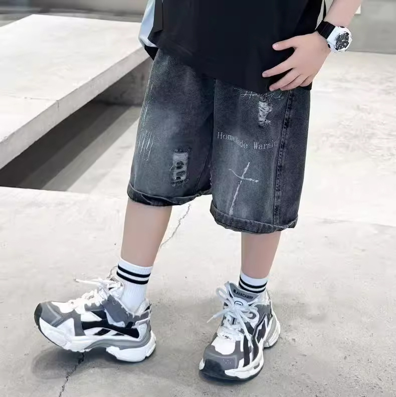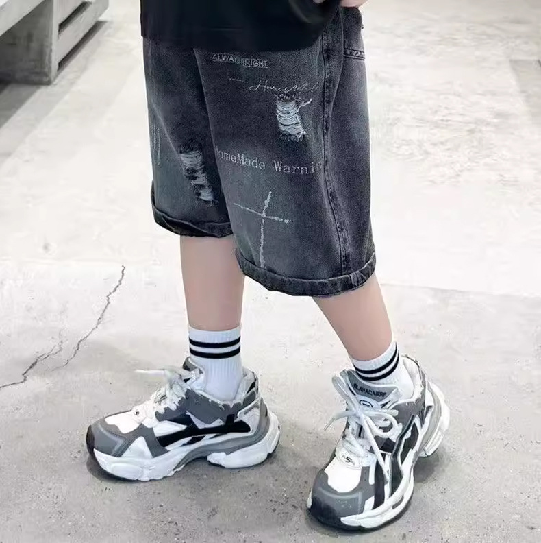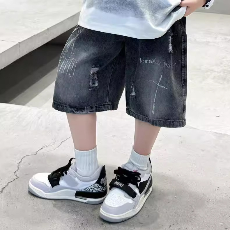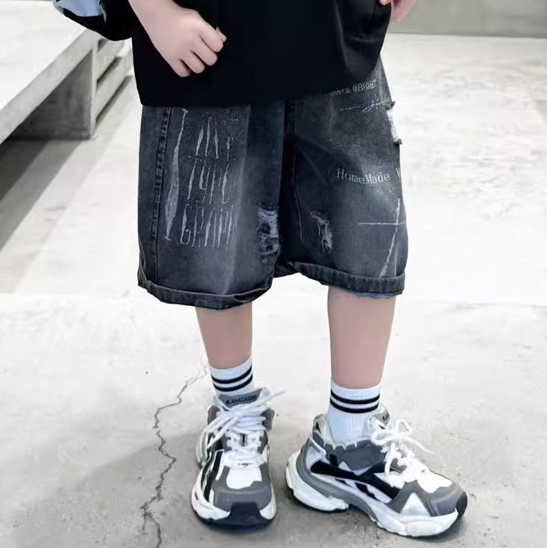 子供用パンツ 男の子用デニムショートパンツ おしゃれな黒色 男の子用夏用ミドルパンツ 韓国風 トレンドクール 2026 スポーツ夏服