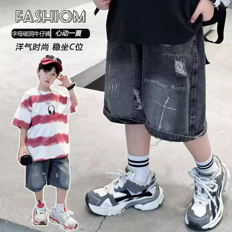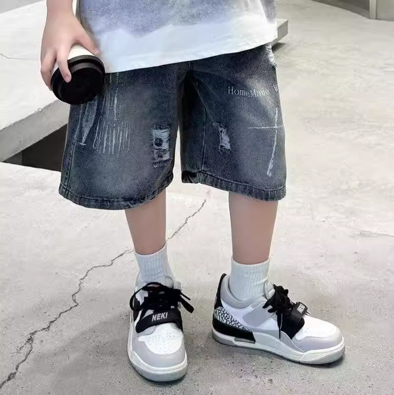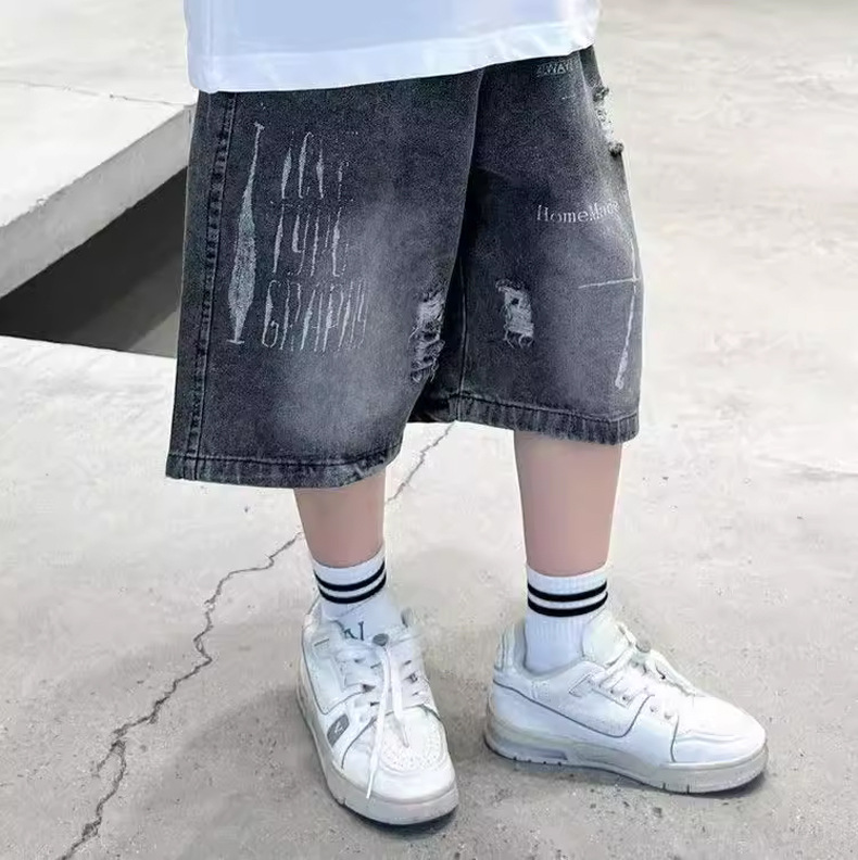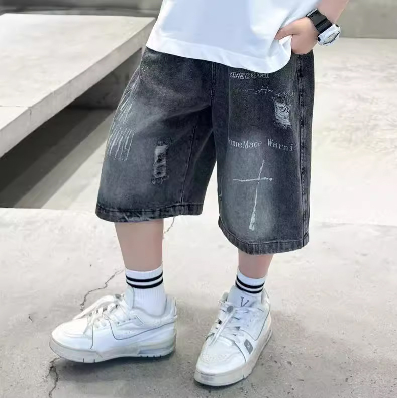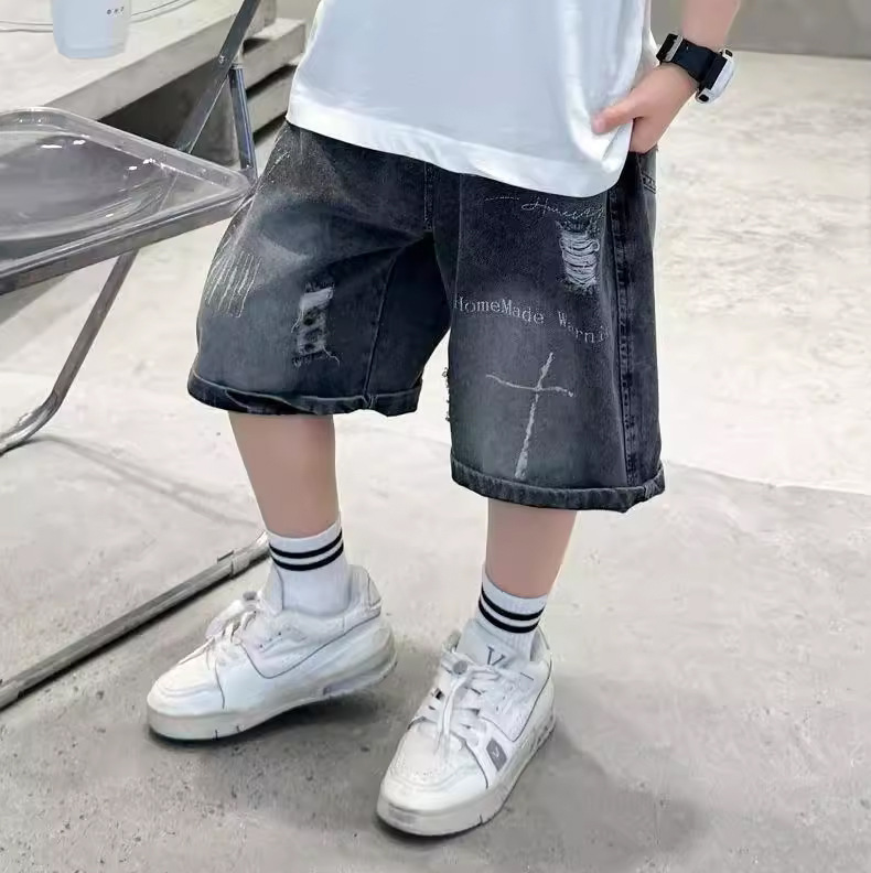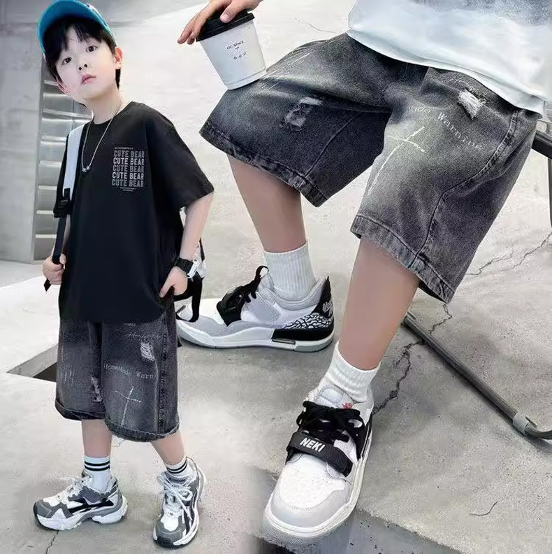 子供用パンツ 男の子用デニムショートパンツ おしゃれな黒色 男の子用夏用ミドルパンツ 韓国風 トレンドクール 2026 スポーツ夏服