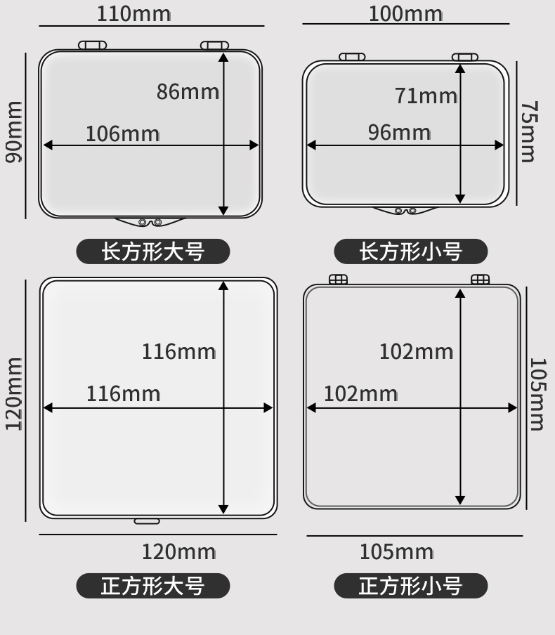 角型特大サイズ[120*120*18MM] 1枚,角型Lサイズ[105×105×22MM] 1個,スクエア Mサイズ [92×92×18MM] 1個,角型 Sサイズ [82×82×18MM] 1個,角型特小サイズ[70×70×18MM] 1個,長方形 Lサイズ [110*90*20MM] 1 つの小さな傷は気にしないでください、写真を撮らないでください,長方形 Sサイズ [100*75*18MM] 1個