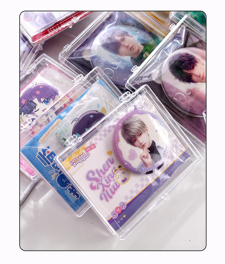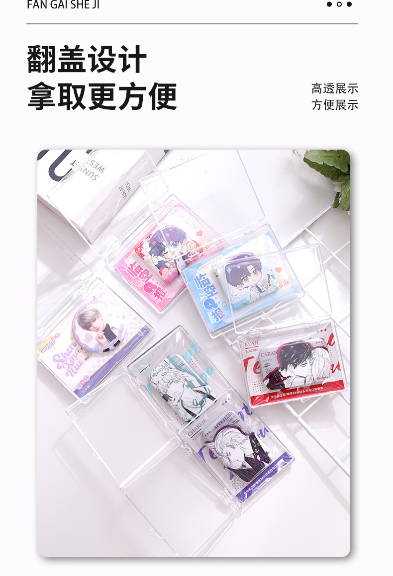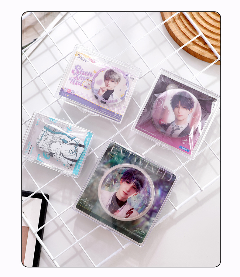 透明バッジ収納ディスプレイボックス、高透明アクリル製卓上整理ボックス、ポータブル