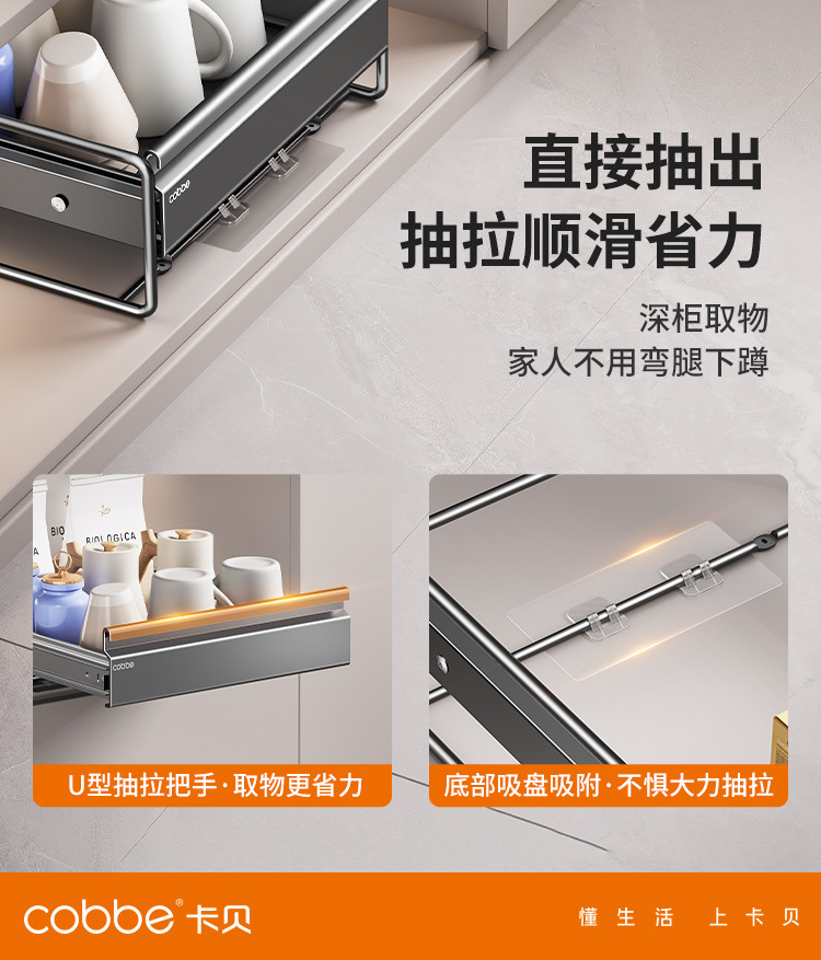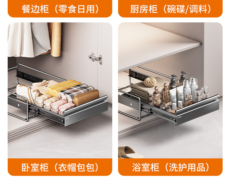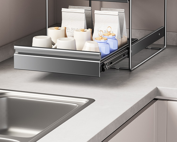 カベキッチン用品物置棚キャビネット内下シンク階層引き出しステンレス引き出し式多機能収納
