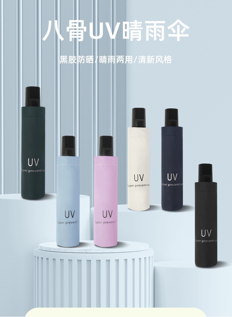 手動UV黒ゴム傘三折り畳み傘日焼け止め紫外線防止日傘晴雨両用傘卸売り