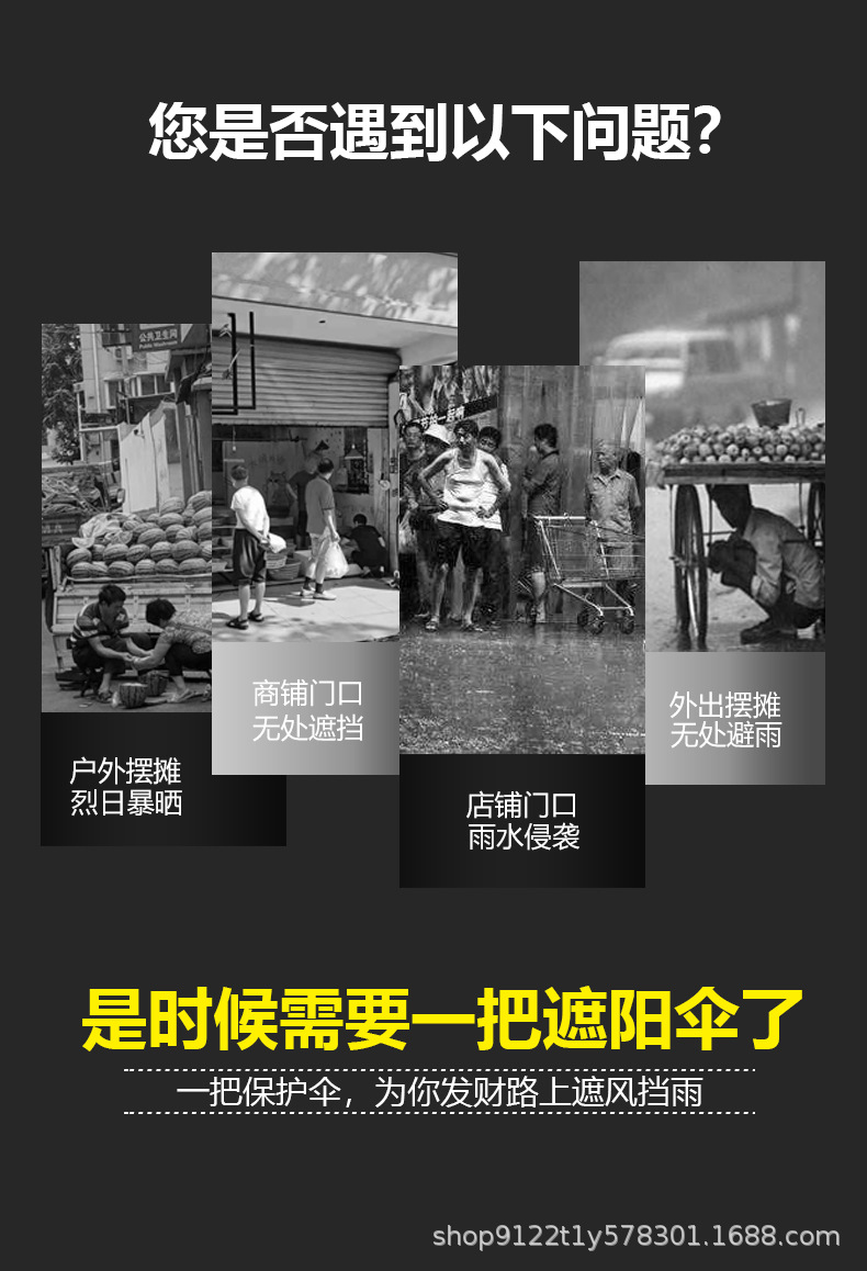 日傘、斜め傘、屋台用斜傘、店舗用斜傘、商業用店舗の正面の雨よけ、壁に立てられる日よけ