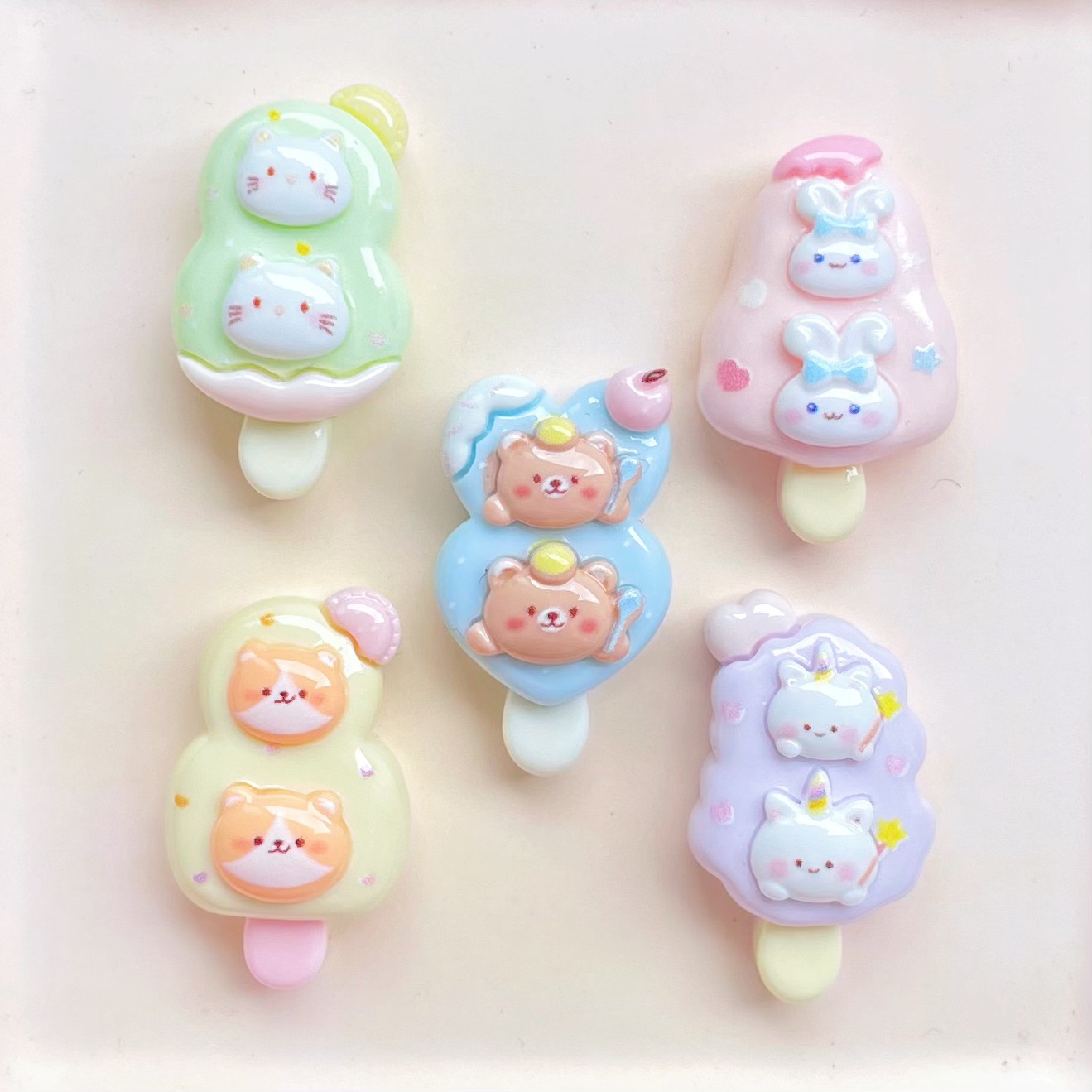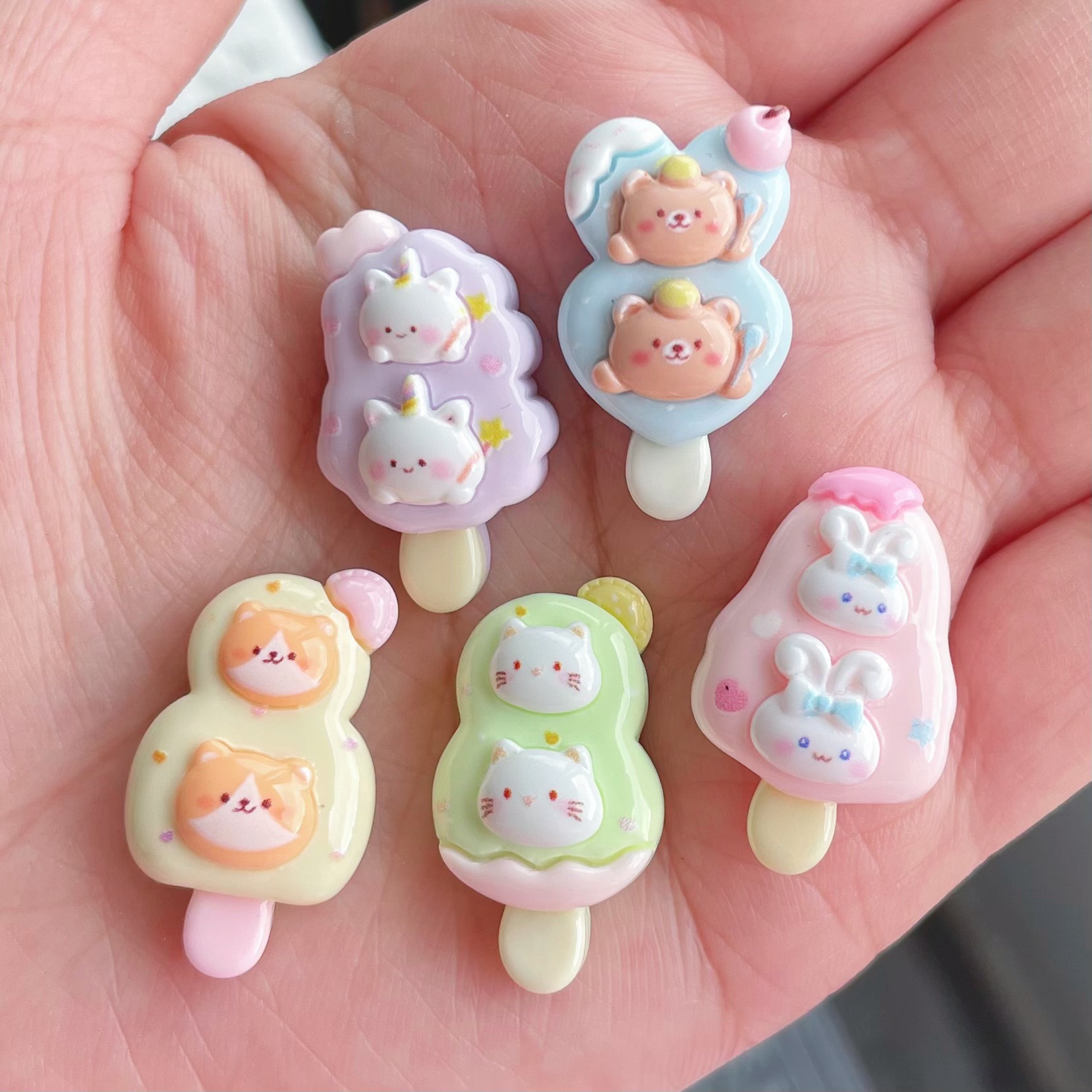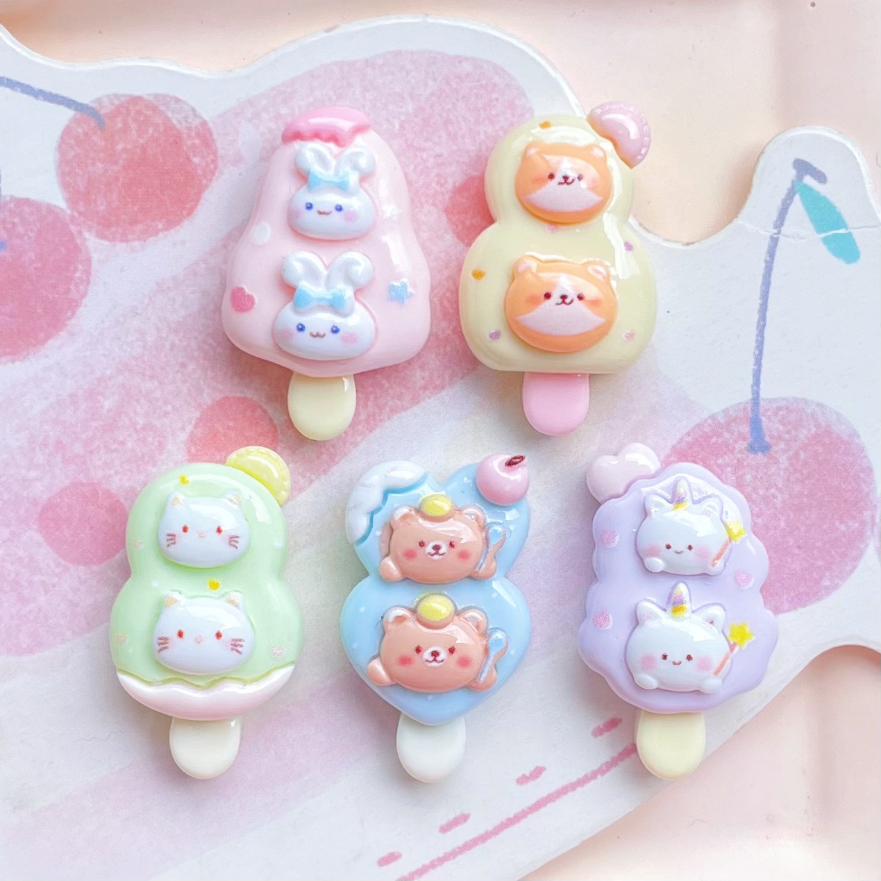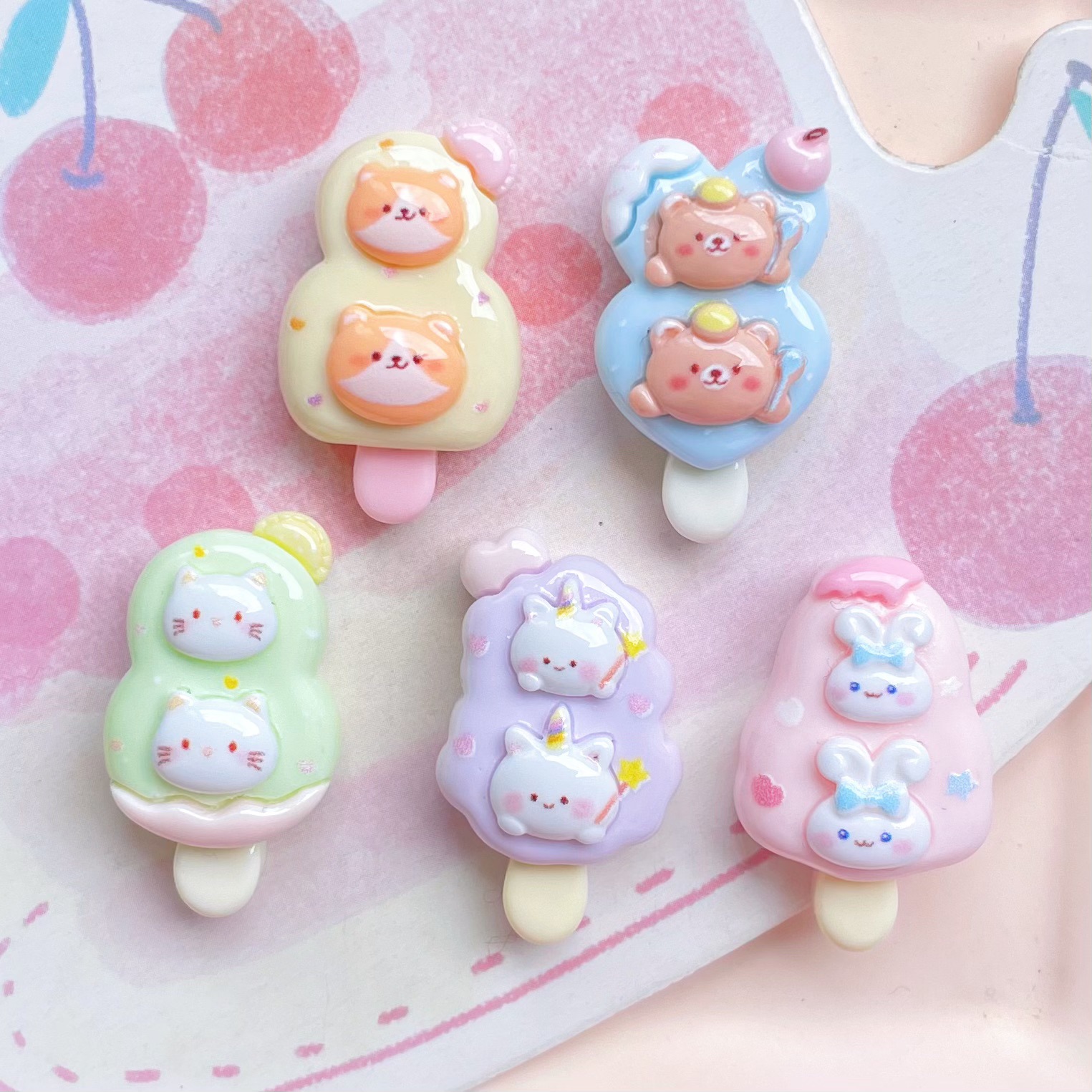 漫画動物アイスクリーム樹脂アクセサリー卸売かわいいアイスキャンディー携帯電話ケースヘアピンリングアクセサリーパッチ素材