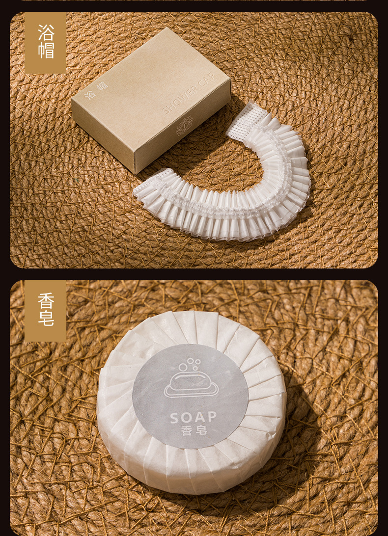 使い捨てシャワーキャップ,使い捨て石鹸,使い捨てカミソリ,使い捨て歯ブラシ,使い捨てシャワージェル,使い捨てコーム,使い捨てシャンプー