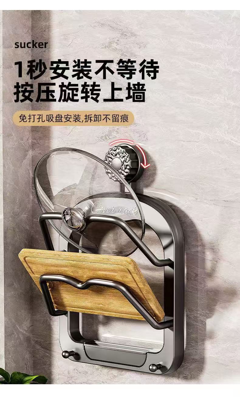 吸盤の鍋の蓋の棚の置く器は穴を開けないで壁掛け式の台所の棚の多機能の棚のまな板の台の棚を置きます。