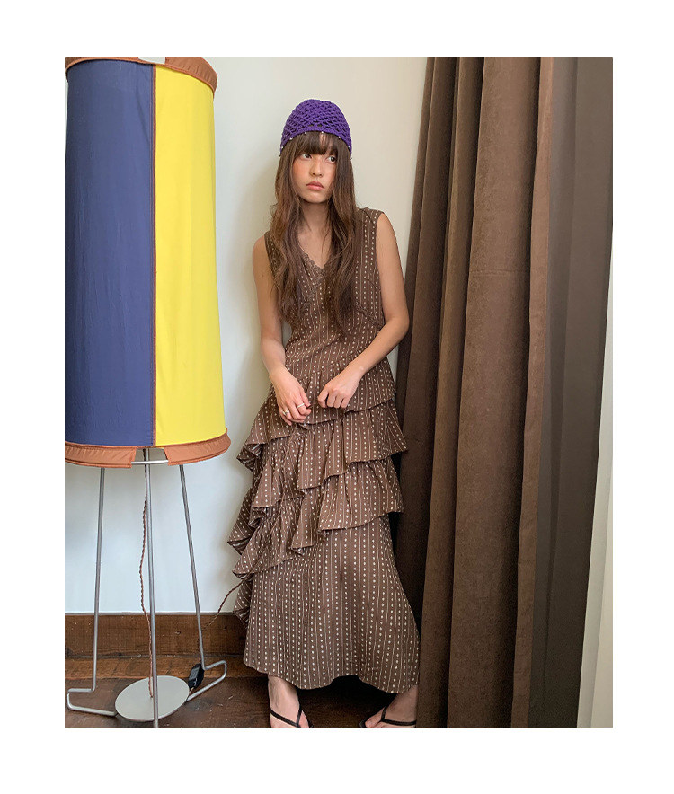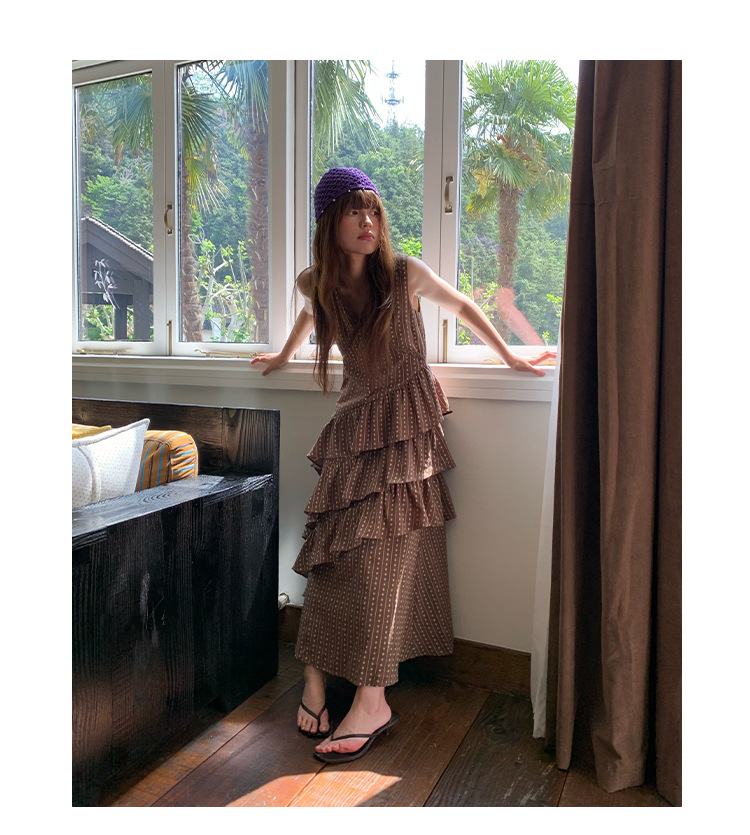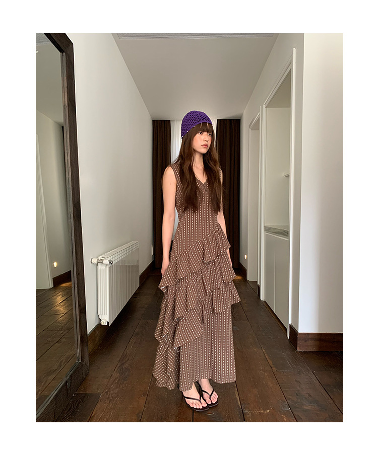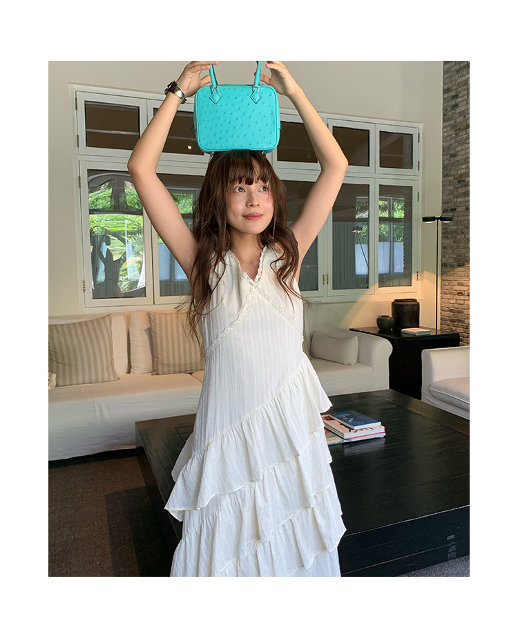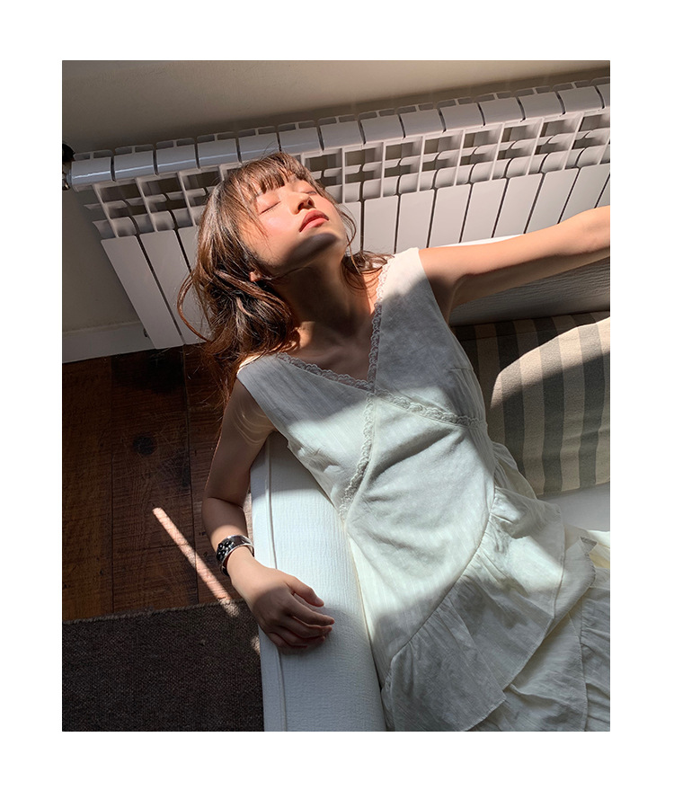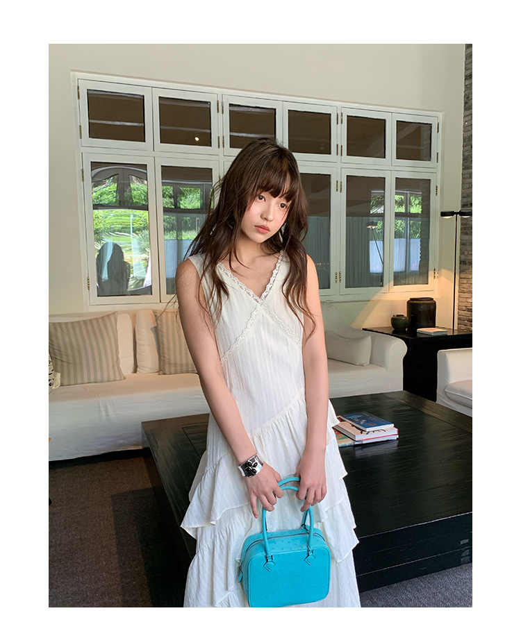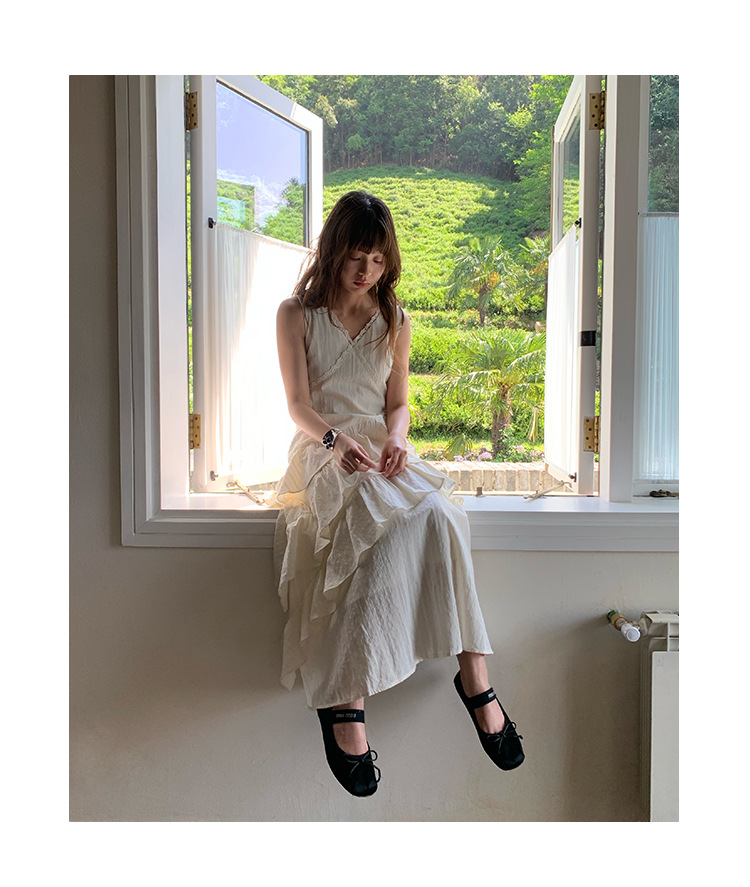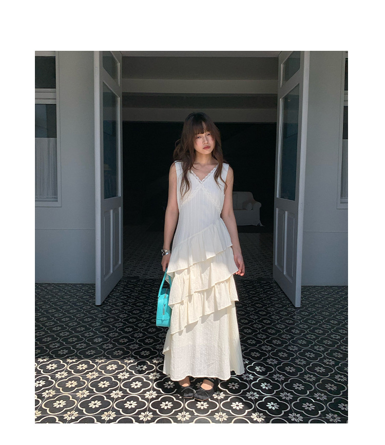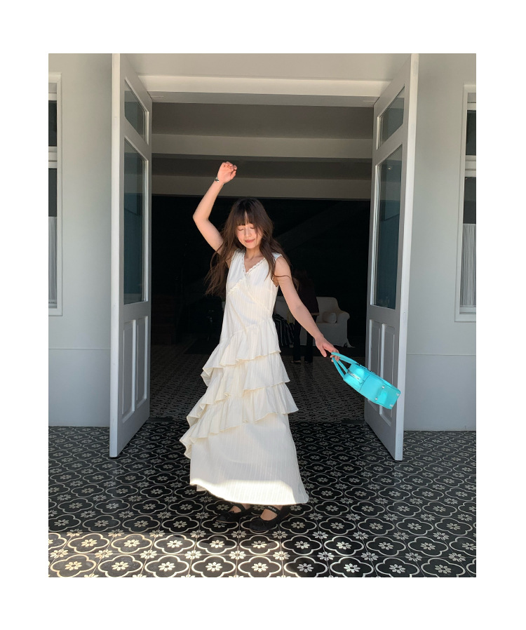 Quanlimei NEWOPEN 25 夏フランスの優しい気質スリム V ネックフリルドレス女性 S5356