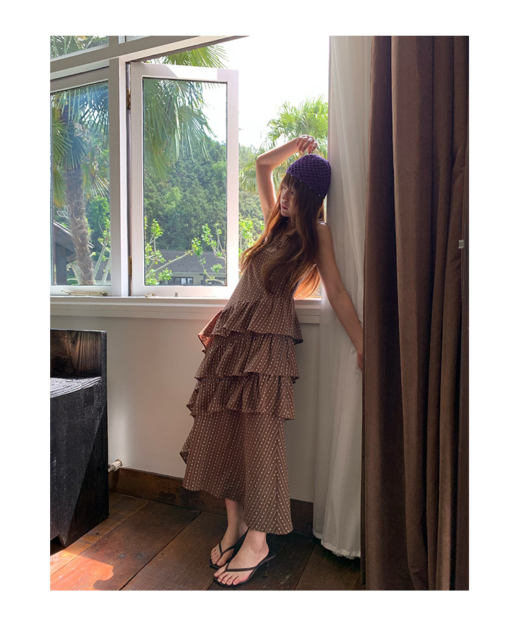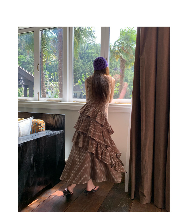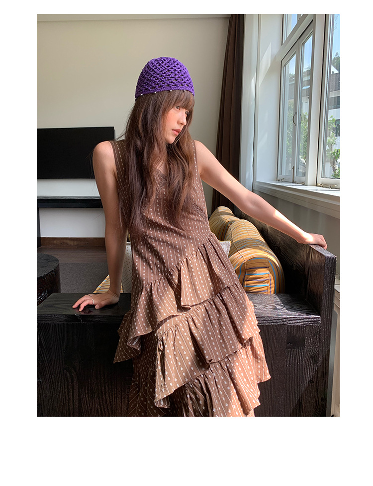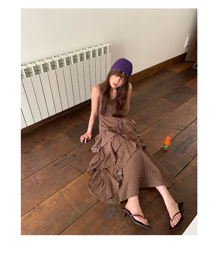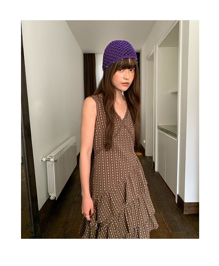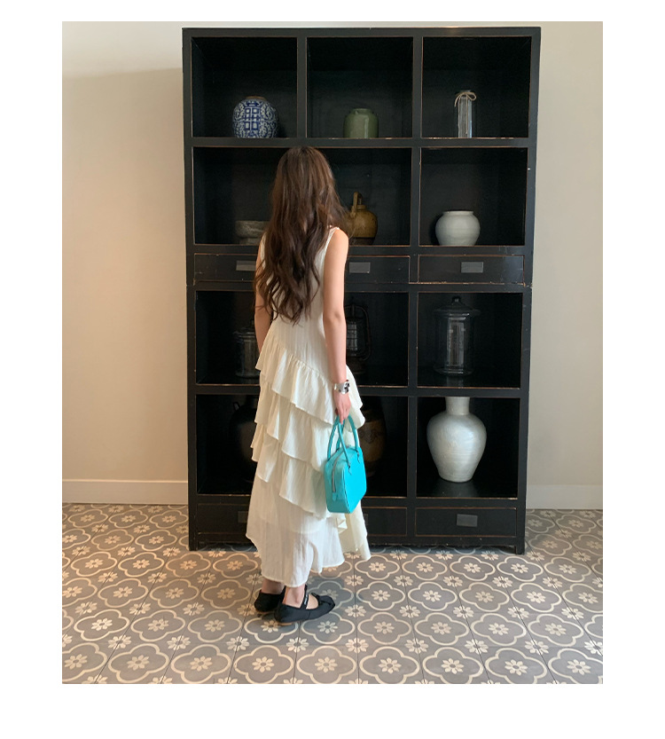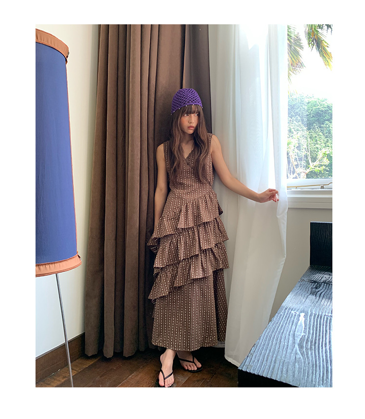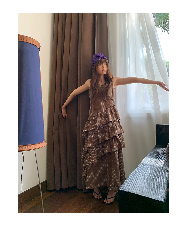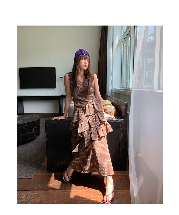 Quanlimei NEWOPEN 25 夏フランスの優しい気質スリム V ネックフリルドレス女性 S5356