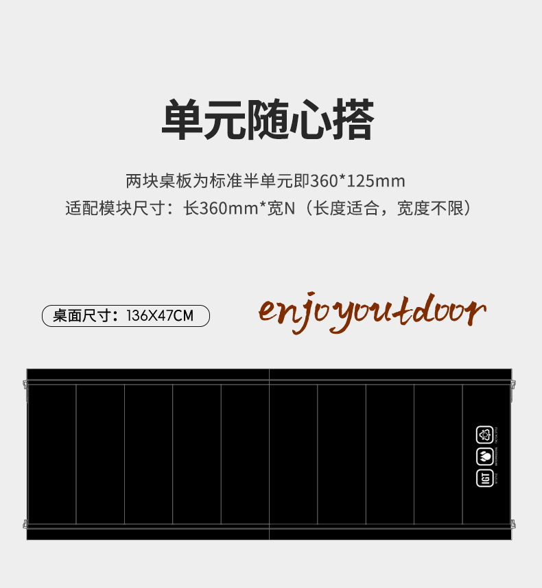 アルミ合金製 5 ユニット折りたたみ IGT テーブル - ブラック (収納袋付き)
