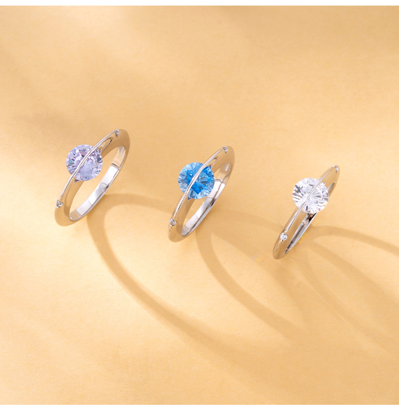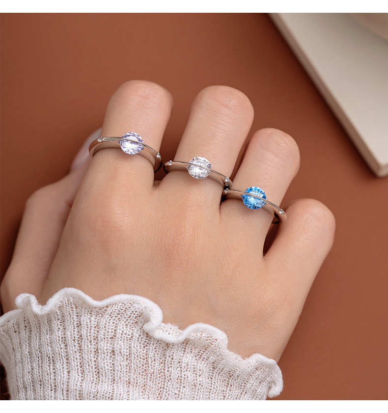 s925 スターリングシルバーつや消し宇宙星回転可能なリング惑星点滅ニッチデザインライト高級ハイエンドリング