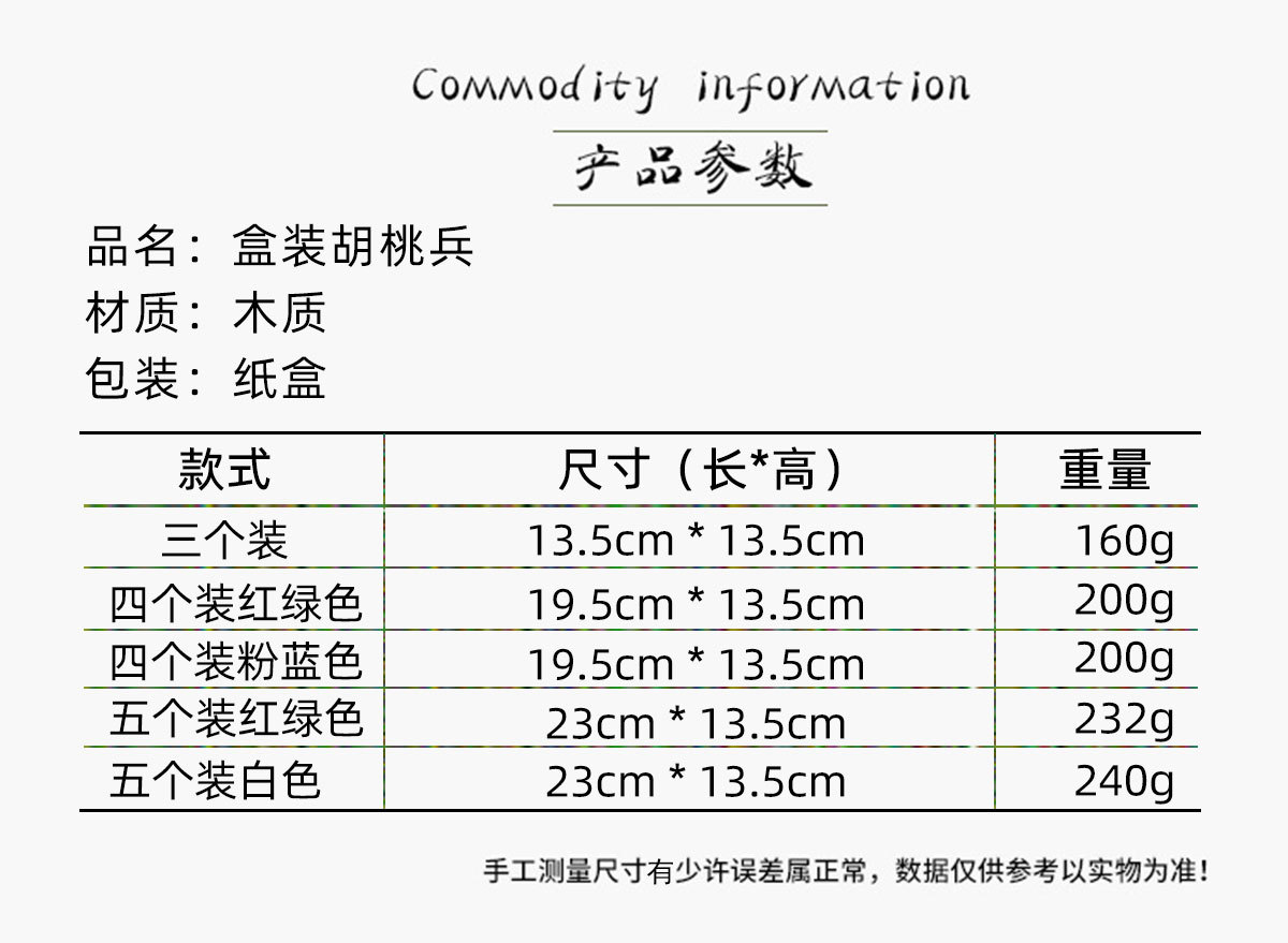 包装尺寸:三个装13.5*13.5*4cm 160克