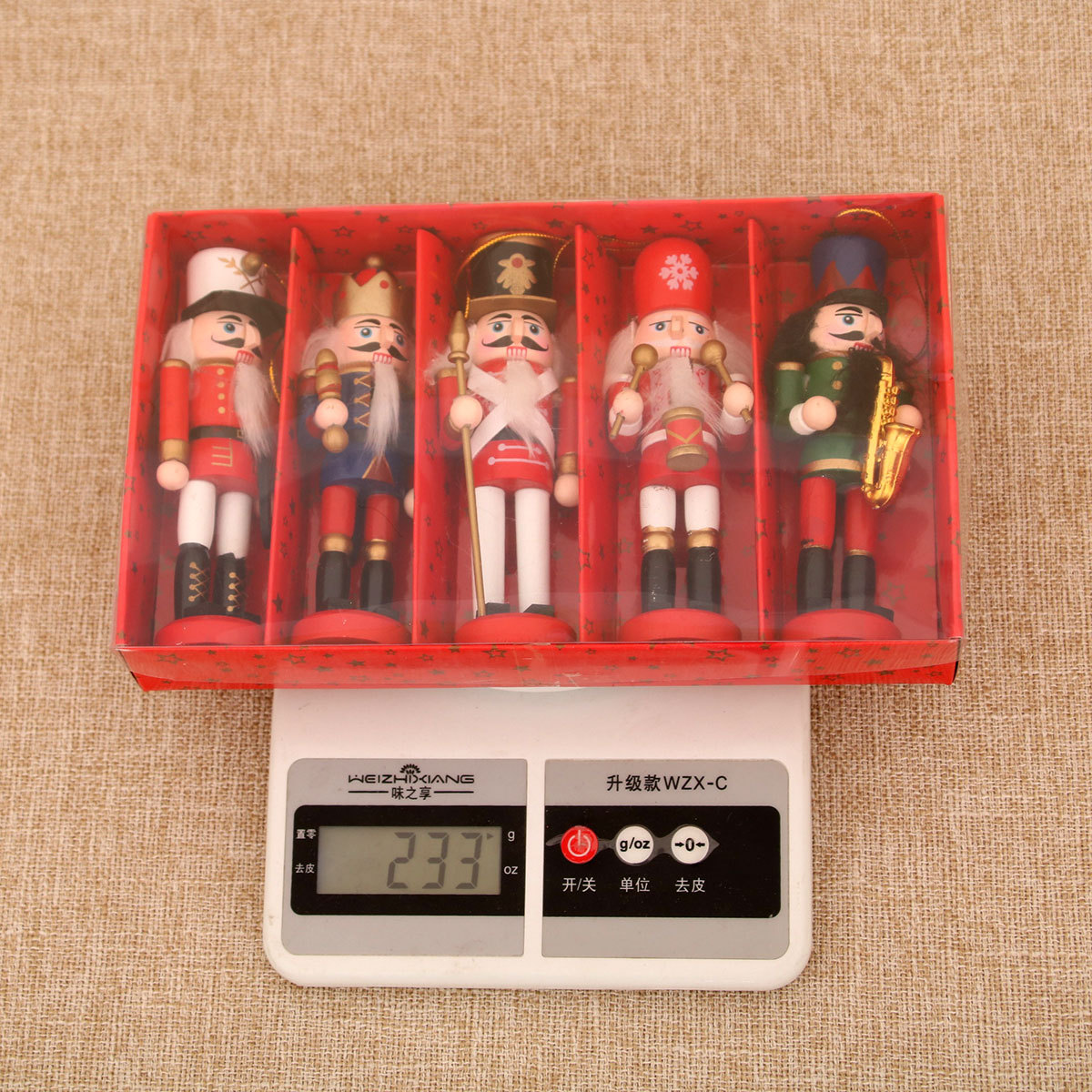 赤と緑のクルミの兵士 5 体