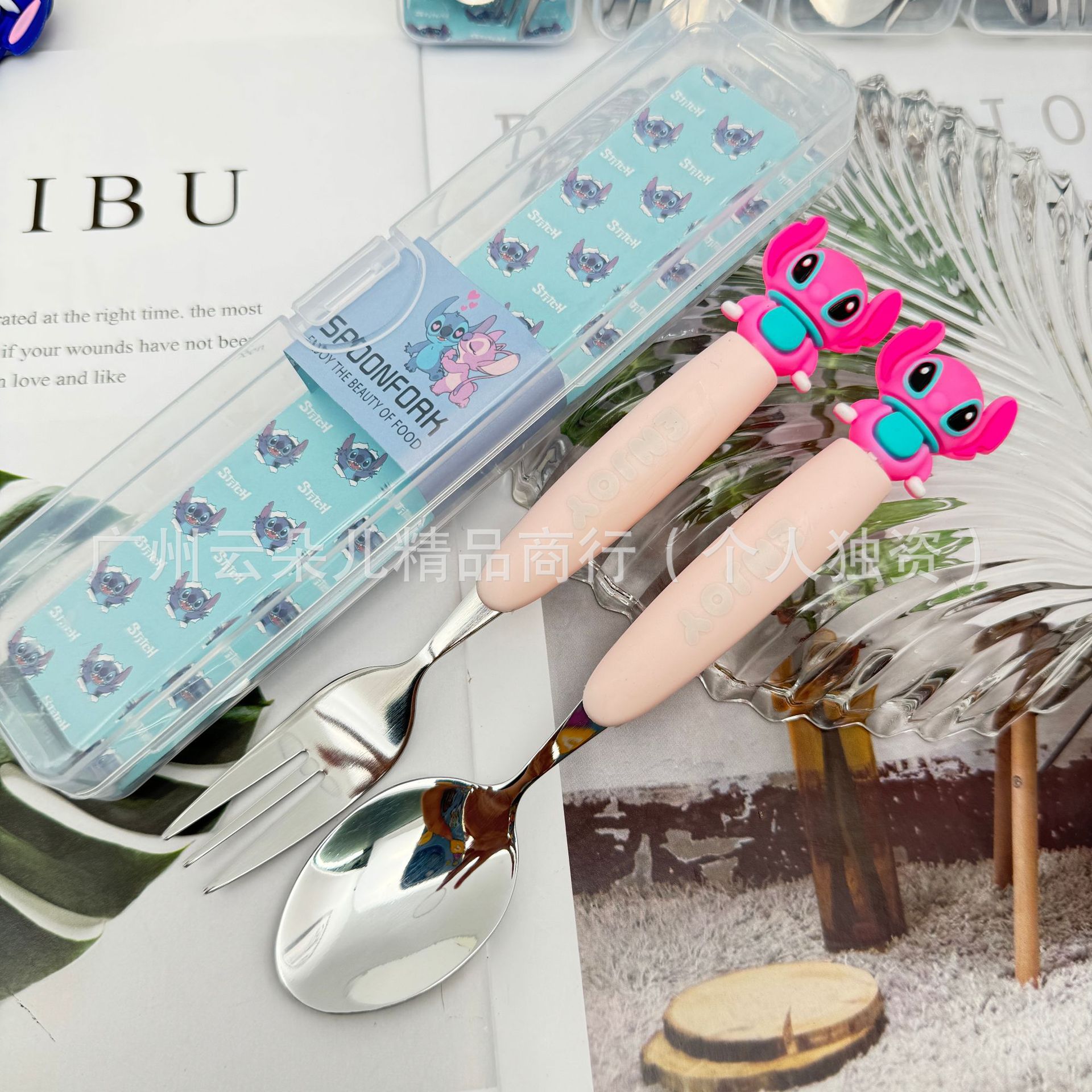 学生用ステンレス食器 子供用携帯フォークとスプーンの2点セット 可愛い漫画風シリコン製食器