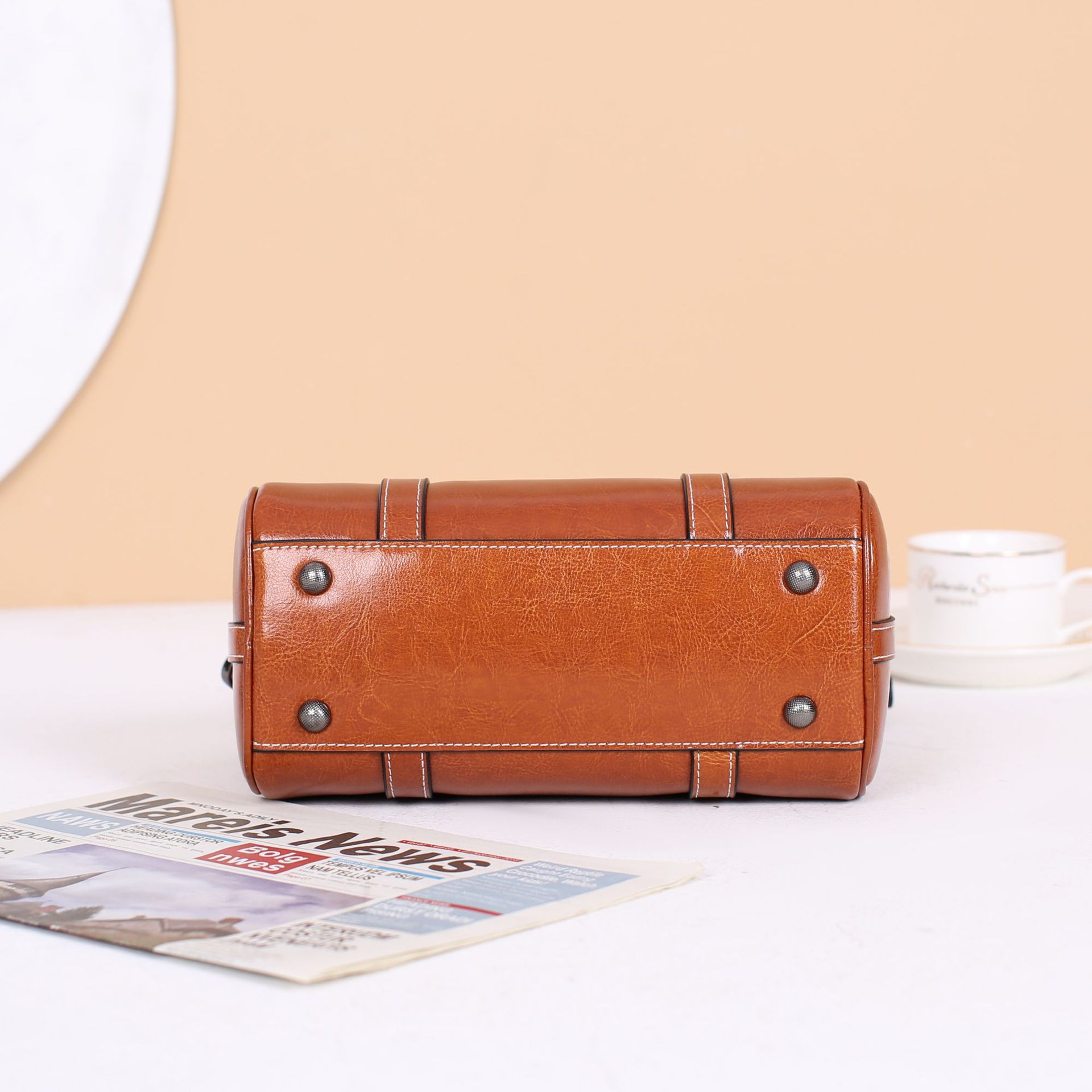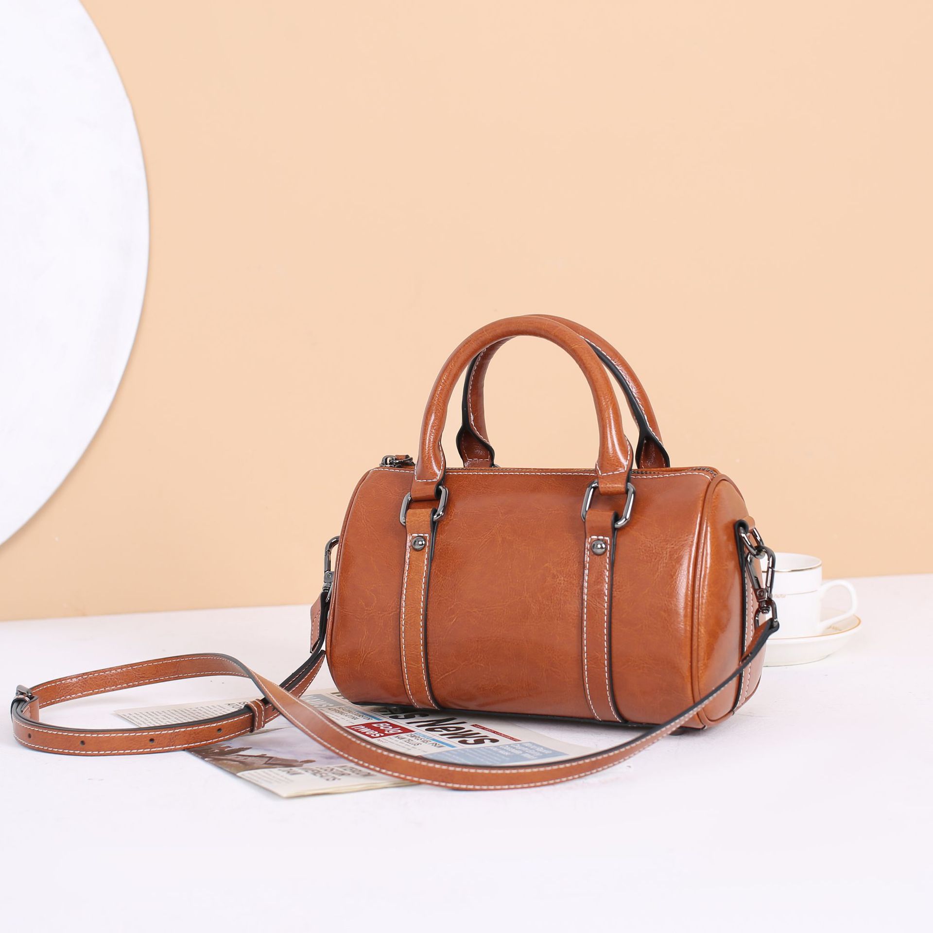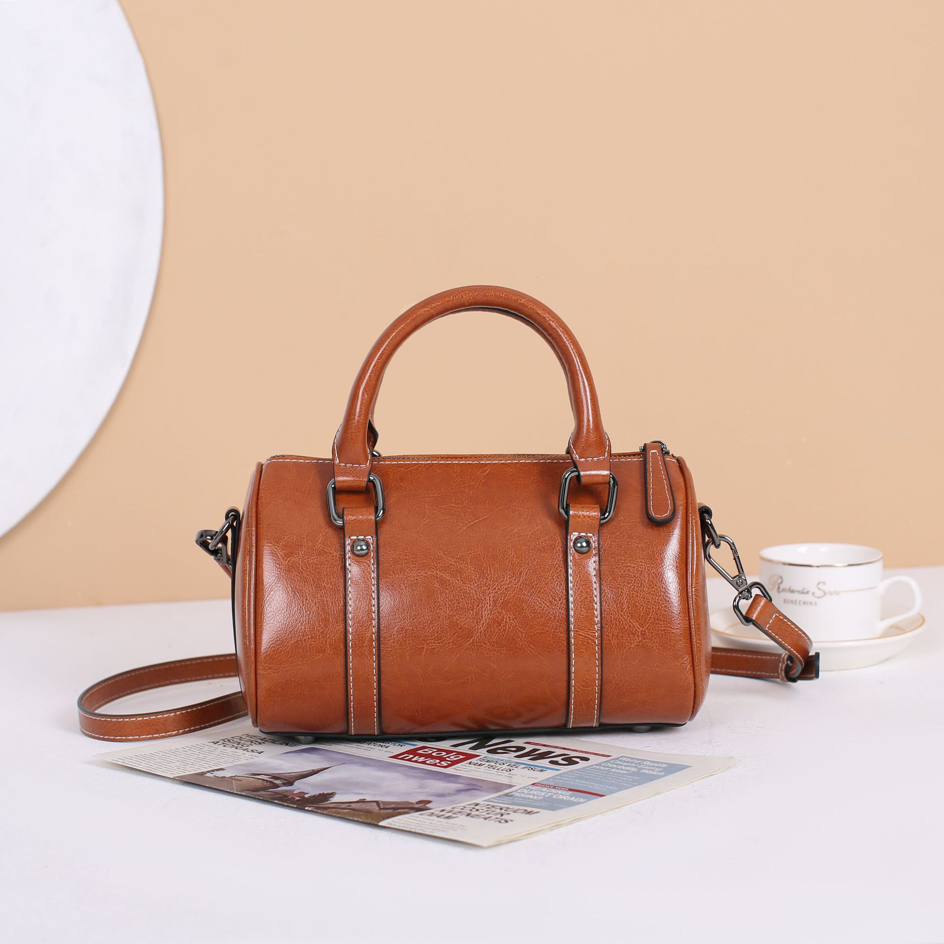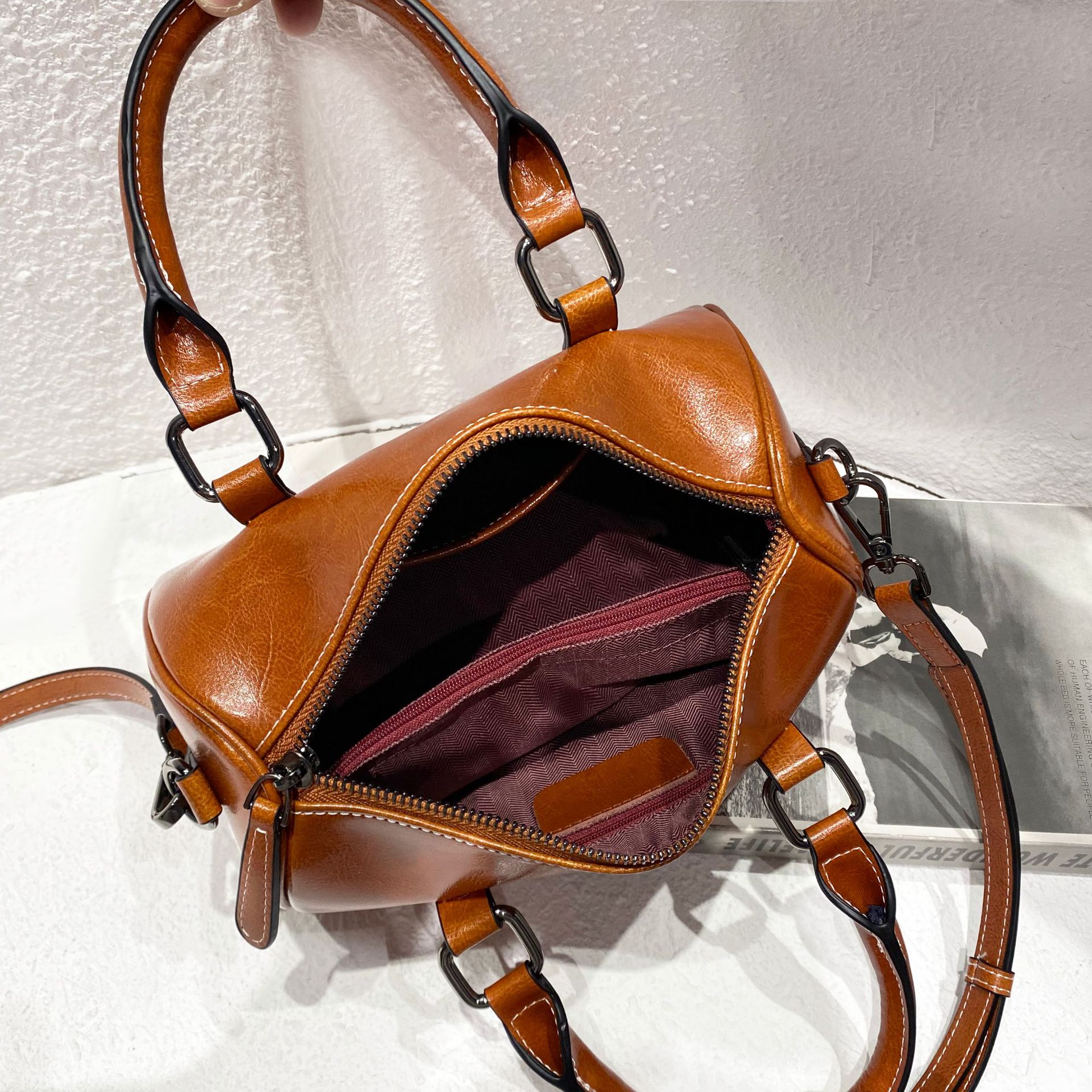 牛革オイルワックスレザーレトロピローバッグ人気ファッションボストンショルダークロスボディ実用クロスボーダークラシックレザー