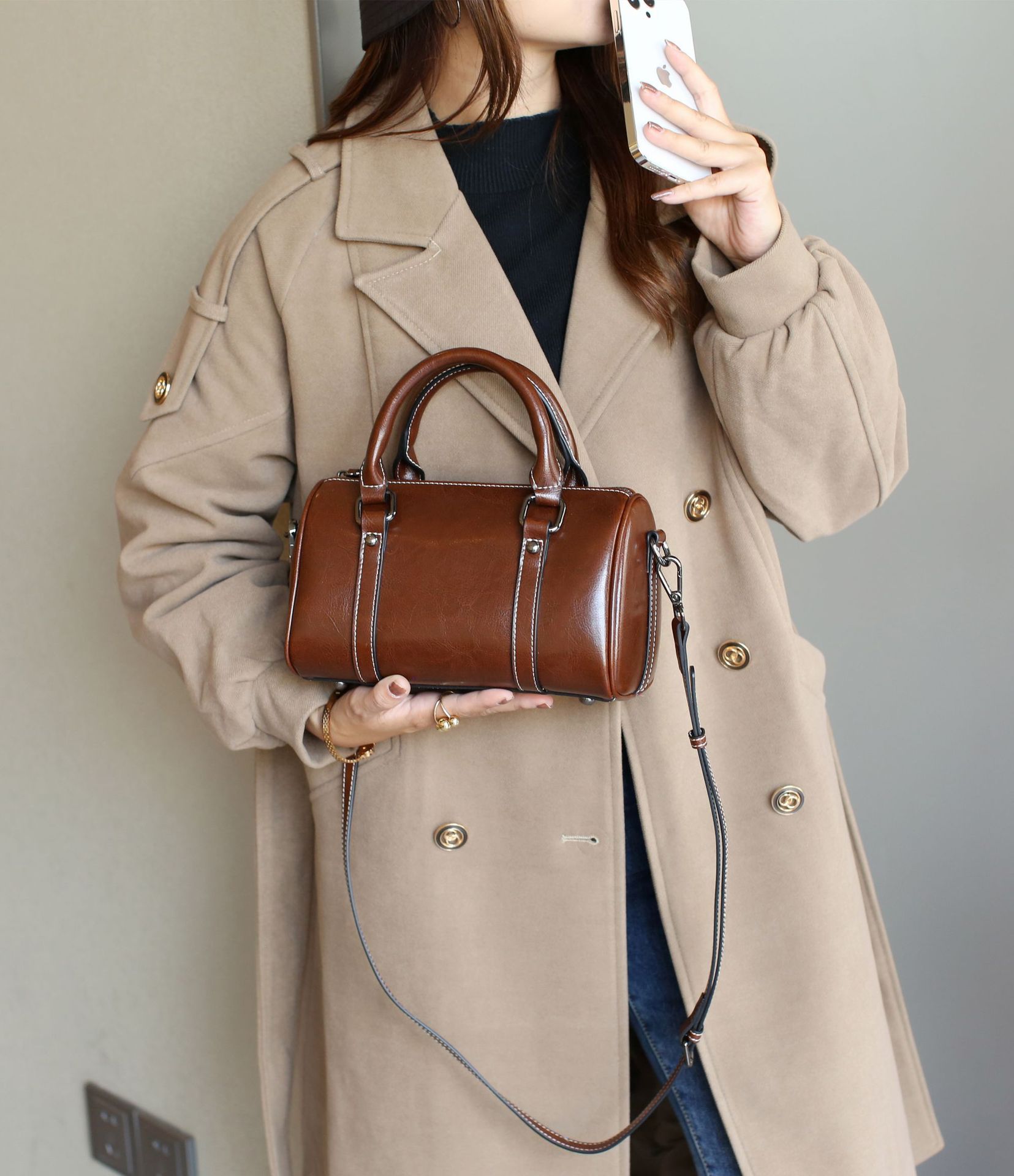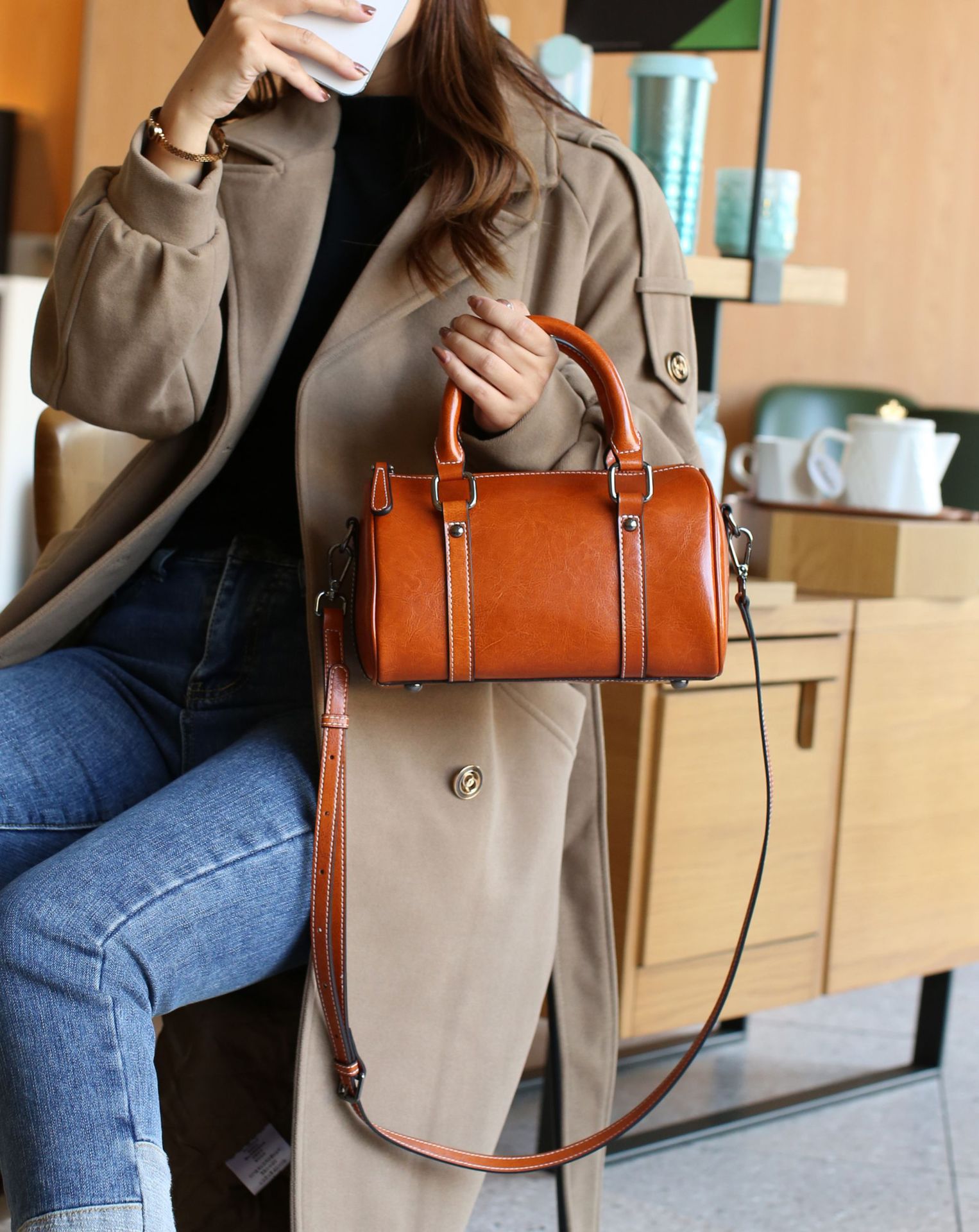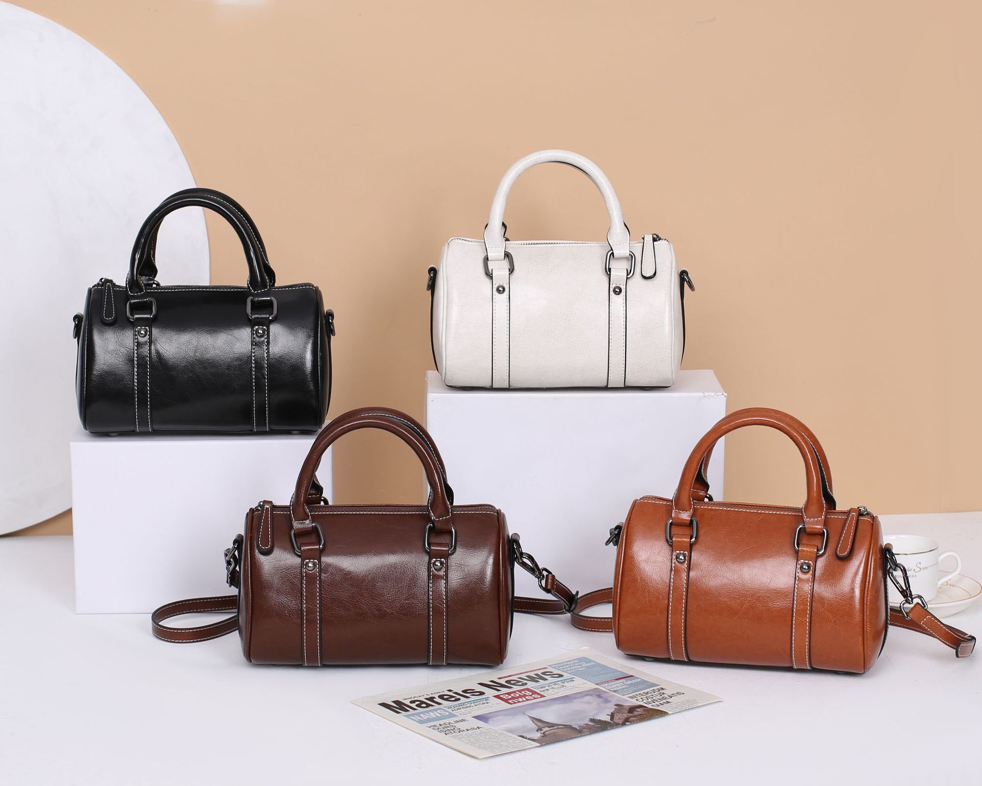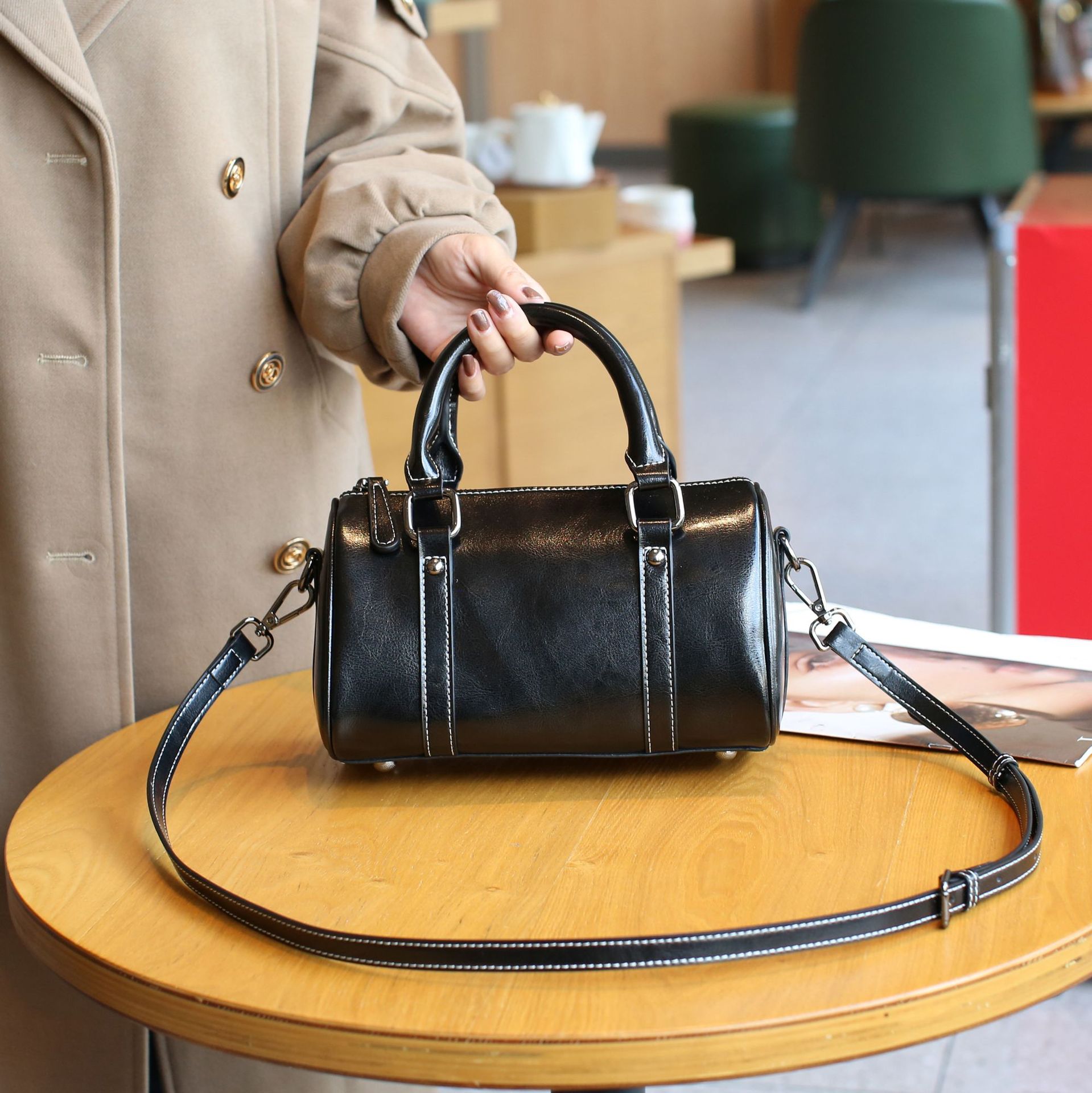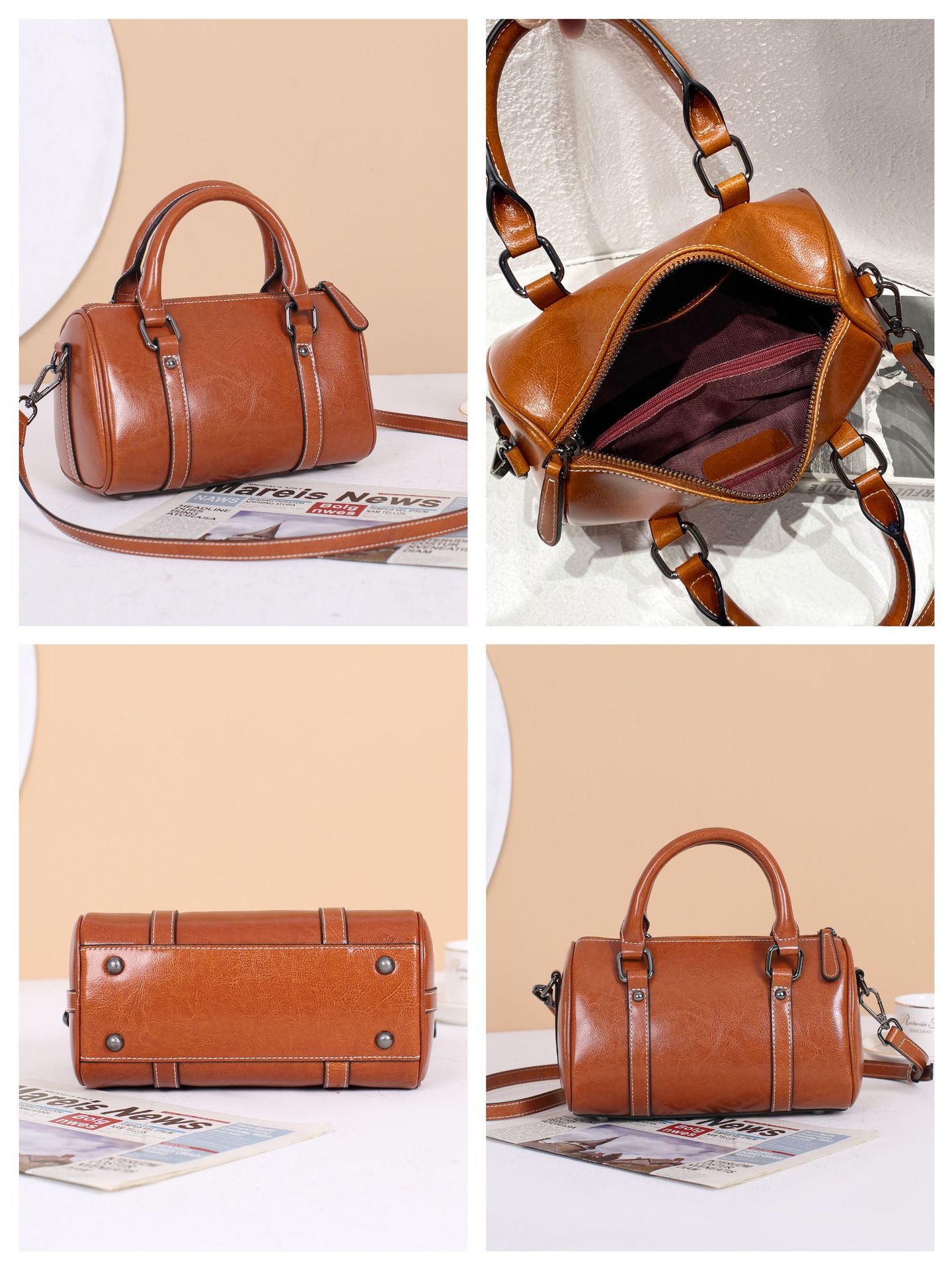 牛革オイルワックスレザーレトロピローバッグ人気ファッションボストンショルダークロスボディ実用クロスボーダークラシックレザー