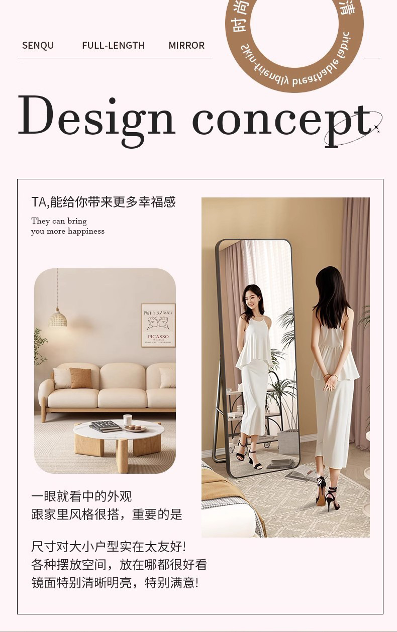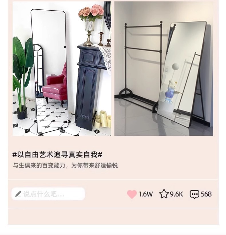 全身鏡、ドレッシングフロアミラー、家庭用シンプルな壁掛けミラー、インターネットセレブの女の子の寝室の化粧壁掛け試着ミラー