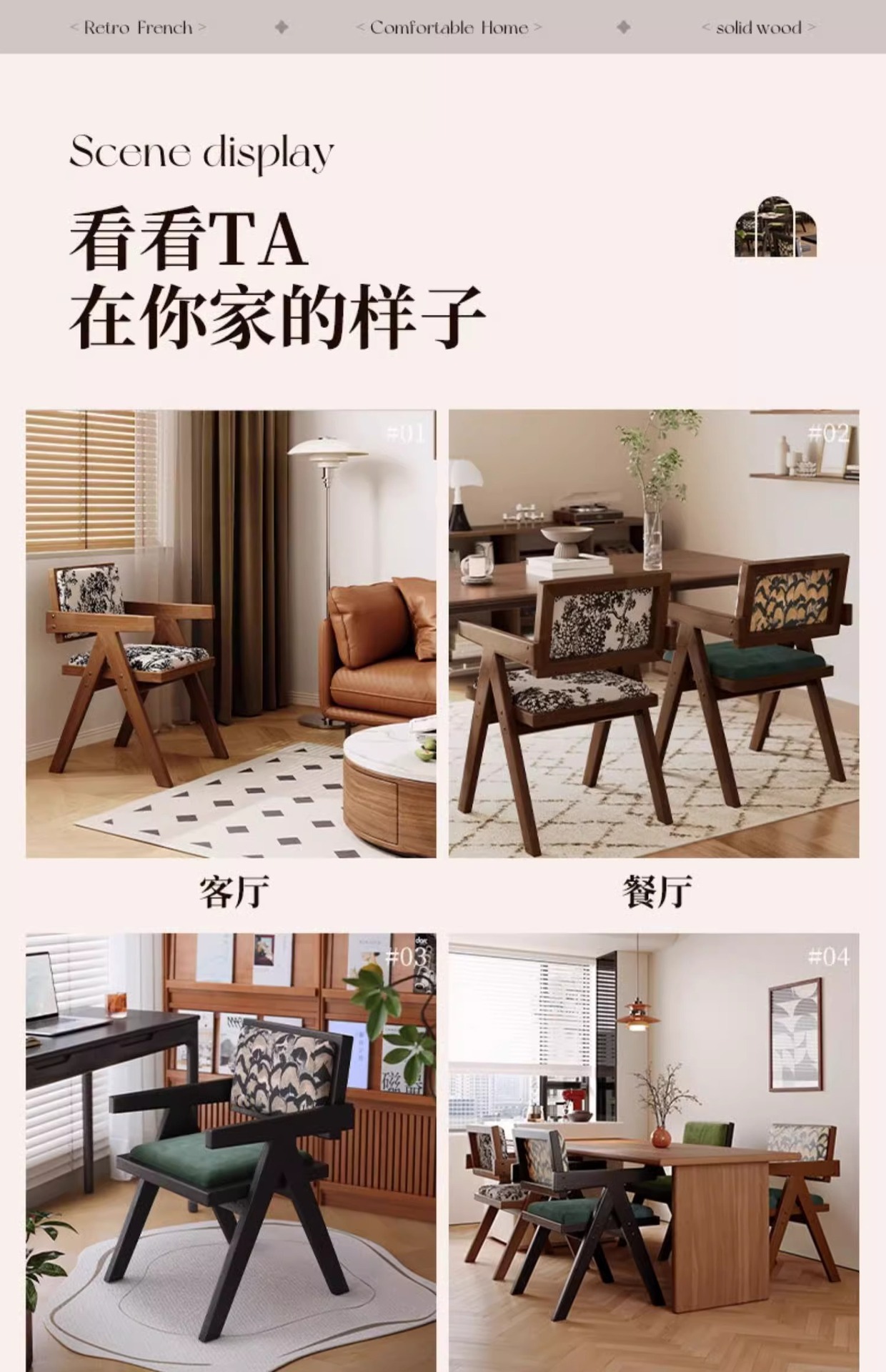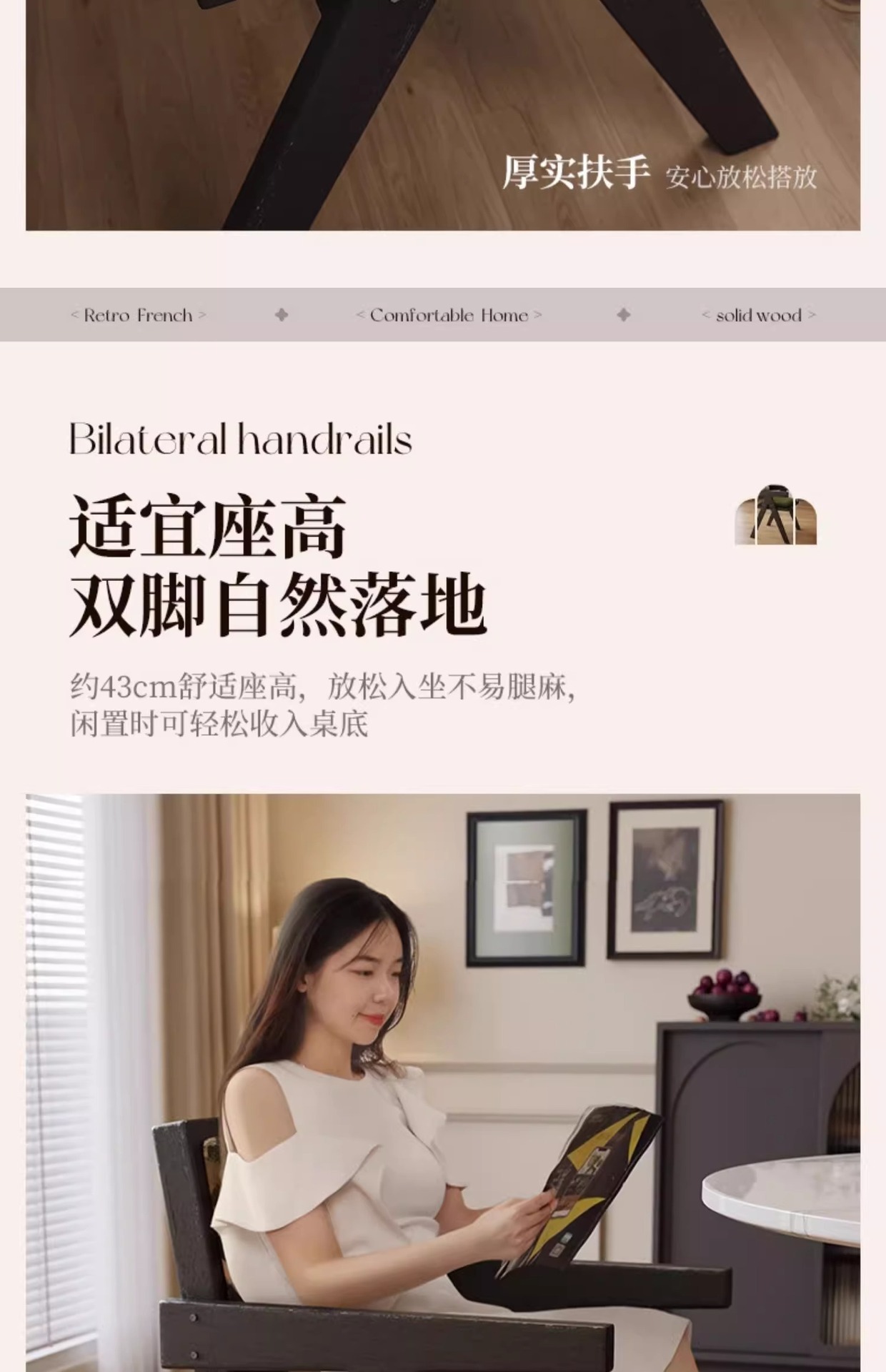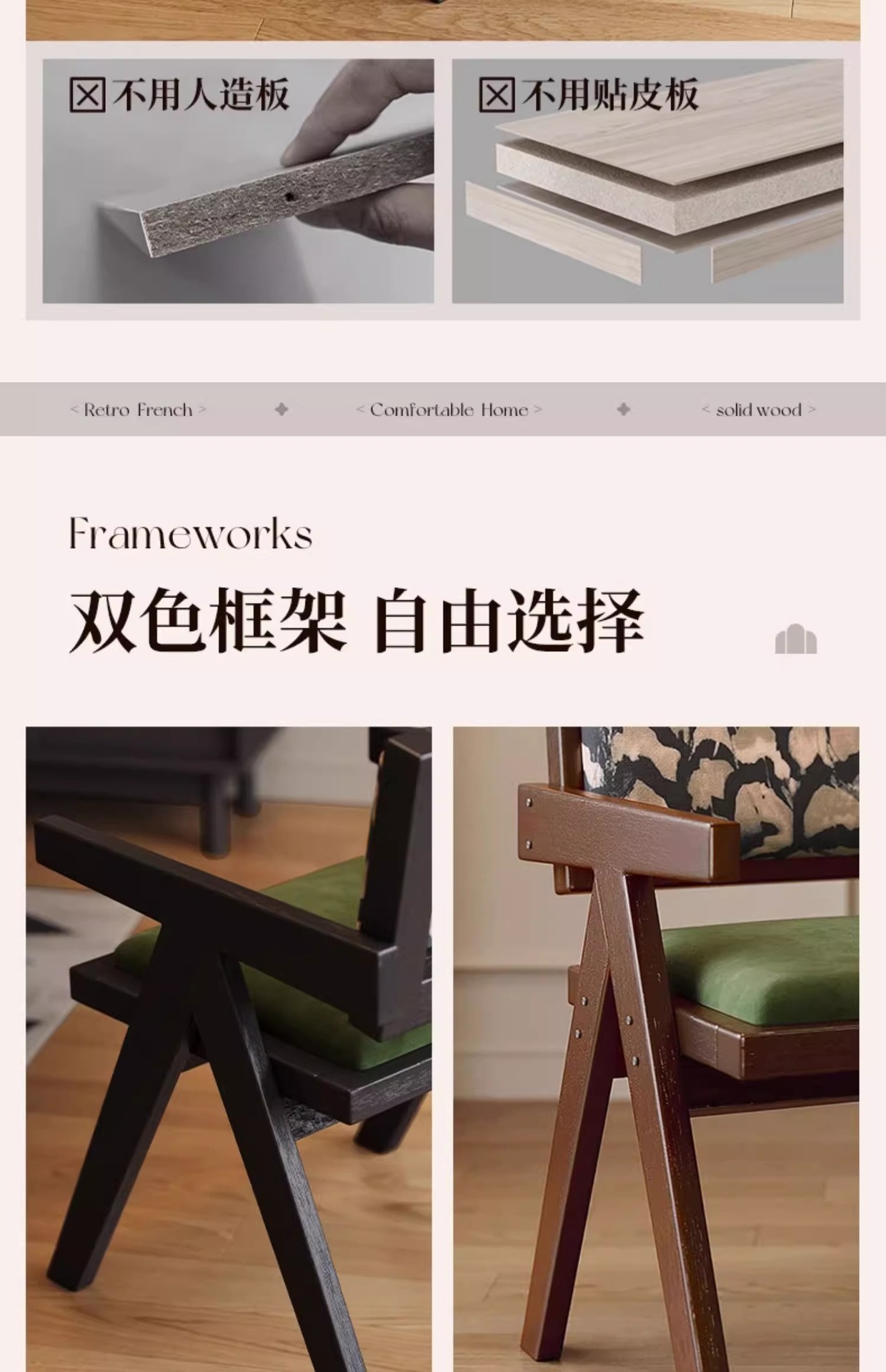 フレンチレトロダイニングチェア 家庭用 中世風無垢材椅子 ダイニングテーブルチェア インターネットで話題のレストラン用籐編み背もたれ椅子