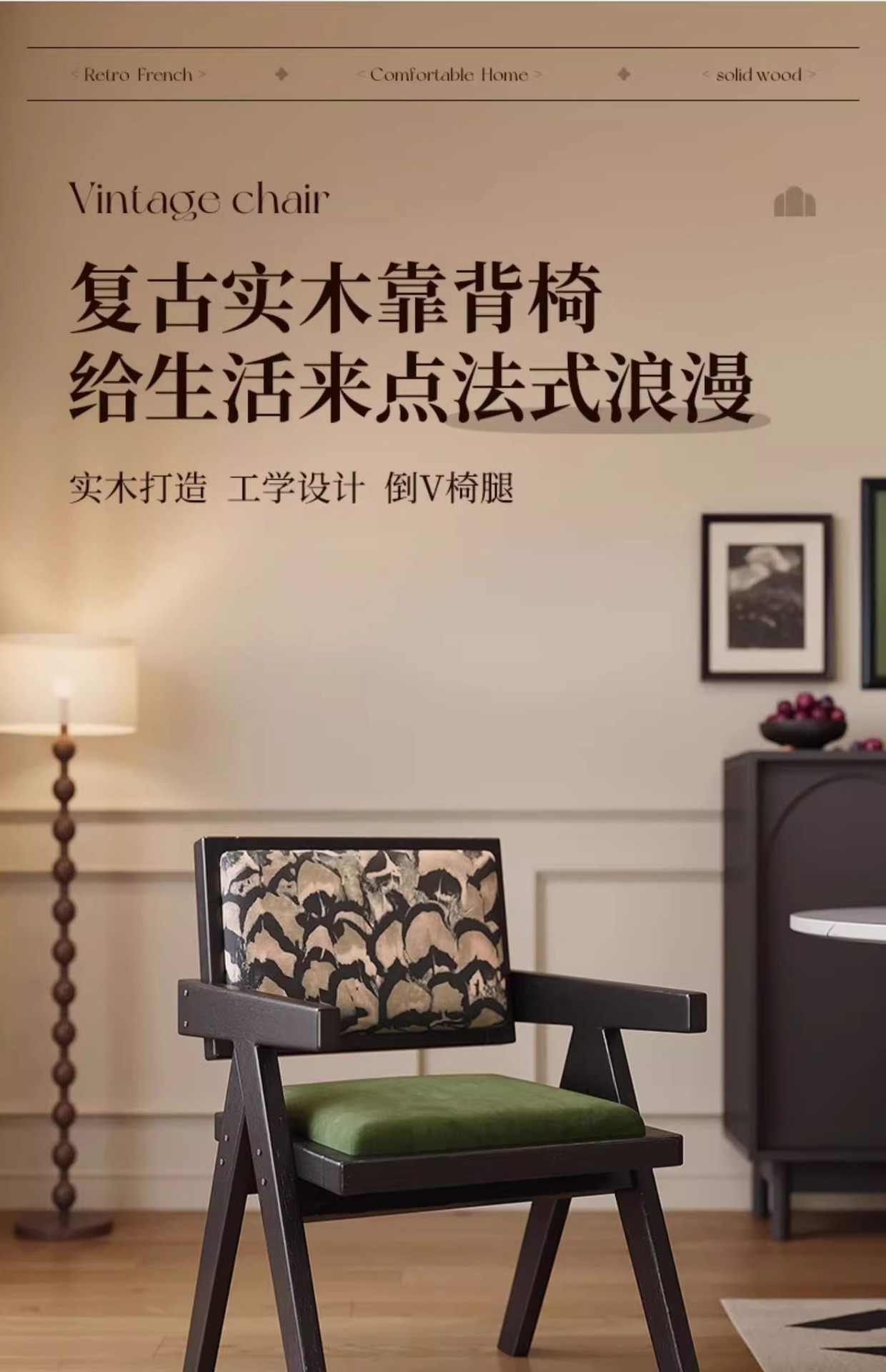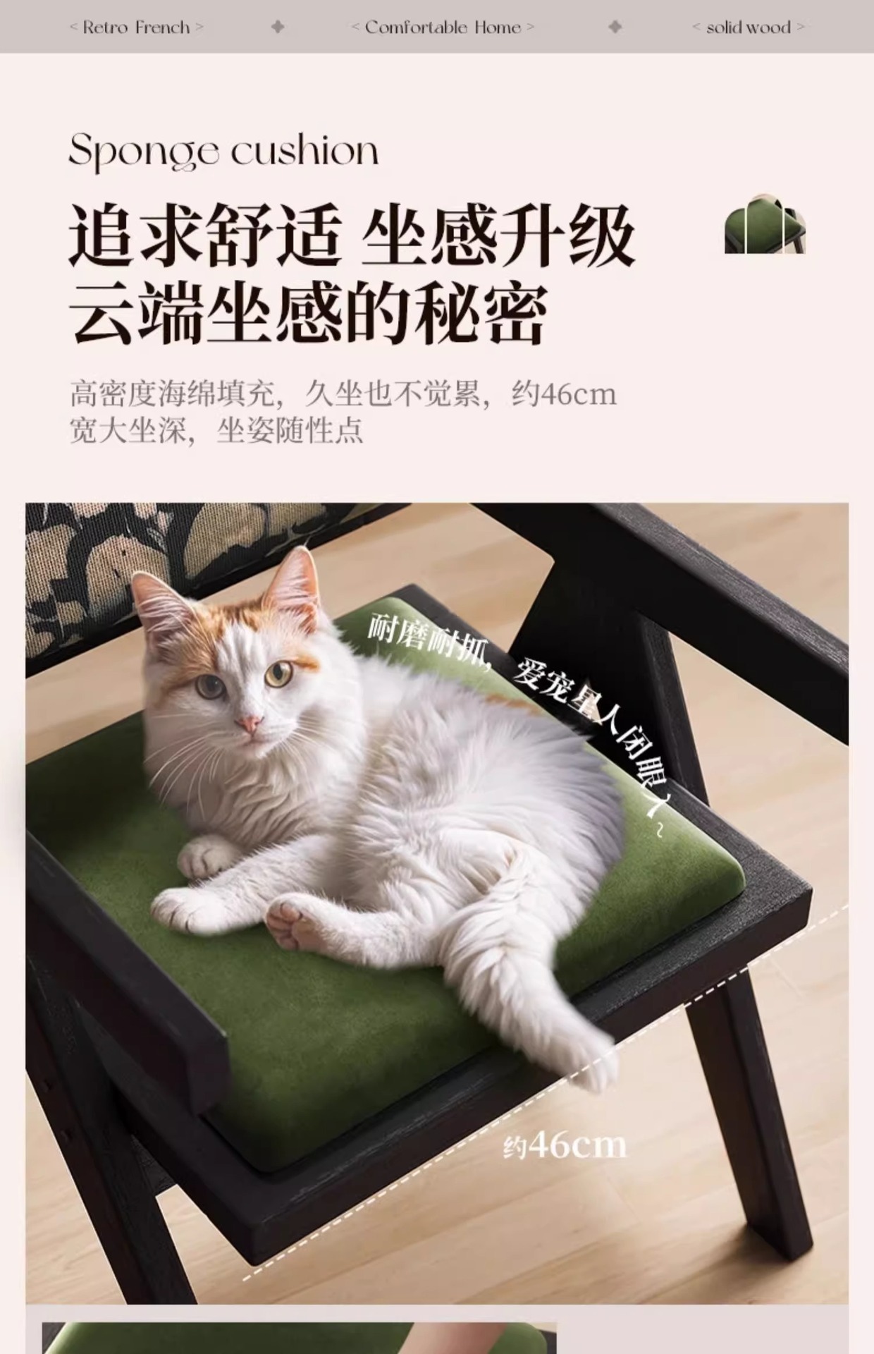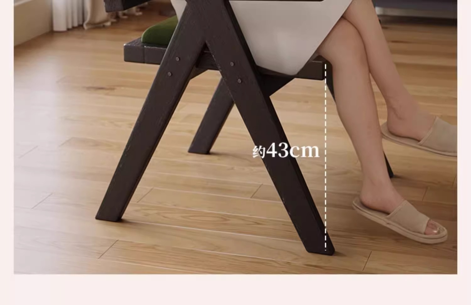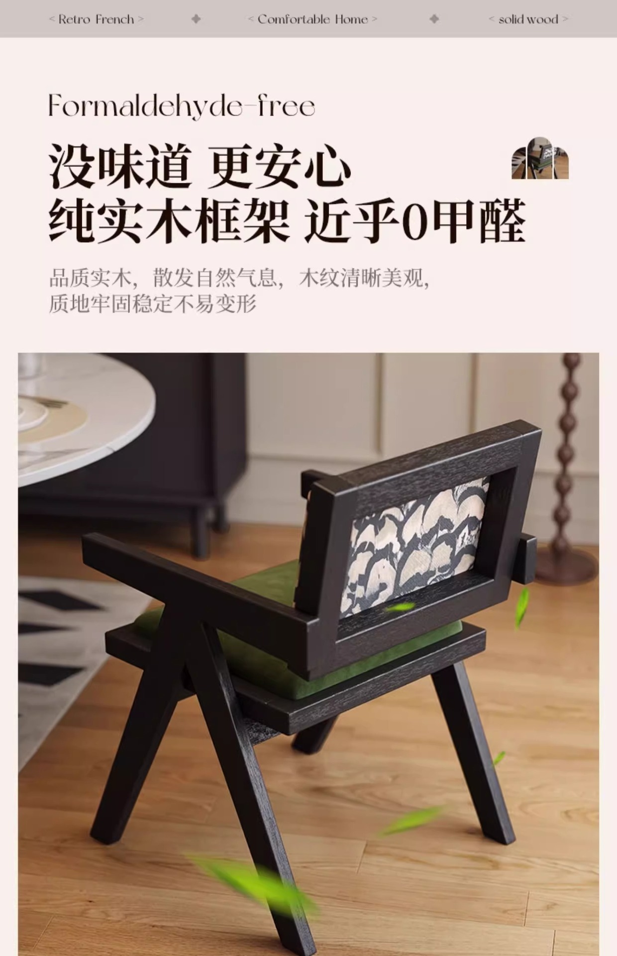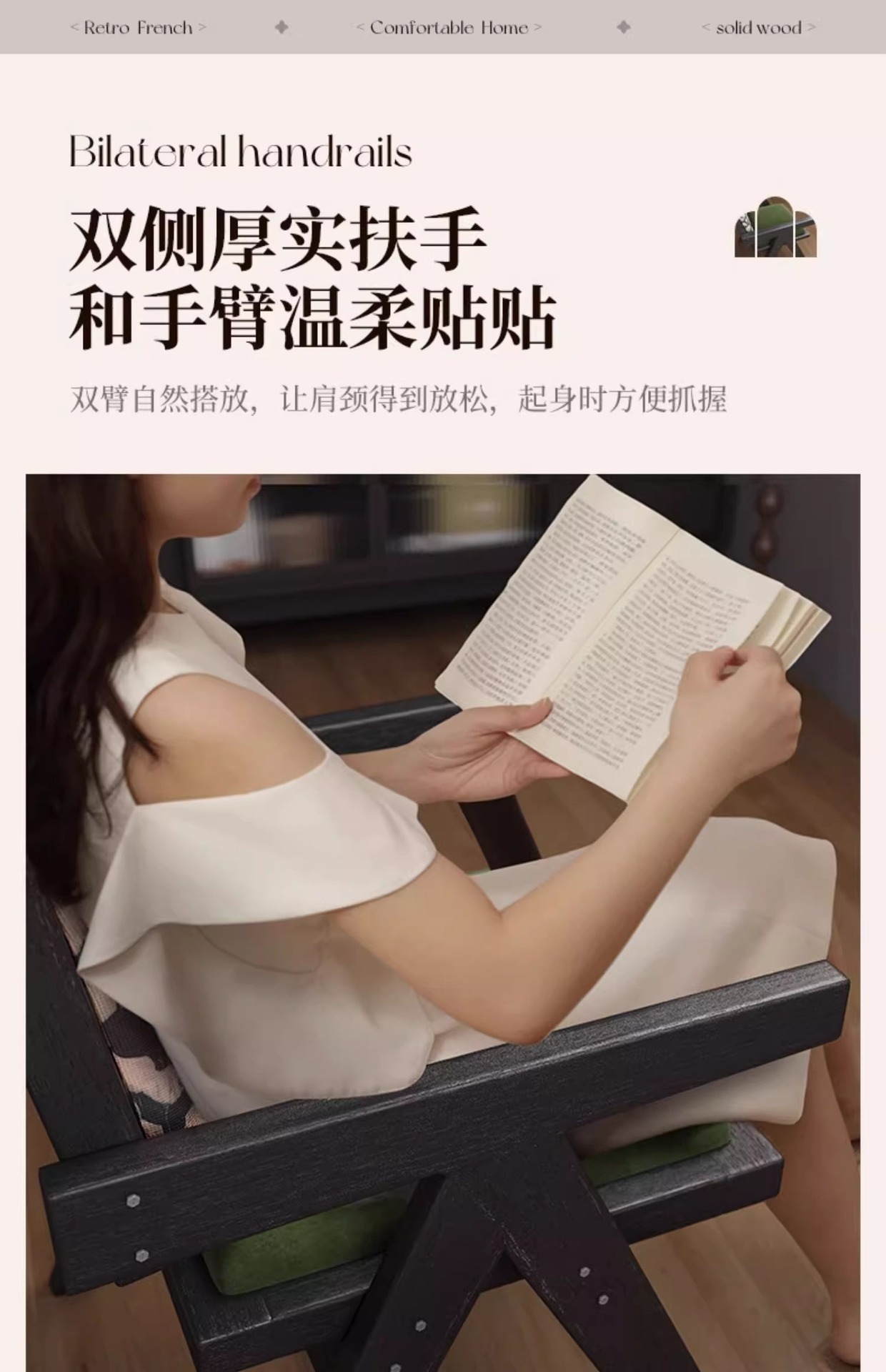 黒無垢材フレーム + レトログリーン + アームレスト + フェザージャカード