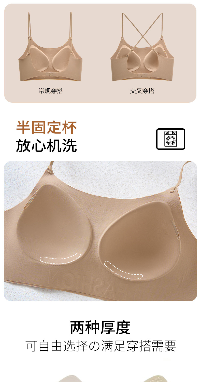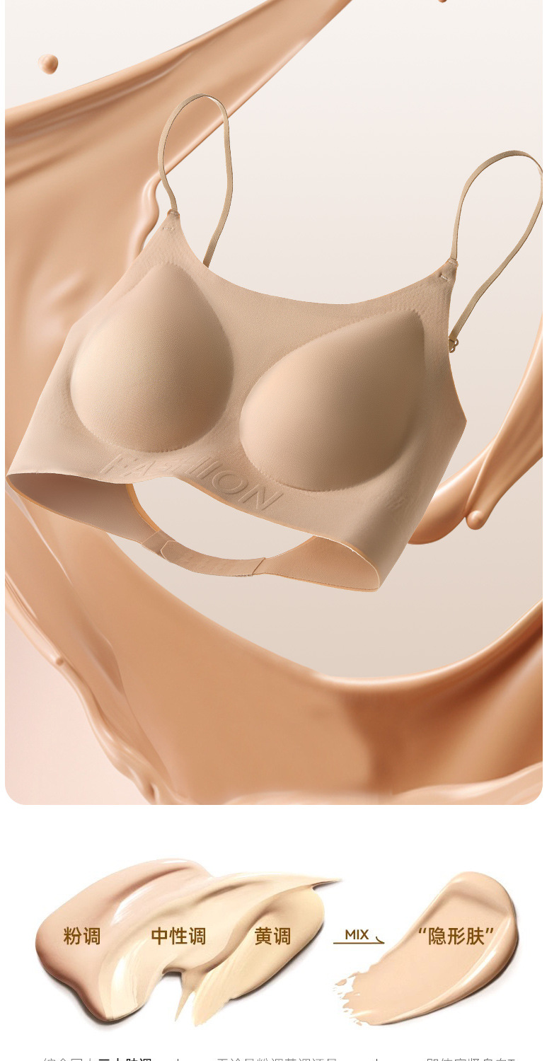 女性用リキッドファンデーションインビジブルブラ、夏用薄型スパゲッティストラップ、シームレス美背中ブラ、ワンピース小胸プッシュアップ快適ブラ