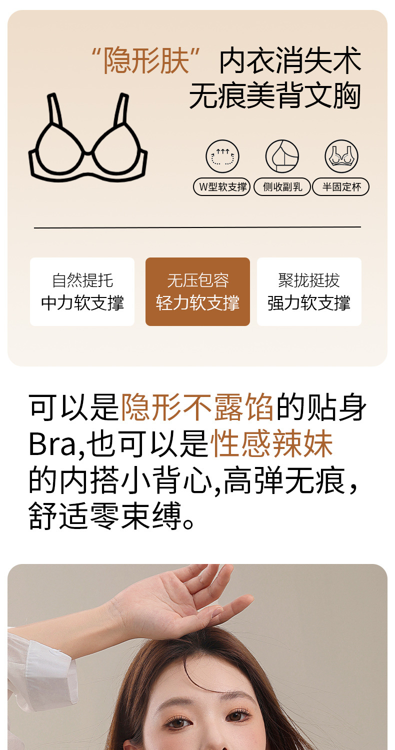集まる,痕跡なし,通気性のある,サポート,目に見えない,シームレス,美しい背中,アンチグレア,快適な,サイドコレクション,副乳を閉じる,大きな胸が小さく見える