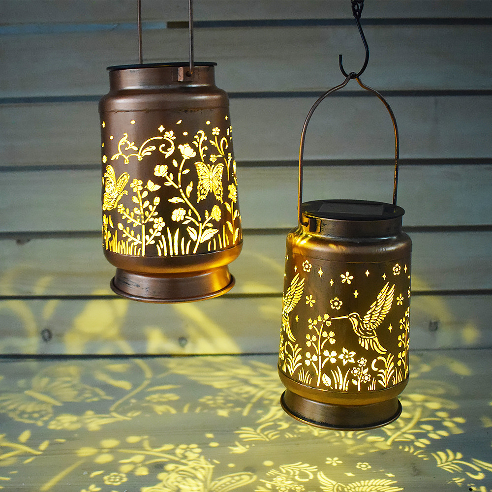 ソーラーライト屋外中空ランタン中庭造園レイアウト鉄馬ランタンガーデンバルコニー雰囲気装飾ライト