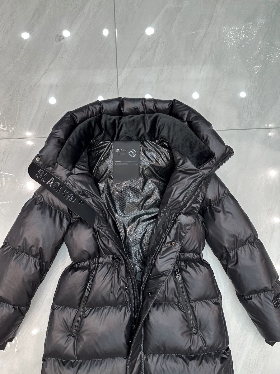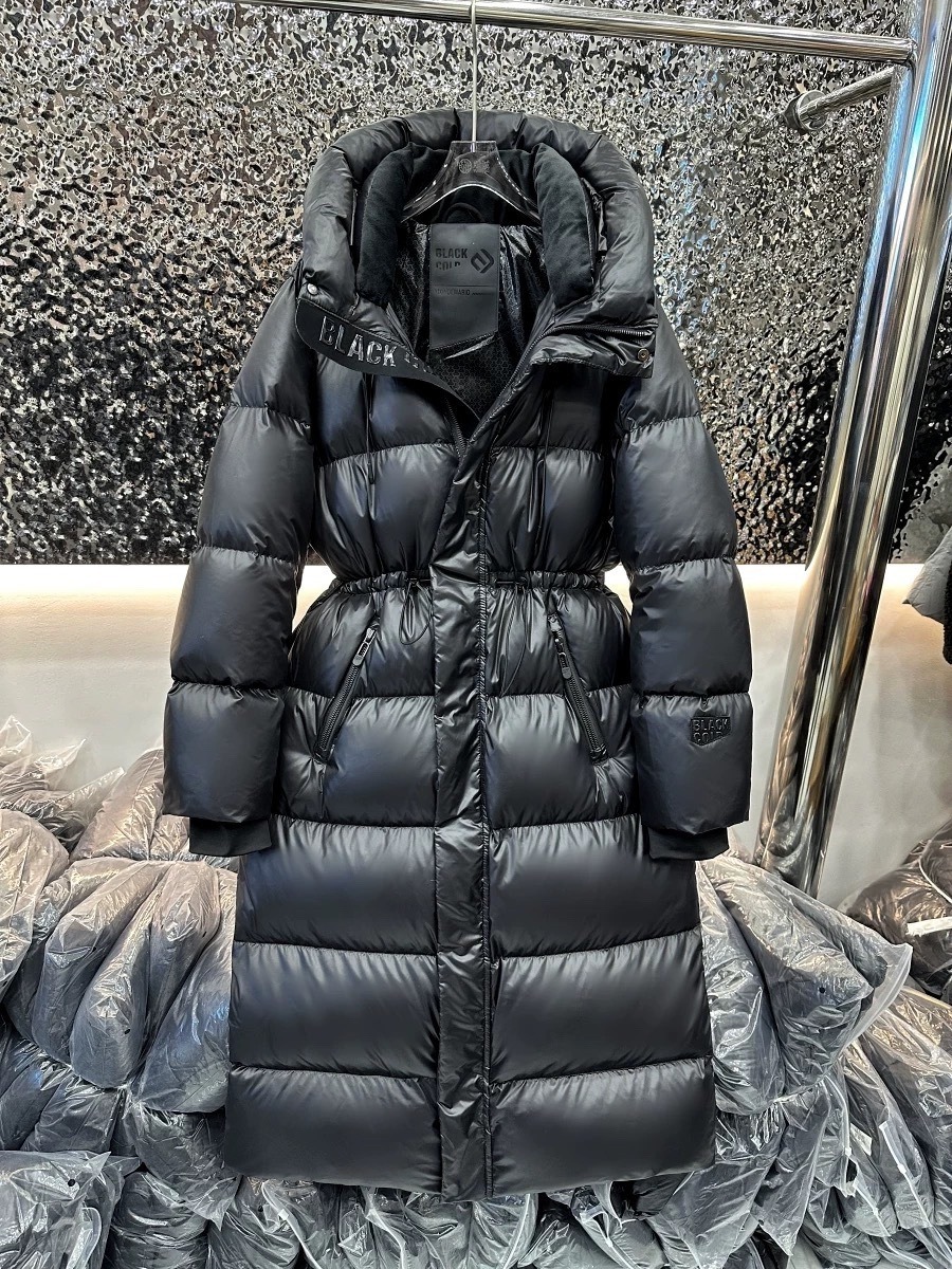 25 新しいアップグレードバージョンブラックゴールドダックダウンクイーンダウンジャケット女性のエクストラロングフード付きウエスト肥厚暖かいジャケット