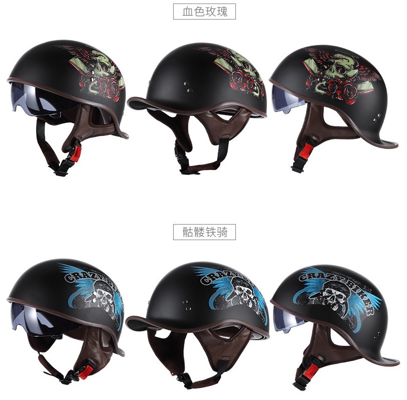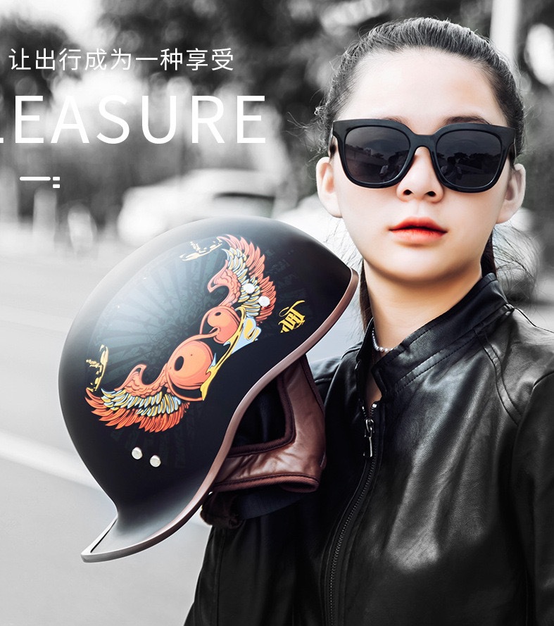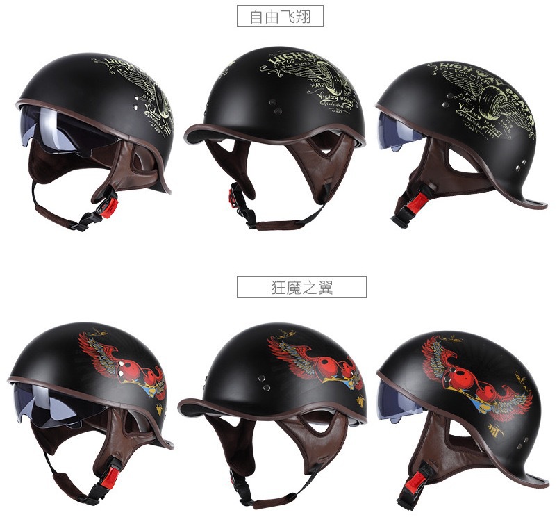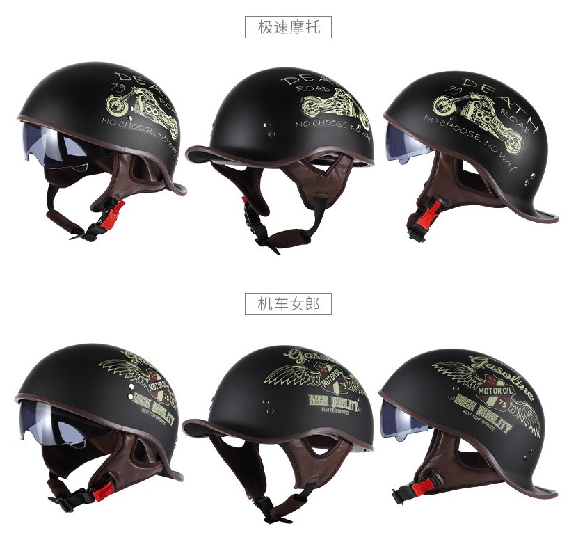 オートバイレトロオートバイハーフヘルメット四季ユニバーサル電動バイクユニセックスサイクリング安全帽子