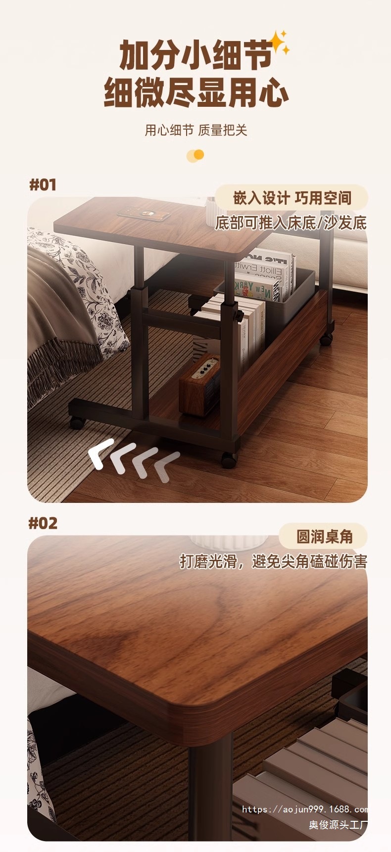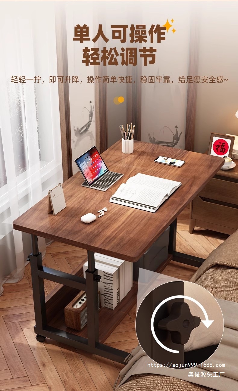 無垢材コアベッドサイドテーブル可動昇降小さなテーブル寝室学生デスクシンプルなオフィスデスクホームコンピュータデスク