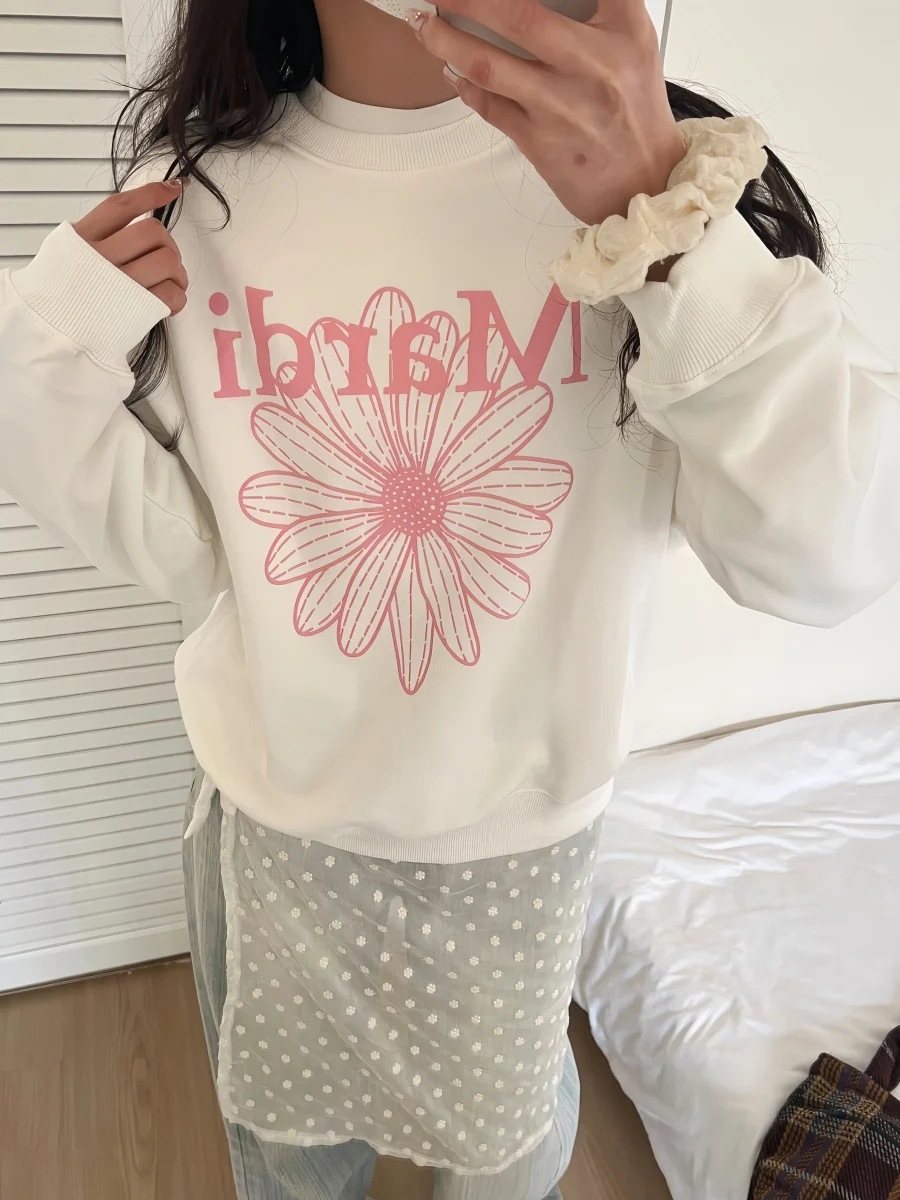 スポット韓国トレンドブランドマルディスウェットシャツレディースデイジー24新作プリントラウンドネックトップスドロップシッピング