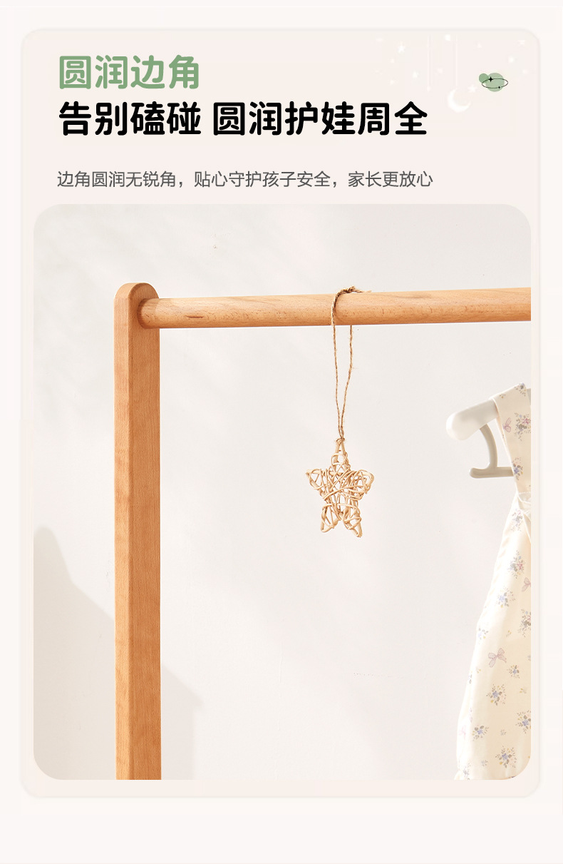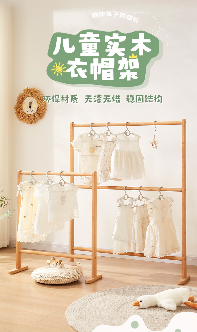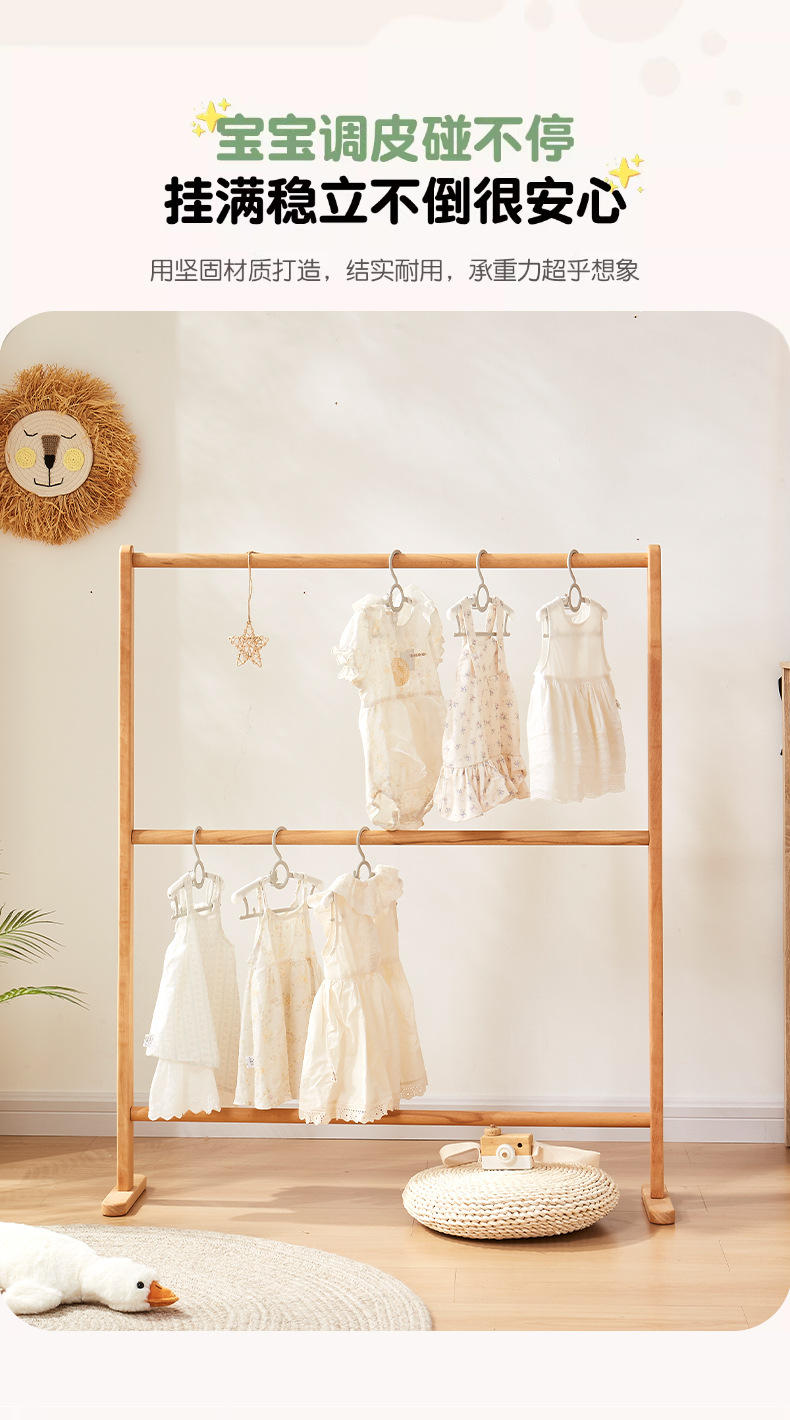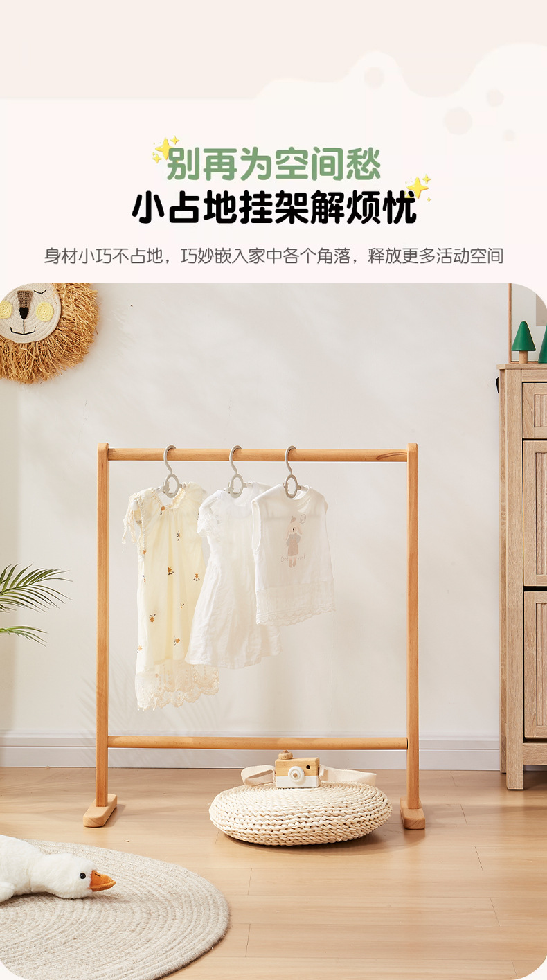 子供用床置き無垢材洋服ラック寝室コートラック家庭用垂直衣類収納ラックシンプルな衣類乾燥ラック