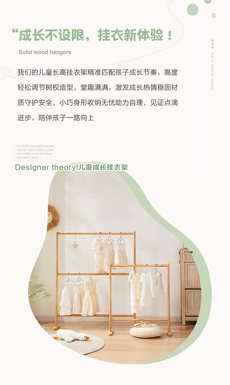 【AAA級ドイツ産ブナ材】ブナ材キッズハンガー 102*24*82cm