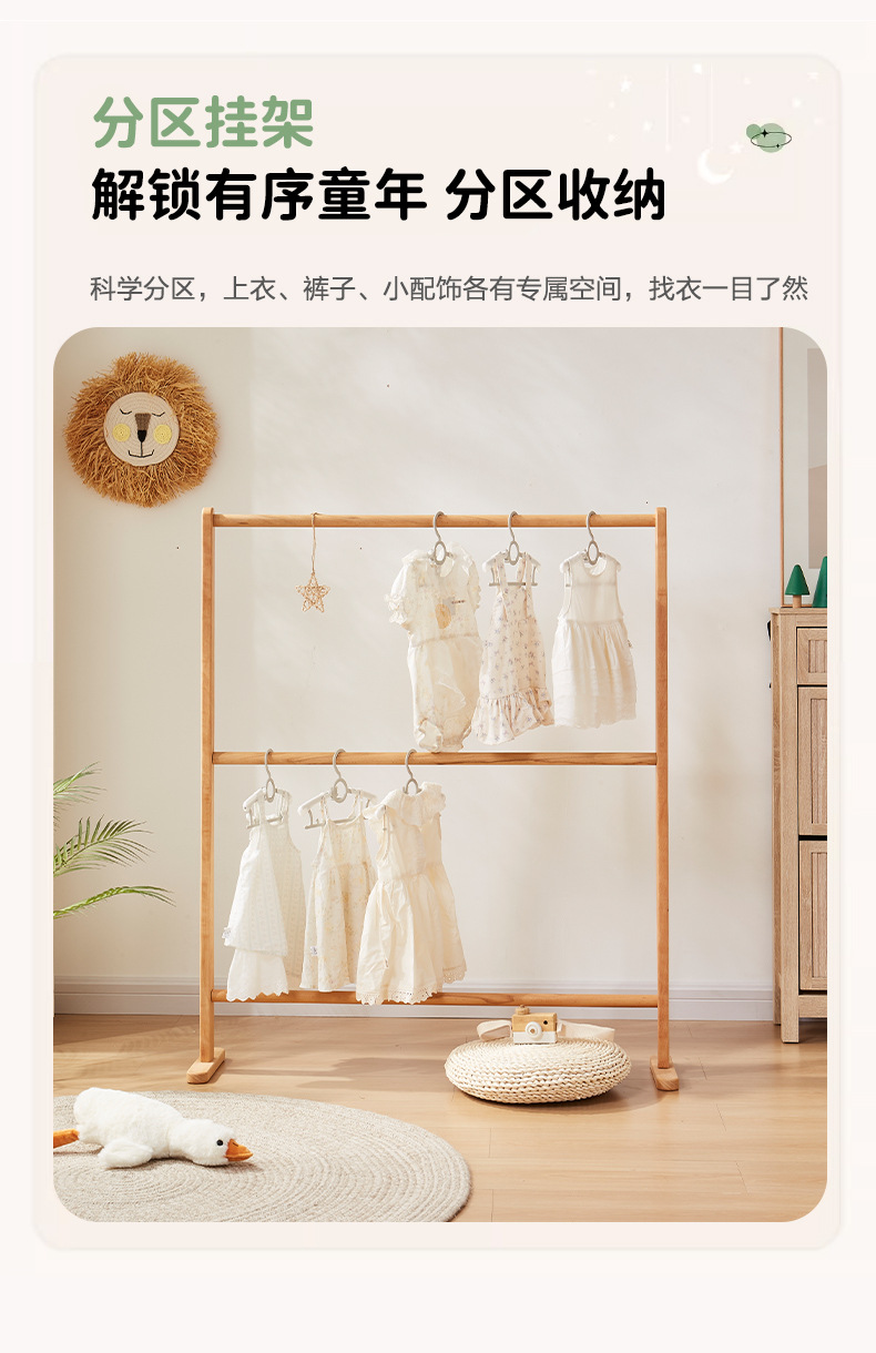 【AAA級ドイツ産ブナ材】ブナ材キッズハンガーラック 56*24*82cm